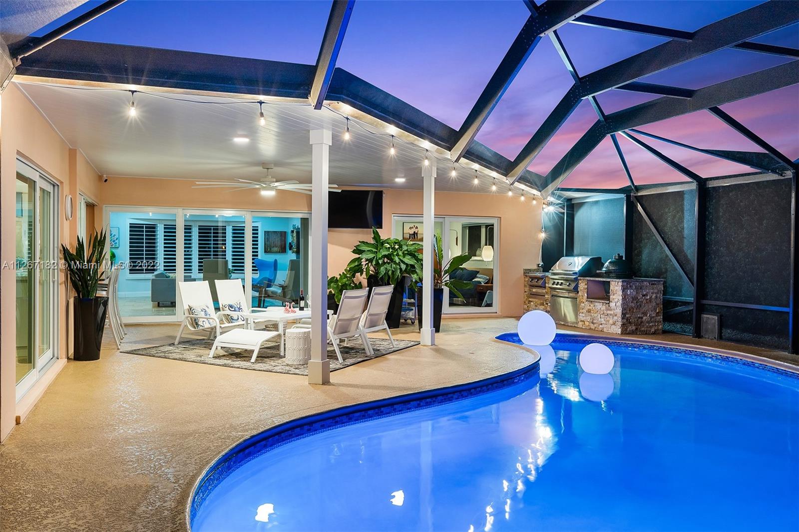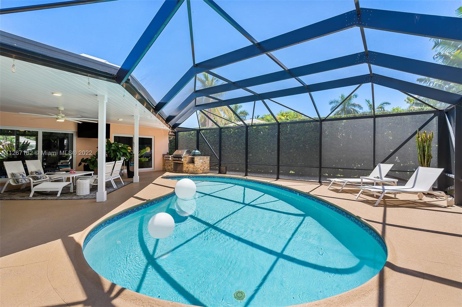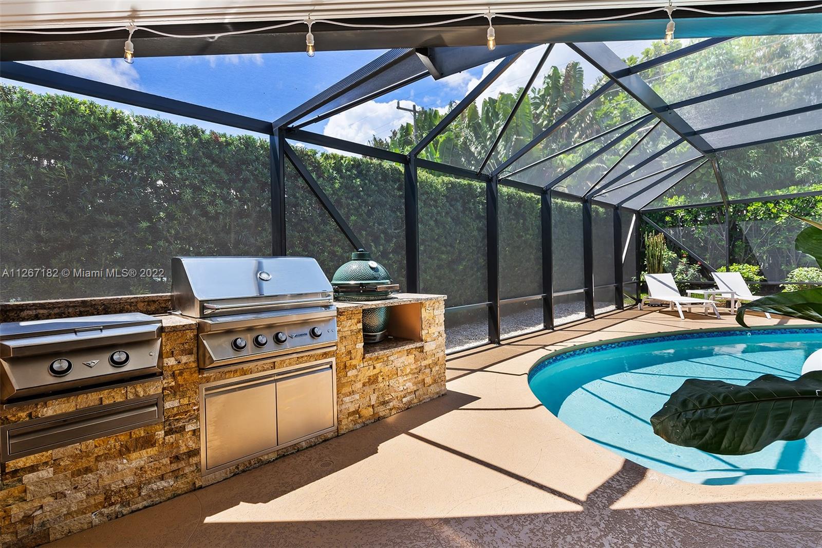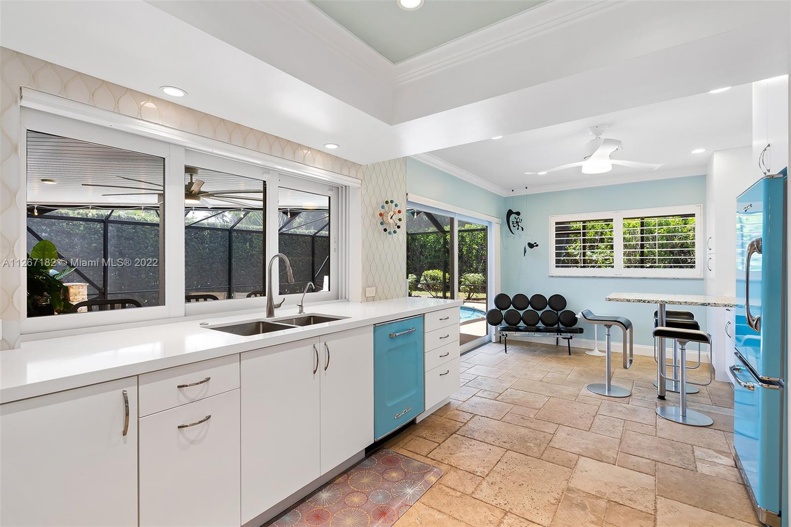 A true mid-century masterpiece in the heart of Camino Gardens. This lovingly restored residence offers a stunning kitchen with quartz counters, Big Chill appliances with induction cooktop and custom cabinetry & lighting. The rear impact sliders open all the way up to the perfect outdoor living space complete with outdoor kitchen, green egg & heated pool. Additional features include full impact windows & doors, newer roof, newer A/C & duct work, custom high hat lighting, full house generator w/ 500 gallon tank, tankless hot water heater, wine refrigerator, additional freezer in garage, newly resurfaced saltwater & heated pool. Camino Gardens is in a prime Boca Raton location close to Mizner Park , The Boca Raton luxury hotel & club, the beach, top restaurants, shopping & highways.