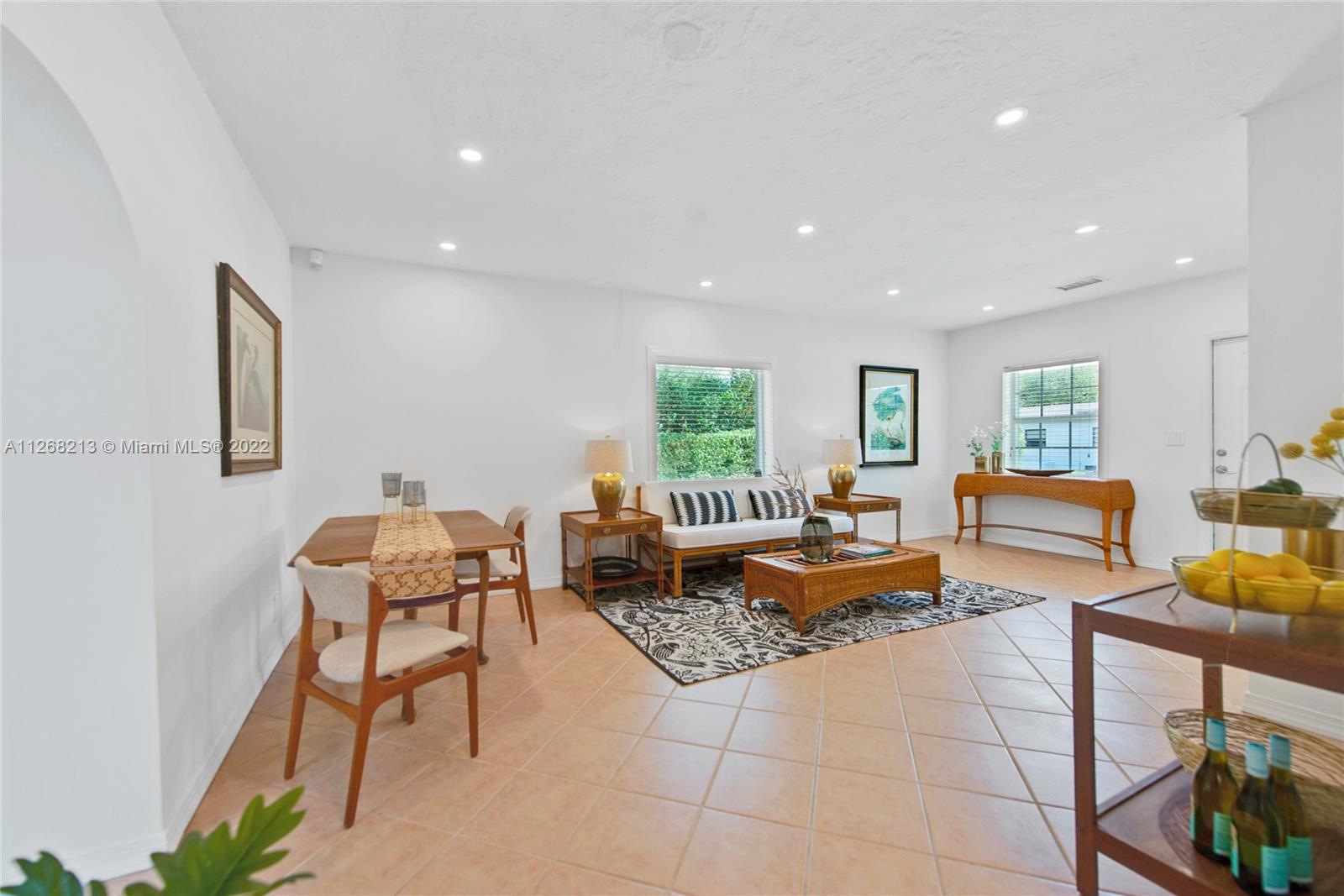 Fabulous South Miami pool home on a 10,575 SF lot. East facing brings magnificent natural light. Open kitchen/living room with flex space that can be used as home offices or a sitting area with a large walk in closet. Renovated kitchen and baths. Sparkling free-form pool has new Diamond Brite finish and large screen enclosure with covered terrace and sunny patio area. From al fresco dining and entertaining to lounging by the pool, enjoy a vacation lifestyle 365 days a year! County tax records list as a 4 BR/ 2 BA home, current floor plan will likely be used as a 3/2 with an inviting family room connected via French doors to pool area. Custom closet cabinetry. Brand new, high efficiency R30 attic insulation. New sprinklers. Mature fruit and flowering trees. Plenty of space for expansion.