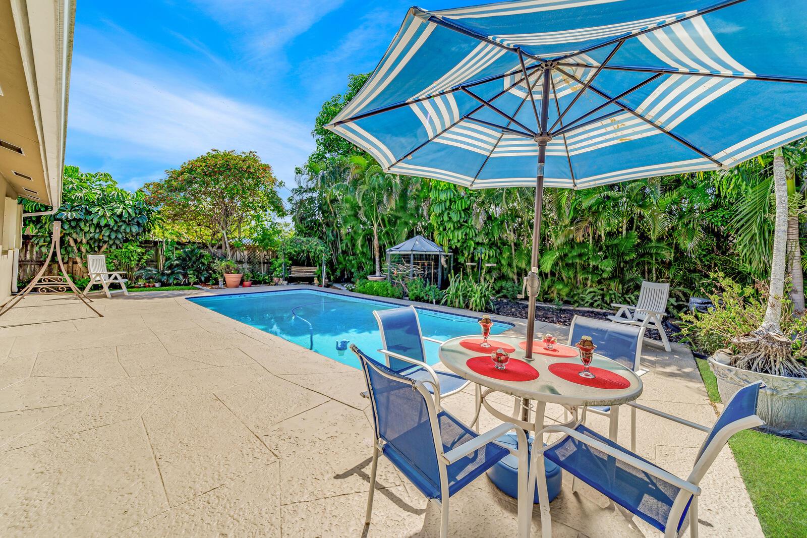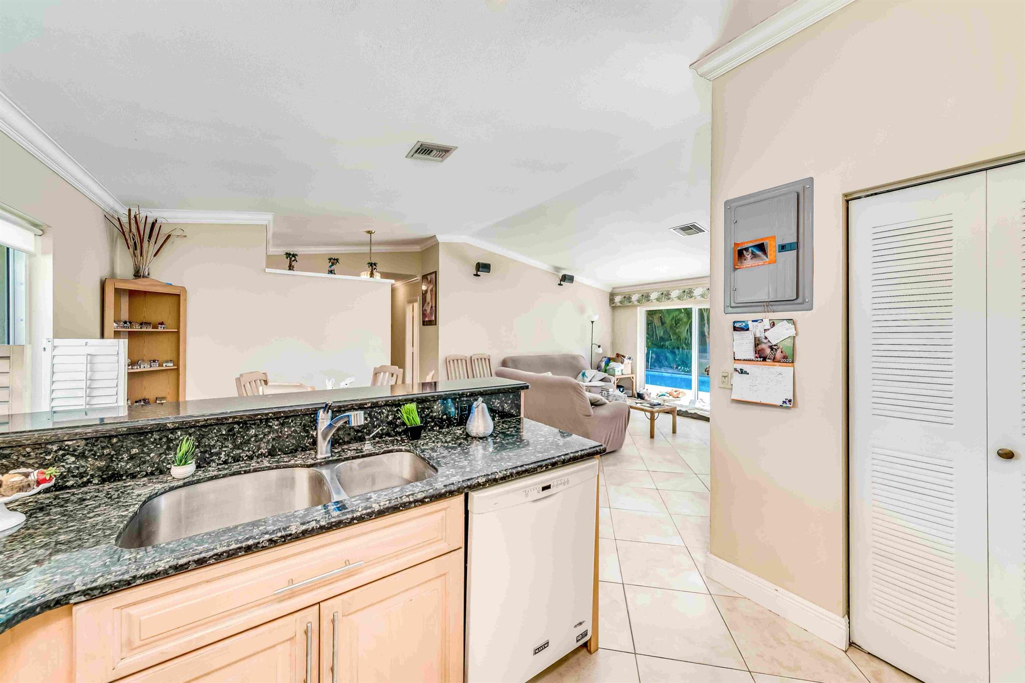 WOW!!! True 3 bedroom, 2 bath, 1 car garage, POOL Home with the most amazing landscaping, situated on a double cul-de-sac so no drive through traffic. Circular driveway and straight one too! Impact glass windows and doors throughout plus accordion shutters for even more protection!! Home features an open & spacious floor plan w/huge vaulted/cathedral ceiling. Custom gourmet kitchen w/granite counter tops and backsplash, white appliances, sunny breakfast area w/a large window, lots of counter space/many cabinets, plus large pantry. Tile throughout this home. Crown molding plus popcorn ceiling was removed and knockdown was added. Both bathrooms have been updated including a cabana bathroom that leads to the pool.
