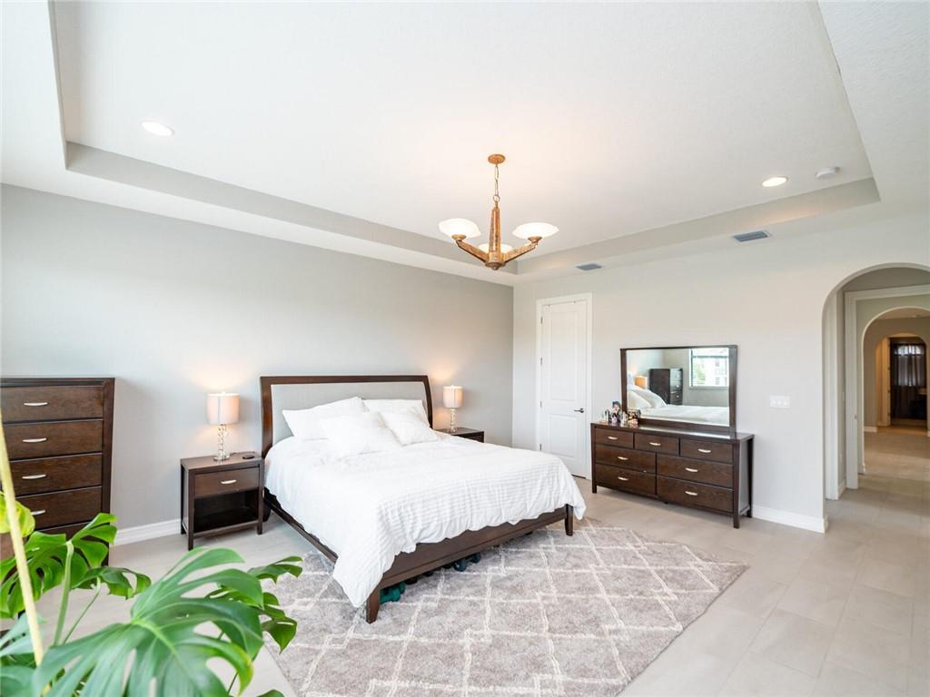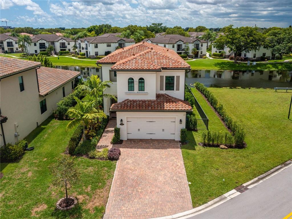 4 bdrm 3 bth + loft (can be converted to 5th bdrm) w/ 1 brm/1bth on the 1st flr.. This beauty sits on a beautiful cul-de-sac lake lot w/ an open green space on one side. Sought after Raintree development, a gated community. This home is a lovely, bright, open, contemporary & is in excellent condition boasting w/ hurricane impact windows & doors, tile floors, beautiful kitchen w/ wood cabinets, Quartz Counters, SS GE Profile appls., eat at island & walk-in pantry. Other features include laund. rm w/ washer & dryer, covered patio & private fenced yard. The Primary suite boasts his/hers walk-in closet, large windows, balcony & beautiful bath w/ dual vanities, Quartz counters, soaking tub & walk-in shower w/ frame-less glass. Driveway fits 4 cars. Community clubhouse, pool, playground & gym.