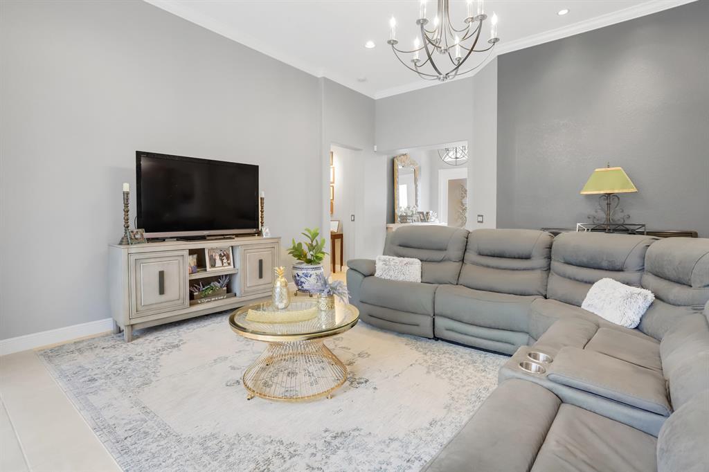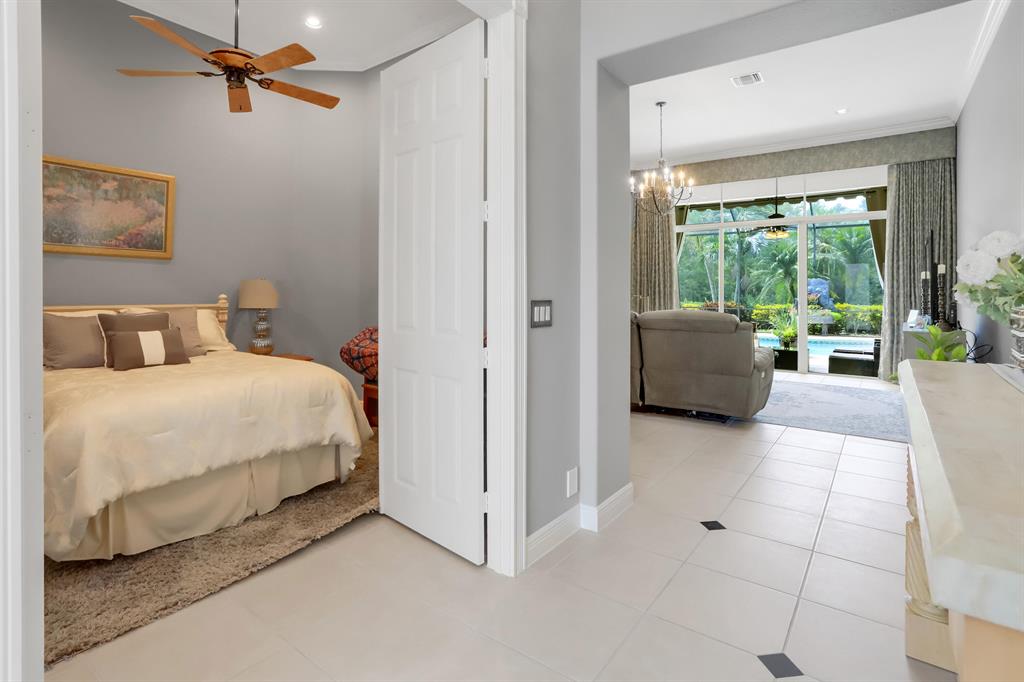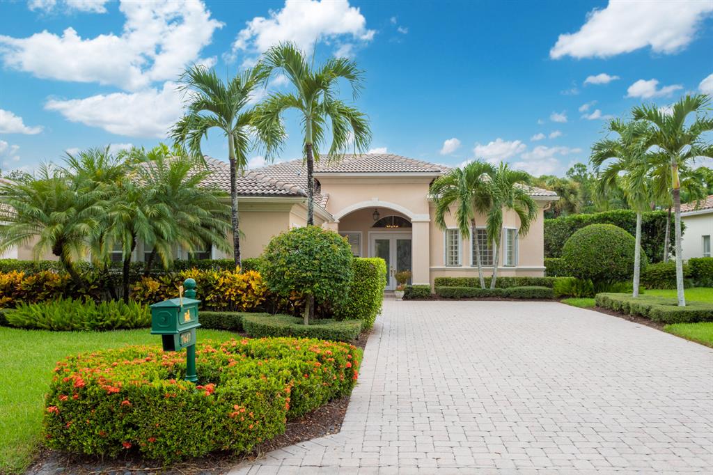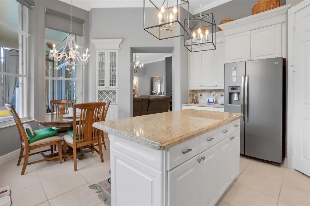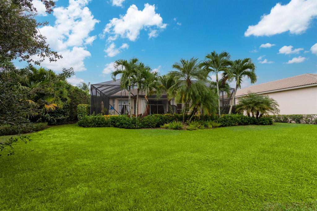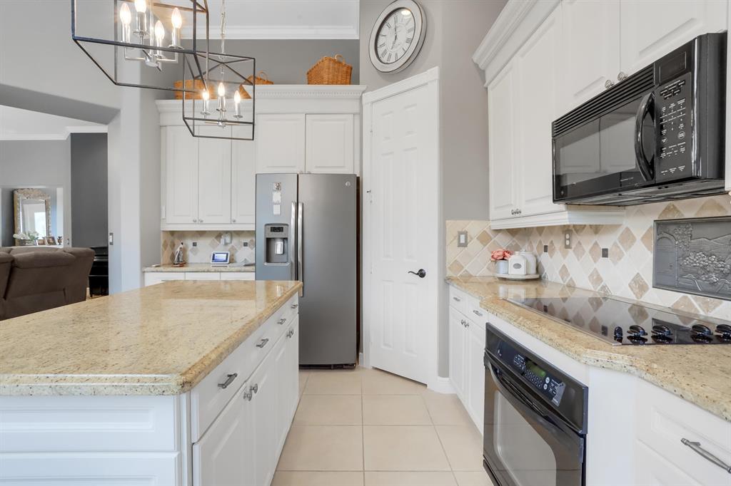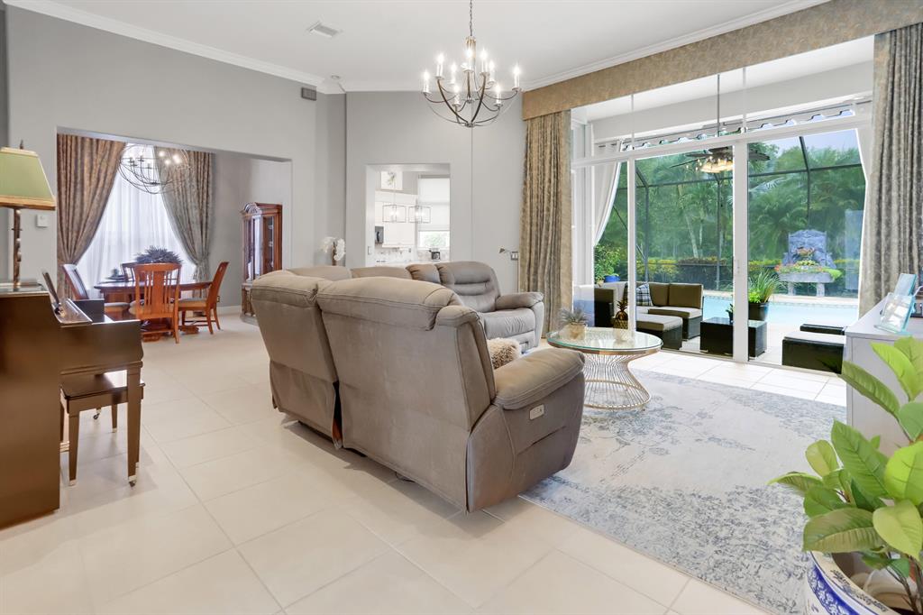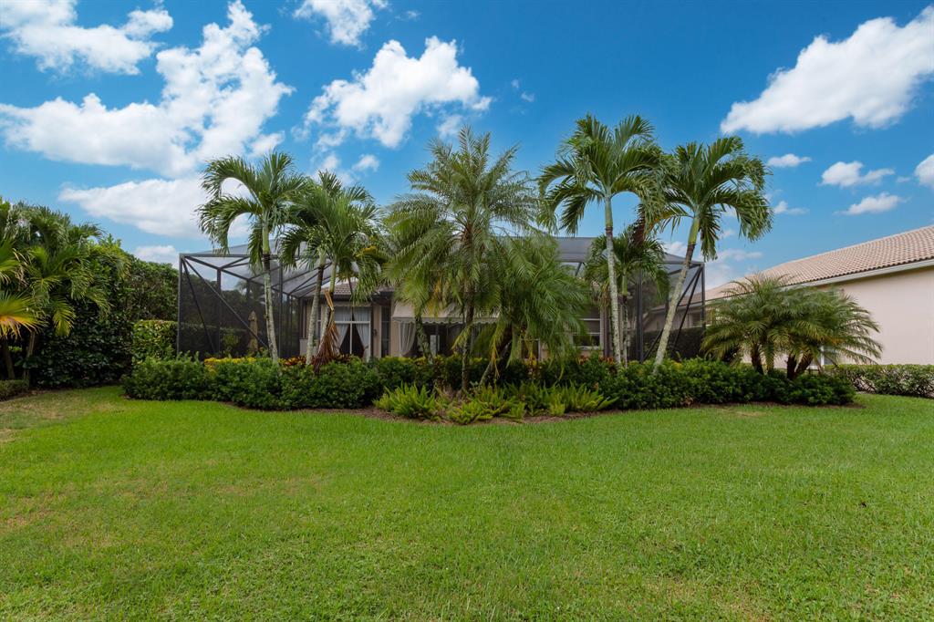Country Club living , WITHOUT the mandatory membership fees. Meticulously maintained 2,215 SF 3 bedroom 2.5 bath home with 2.5 car garage . Room for 2 cars plus a golf cart! Many upgrades in this Pool home located on a 16,117 sf lot with amazing custom lit landscaping, Salt system pool is phone app enabled. Enjoy the shade from 2 powered retractable awnings as you sit by the pool and hot tub. Interior features many upgrades. Master suite plus a 2nd suite! Granite counter tops and Island, custom cabinets. Crown molding in all living & bedrooms, upgraded flooring, powered window blinds in kitchen area. Upgraded lighting, master bath and more. NO pet restrictions, NO approval process. Yes , all drapes stay! Lawn and landscape trimming covered by HOA. Complete accordion hurricane protection.