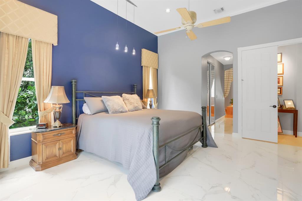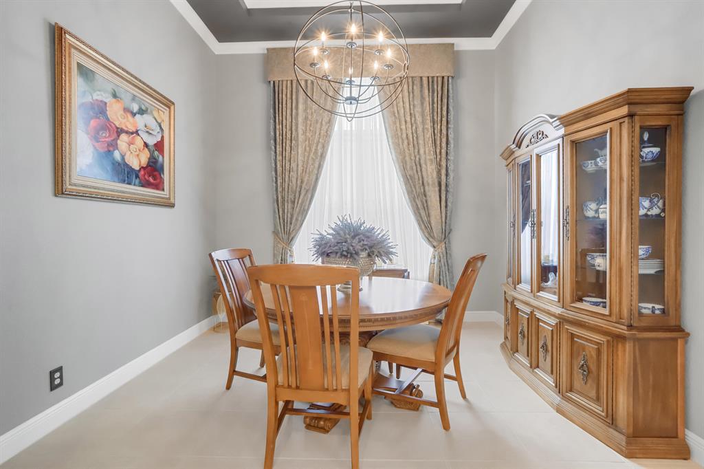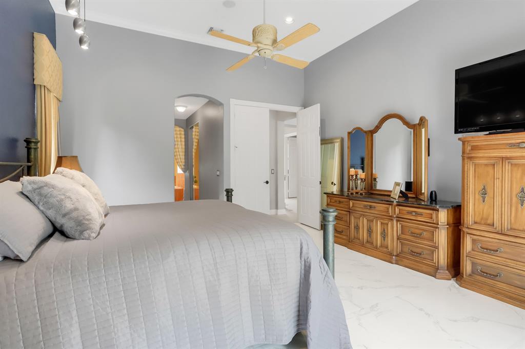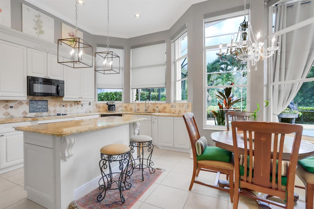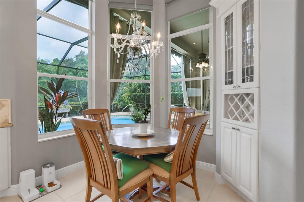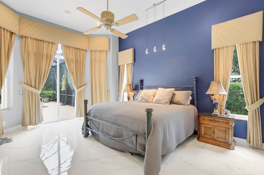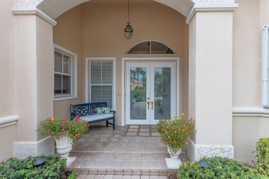 Country Club living , WITHOUT the mandatory membership fees. Meticulously maintained 2,215 SF 3 bedroom 2.5 bath home with 2.5 car garage . Room for 2 cars plus a golf cart! Many upgrades in this Pool home located on a 16,117 sf lot with amazing custom lit landscaping, Salt system pool is phone app enabled. Enjoy the shade from 2 powered retractable awnings as you sit by the pool and hot tub. Interior features many upgrades. Master suite plus a 2nd suite! Granite counter tops and Island, custom cabinets. Crown molding in all living & bedrooms, upgraded flooring, powered window blinds in kitchen area. Upgraded lighting, master bath and more. NO pet restrictions, NO approval process. Yes , all drapes stay! Lawn and landscape trimming covered by HOA. Complete accordion hurricane protection.