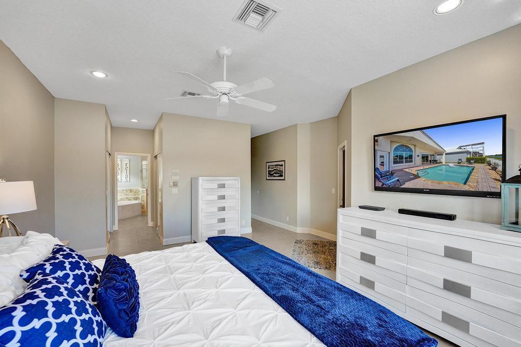Lovingly maintained 3/2.5 pool home in desirable Costa Del Sol in Boca Pointe. Great split floorplan offers privacy and space. Over 2000 s.f. under air, large entrance foyer w/volume ceilings welcome you home. Spacious master suite w/large closets & master bath. Kitchen boasts S/S Samsung appliances, granite counters & beautiful cabinetry. Square D electric panel, 2009 AC, 2-year old garage door, accordion hurricane shutters, newer washer/dryer in indoor laundry. Remodeled guest bath & half bath. Walk out to your private pool overlooking the wide canal. Reasonable maintenance fee includes lawn care, cable, pressure cleaning 1x/yr, exterior painting every 5 yrs, guarded gate, and community pool. Close to incredible dining, beaches, A-rated schools and the best Boca Raton has to offer!