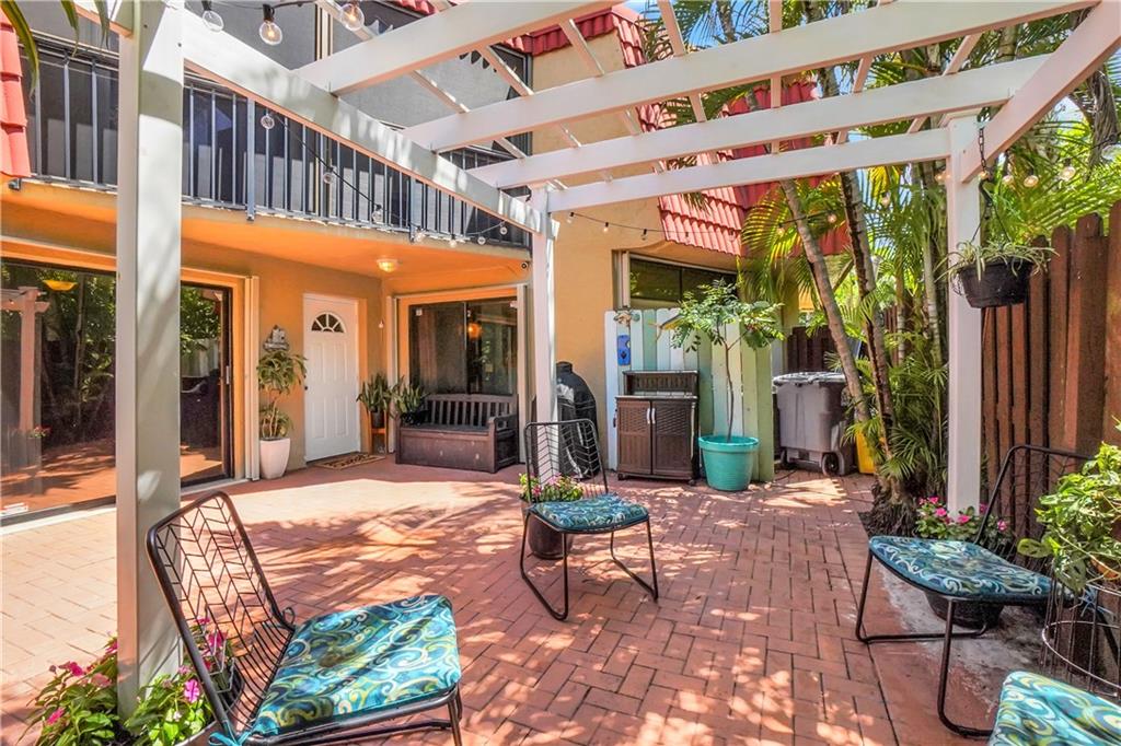 Don't miss your opportunity to live in your very own Slice Of Paradise! Enjoy your morning coffee on your screened in balcony overlooking a beautiful fenced courtyard complete with pergola!! (Perfect for entertaining). Secluded by lush landscaping, and tucked into the best location in Boca Rio, this spacious open floor plan 2BR/2.5BA has both bathrooms En Suite, with dual sink in master, and walk in closets in both bedrooms. Tasteful upgrades throughout the home include stainless steel appliances, a large pantry with custom shelving, newer AC, accordion Shutters and more. Central to A-rated schools, I-95, Turnpike, Town Center Mall, and many other shops and restaurants. Boca Rio is terrific community with pool, tennis, handball courts, walking trails, and clubhouse. Welcome Home!