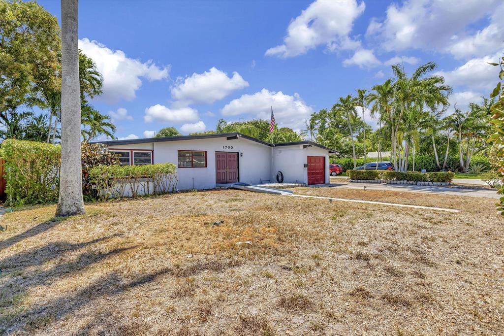 ** $25,000 PRICE REDUCTION ** NEWER ROOF! NEWER A/C! This cozy 2 bedroom, 1 bathroom family home, sits on a beautiful, large corner lot in the popular and highly prized neighborhood of Poinsettia Heights in Ft Lauderdale. The dine-in kitchen opens to a large living room. Adjacent to the living room, through the French doors, is the spacious Florida room, perfect for a den, office or sitting room. There is an attached 1-car garage as well. The large backyard is fenced and has plenty of room for a pool. Lush and mature landscaping with fruit trees, surround the property. Situated in a quiet, established neighborhood, this property offers a wonderful opportunity as the perfect canvas to create your dream home. Bring your hammer, roll up your sleeves and get working on your sweat-equ