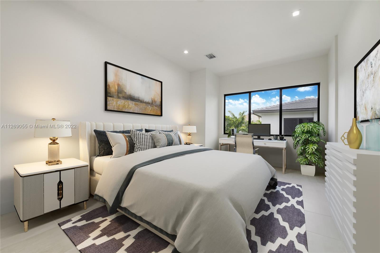Stunning Luxurious move in ready in Downtown Doral. New construction. Featuring 4bd/4.5ba with upgrades such as porcelain tile flooring in all main living areas and bedrooms, premium wood flooring on staircases, LED recessed lighting throughout. Wood interior doors, quartz countertops, smart home technology, energy efficient natural gas tankless hot water heater, volume ceilings, kitchen has vessel sink, Jennair refrigerator. Stacked oven, gas cooktop, Premium dishwasher. Bathrooms equipped with Kholer freestanding bathtub and faucets. premium marble vanity tops. Master bedroom suite creates an unwind atmosphere for relaxation. Laundry room, walk in closets. Community features resort style amenities. A-schools, shopping, restaurants and international airport just a few minutes away.