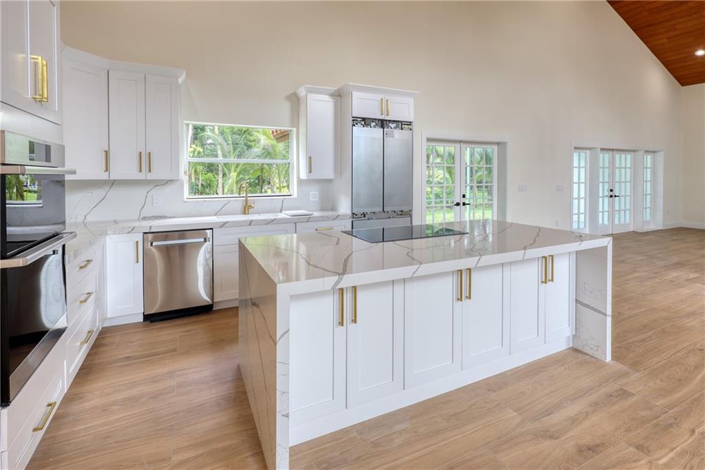 Beautifully remodeled Home In Plantation Acres surrounded by plush tropical landscaping on a MASSIVE corner lot. This is custom 4/3, spacious Open floor plan with cathedral style ceilings. New Quartz counter tops and island with Dacor Luxury Kitchen Appliances! Stylish kitchen pantry. All new Modern style Bathrooms throughout the house. Fashionable walk-in closets for each bedroom. Air-conditioned laundry room! Double lot with enough space to build a guest house and a pool. Plantation Acres is a highly sought after, family oriented neighborhood. The Prestigious American Heritage School K-12 is right down the street.