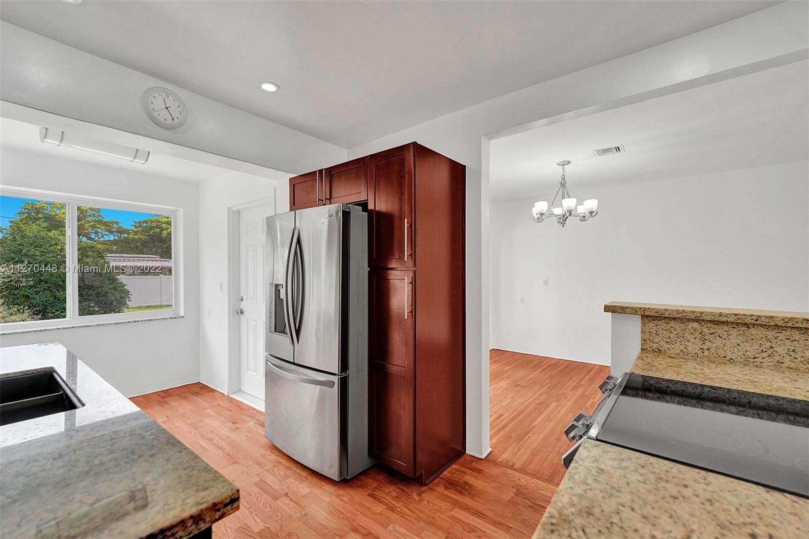 Charming move in ready home in the heart of Griffing Biscayne Park. Spacious 3 bedroom, 2 bath has a nice flow with with lots of natural light. The third bedroom has it’s own private entrance with a good decent kitchen. Great for income producing, can be used for in-laws, nanny or private office. Featuring well preserved wood floors, new impact windows & doors, new garage door, new fence, and 2021 air conditioner. Great kitchen with lots of storage space, stainless steel appliances and a lovely view to the garden. Backyard has lots of potential with room for a pool and to be made into the ultimate entertaining space.