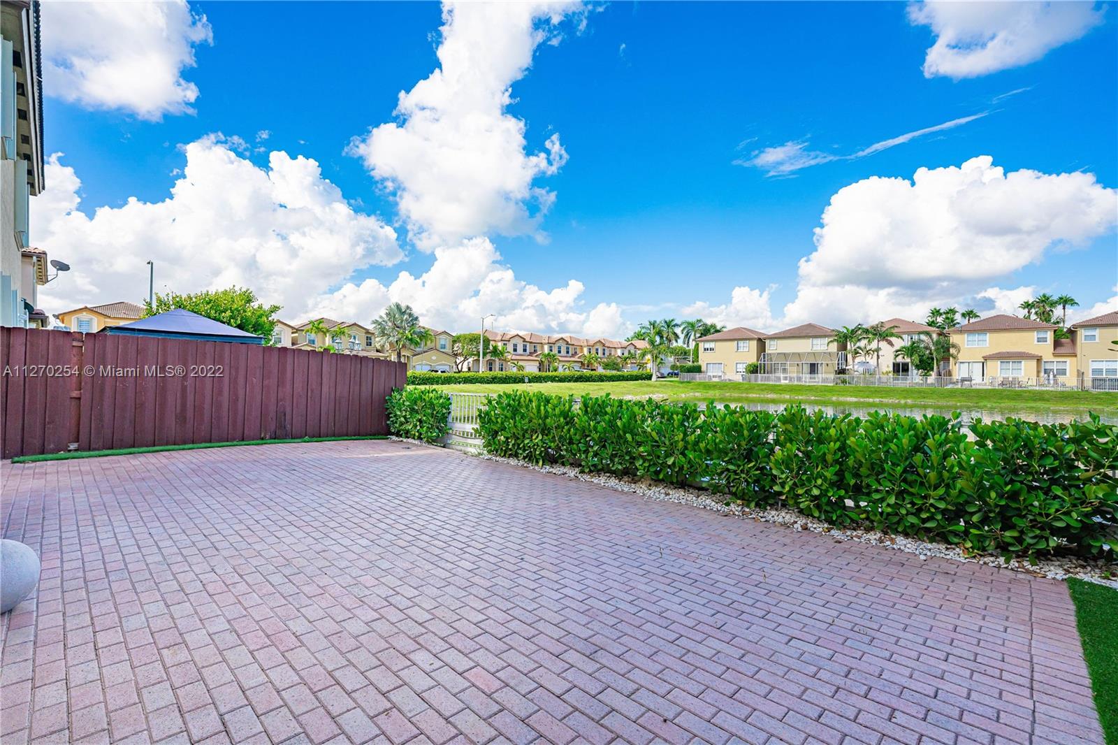 Watch the beautiful sunset from your private fenced lakeview patio, perfect for relaxing or entertaining. This lakeview 2-car garage townhome in the gated community of Polynesian Island of Doral features 4 bedrooms, 3 full baths, with a 1/1 downstairs. Modern kitchen w/SS appliances, spacious living room & dining room with custom zebra blinds. Large master bedroom with his & hers walk-in closets, dual sinks, hot tub & separate shower. One of the bedrooms was made into a huge custom closet. Washer & dryer upstairs too. This house also has Solar Panels! Buyer will pay low monthly FPL bill. Amenities include: swimming pools, clubhouse, tennis court, BB court, gym, & kids playground.