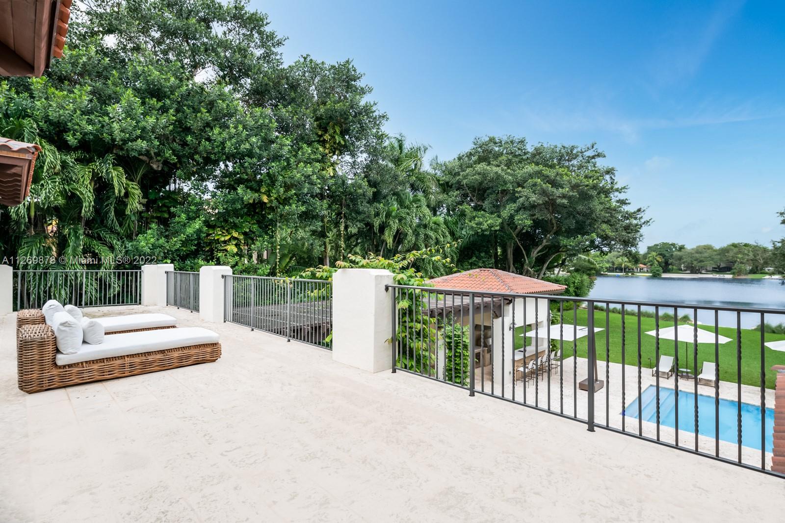 Spectacular 9,482 Sq.Ft. estate with 6 bedrooms and 7.5 baths, on nearly an acre in the guard-gated community of Hammock Lakes. The home has a new roof and an air-conditioned 3-car garage with a gym. Stunning lake views, lush landscaping, arched hallways and vine-covered porticoes. Elegant light-filled living spaces with high ceilings, 2 family rooms, 2 offices and bar. Chef's kitchen with marble center island, wood cabinetry and stainless steel Viking and Miele appliances. The main suite has 2 custom walk-in closets and a spa-like bathroom with double vanities, expansive shower and commodious bathtub. Outdoors have covered terraces ideal for relaxing, barbecue area, pool, fire pit, half basketball court and sandy beach. Resort-style living in an enchanting setting.