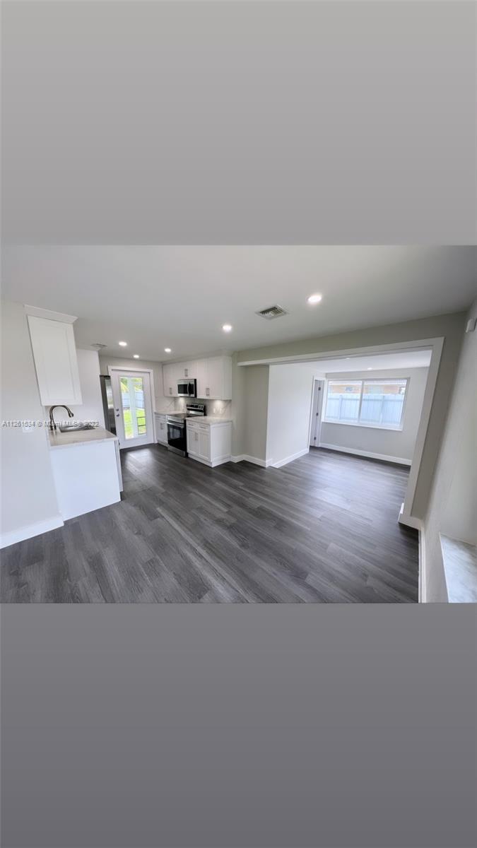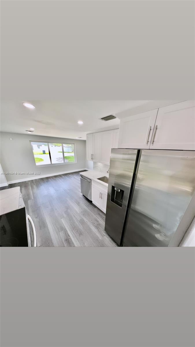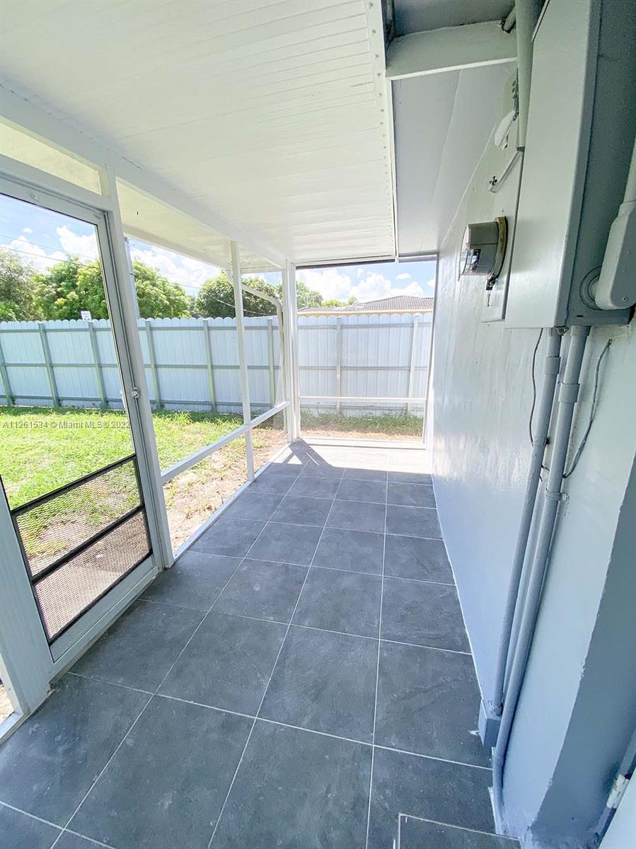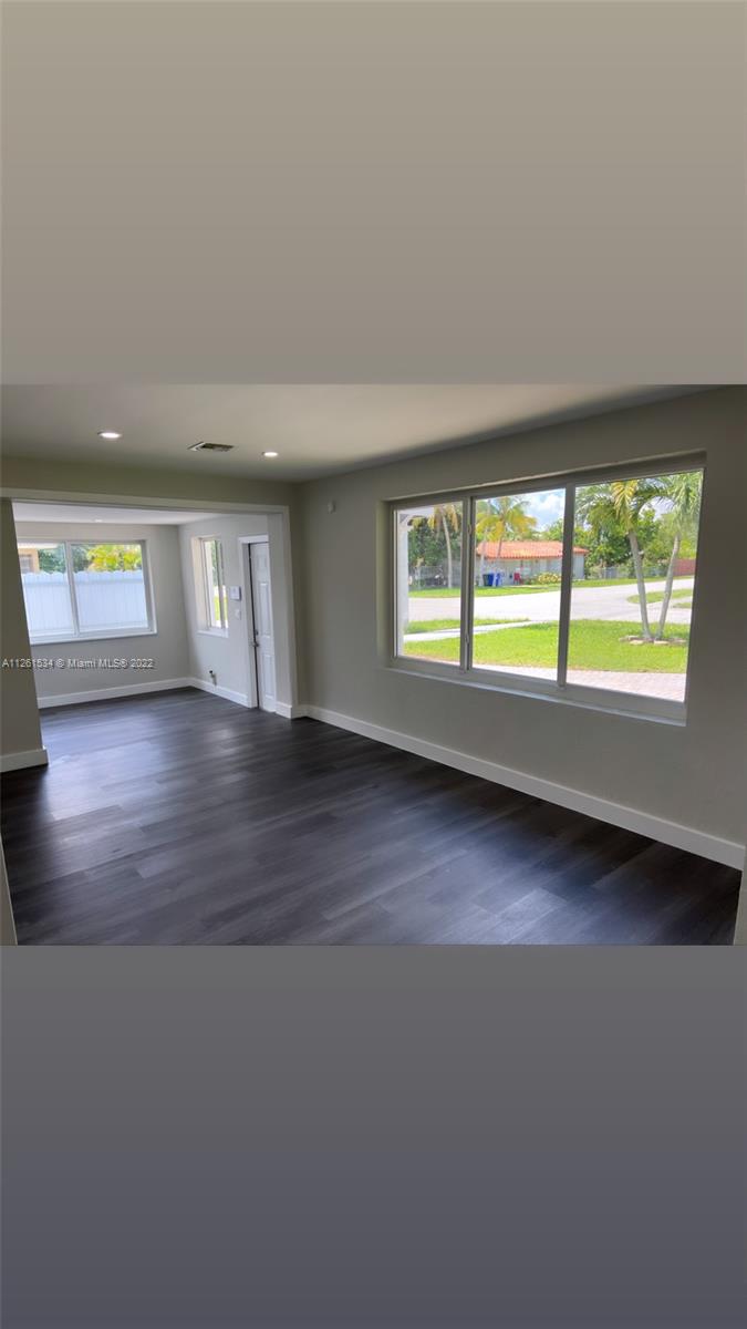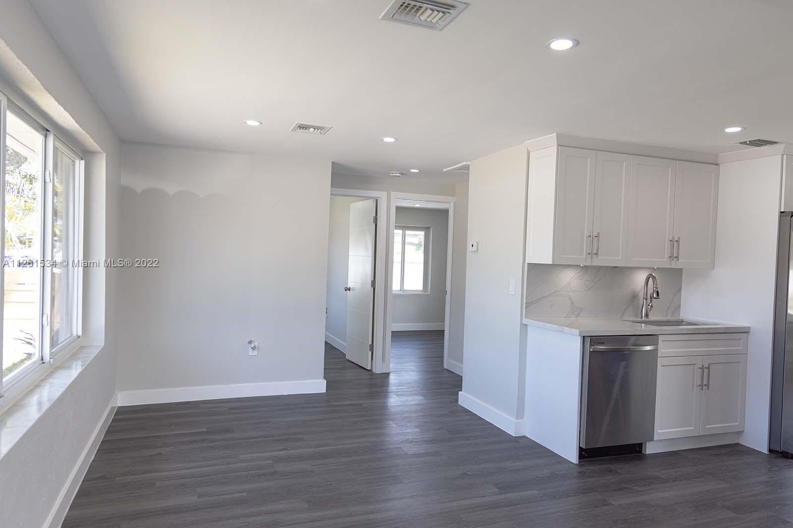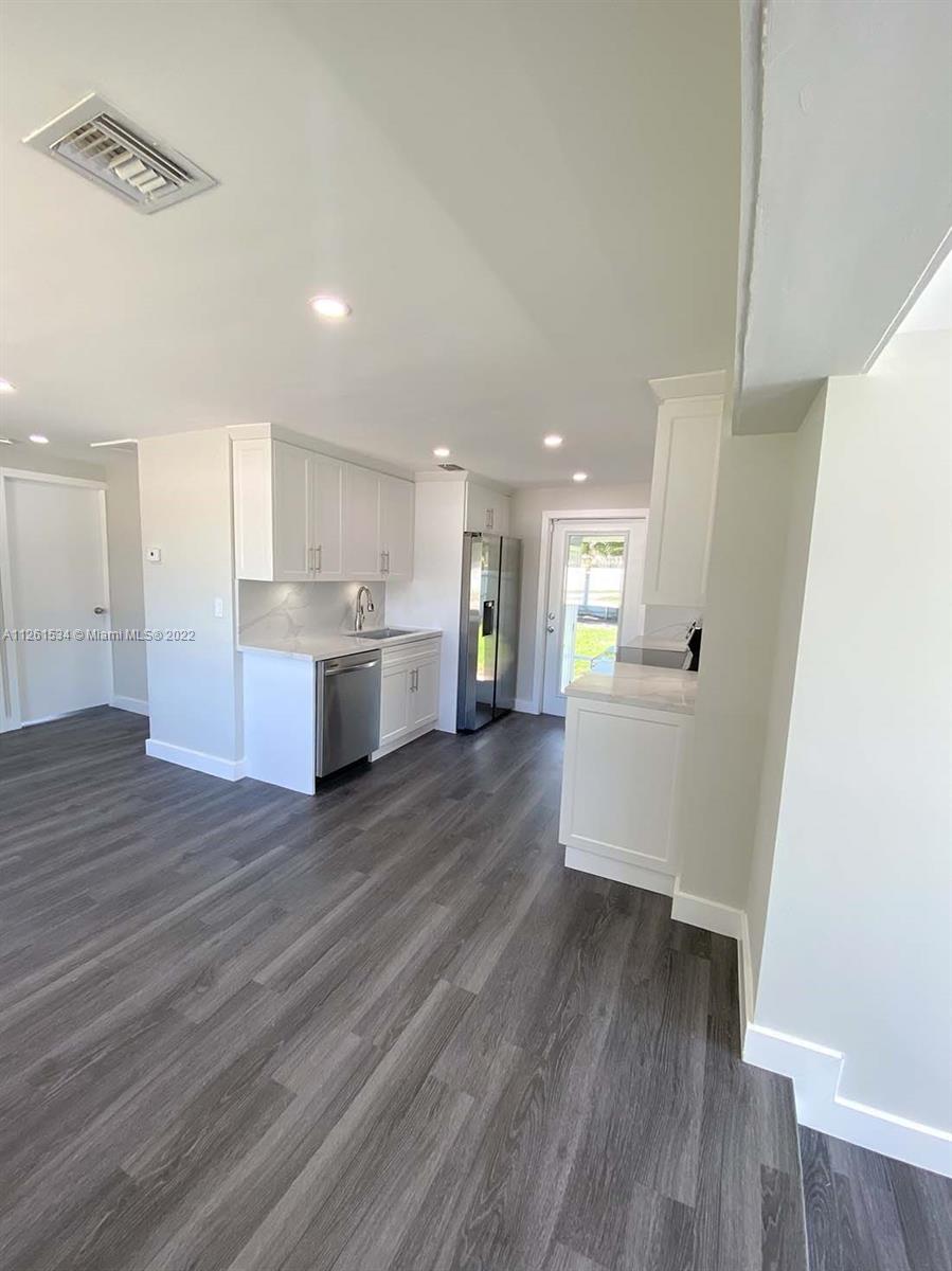 A beautiful corner Lot 3 bedroom 1 bathroom complete renovated kitchen, bathroom, interior features include vinyl floors throughout, Tons of natural light in this bright home, brand new stainless steel appliances. Exterior features include a circular brick driveway, impact windows, Impact door, Outdoor LED Lights, white aluminum fence, additional backyard driveway perfect for Boat/RV parking, storage shed and laundry room. Great opportunity for investment Just minutes away from the Hard Rock guitar hotel, Turnpike, Shopping Center, and no HOA, alarm and camera system, don’t wait to call this beautiful house your new home.