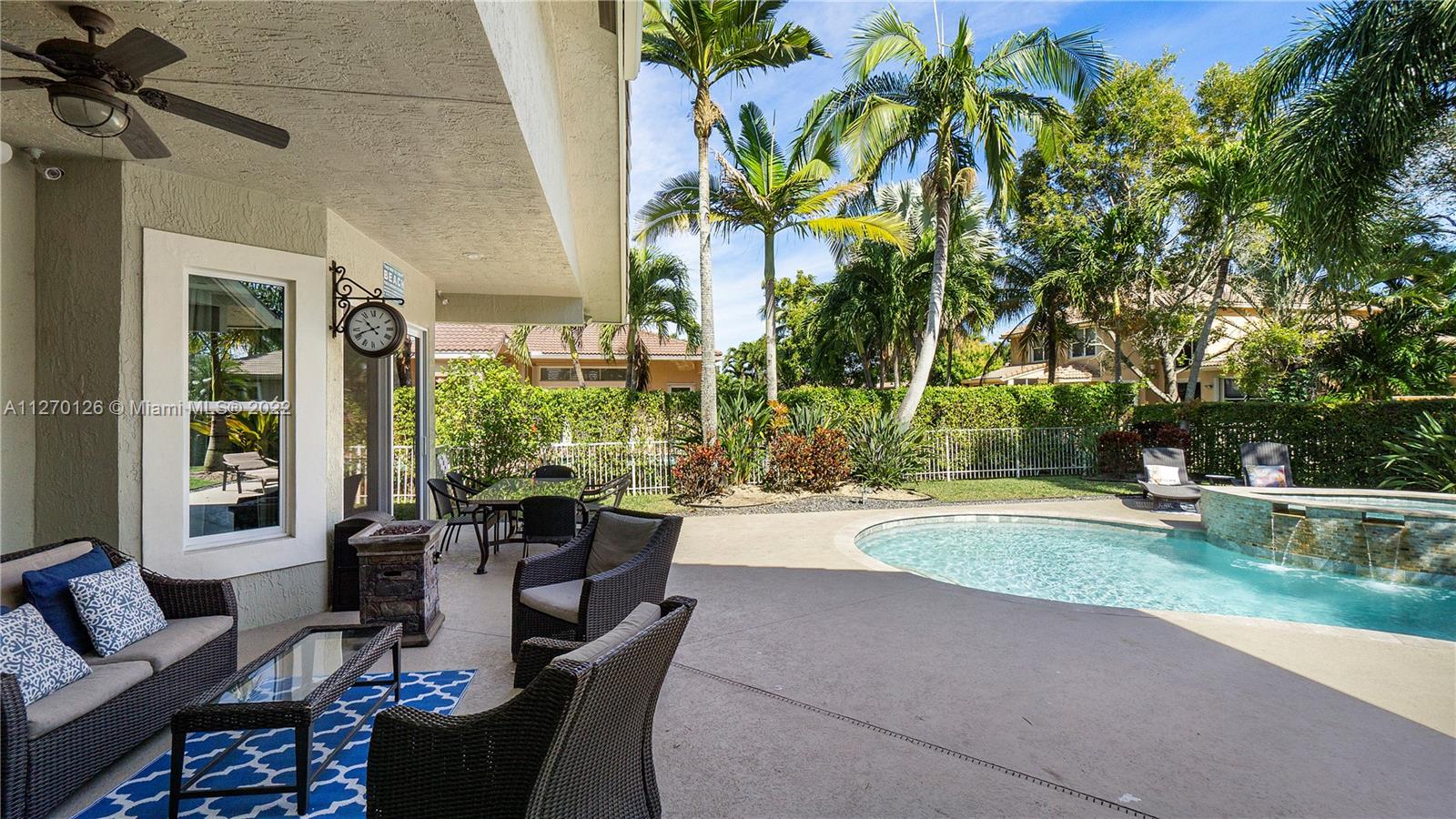This amazing Chelsea @ Kensington model proudly presents this meticulously kept home. Showcasing new custom blinds throughout, upgraded bedroom flooring, new custom fencing for animal safety, exterior retractable awning for shade and new interior painting throughout. Incredible outdoor living space with pool and cascading waterfall hot tub feature with gorgeous landscape. Spacious 3 Car Garage, triple split floor plan with mother-in-law suite and cabana bath. Coveted school districts, amazing shopping, restaurants and quality of life. Easy access to the Sawgrass, Turnpike and I-95. This incredible home won't last long.