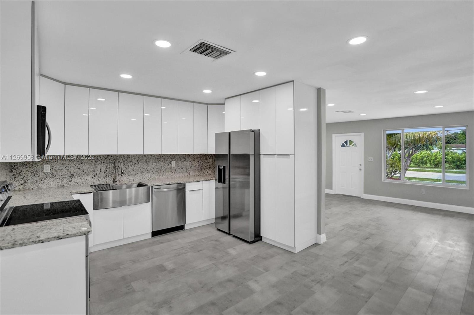 You will love this modern updated ranch style home 10 minutes from the beach and Pompano Pier. This spacious 4 bedroom, 2 bathroom home has a European all white kitchen with 42 inch cabinets, farmers sink, granite countertops and stainless steel appliances. Waterproof flooring throughout and fully renovated spa like bathrooms with frameless shower. Enjoy the large fenced backyard and a circular driveway to accommodate many vehicles. The roof, AC and water heater are all brand new. Doesn't get better than this!