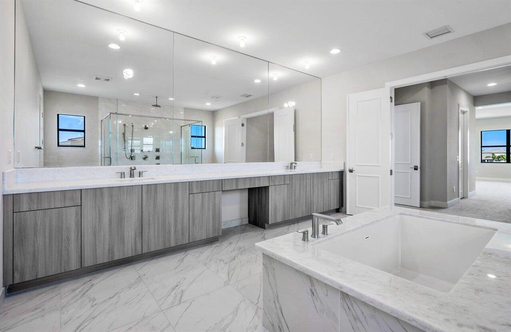 Set in the prestigious Boca Bridges Community, this Brand New/never lived in home is the perfect contemporary retreat. The highly sought-after Riverside model is perfectly situated on an oversized, lakefront lot. Exquisite finishes include 24x48 mud set porcelain tile in main living areas, gourmet kitchen with Wolf/Sub-Zero appliances and double waterfall island, expansive club room with wet bar, beautifully upgraded bathrooms and more. Luxury living is redefined at Boca Bridges, complete with a 27,000 square-foot Clubhouse set on over 7 acres. Residents have access to fabulous resort amenities, including a gourmet restaurant, beach entry pool, kids splash pad, tennis and pickleball.