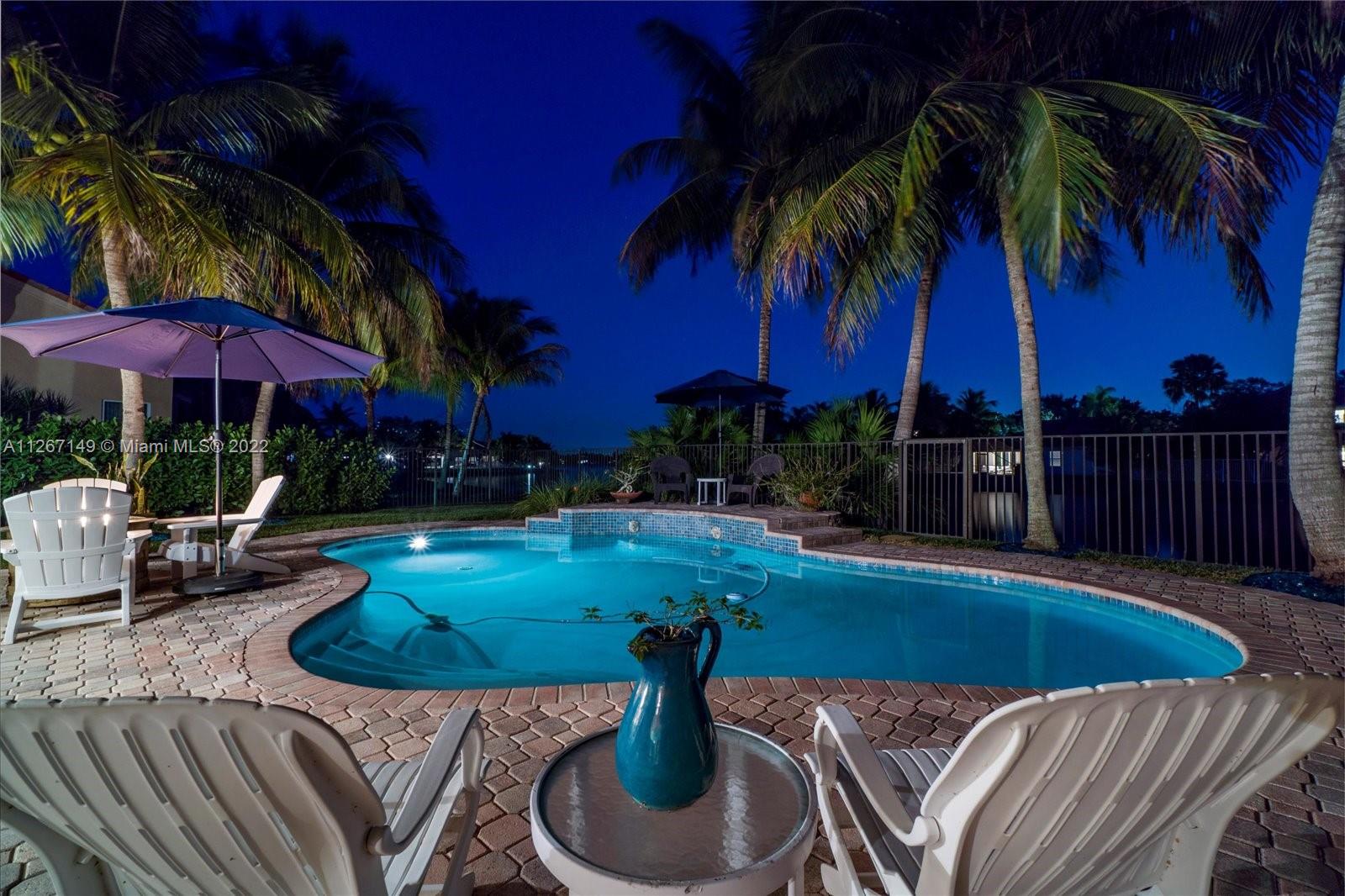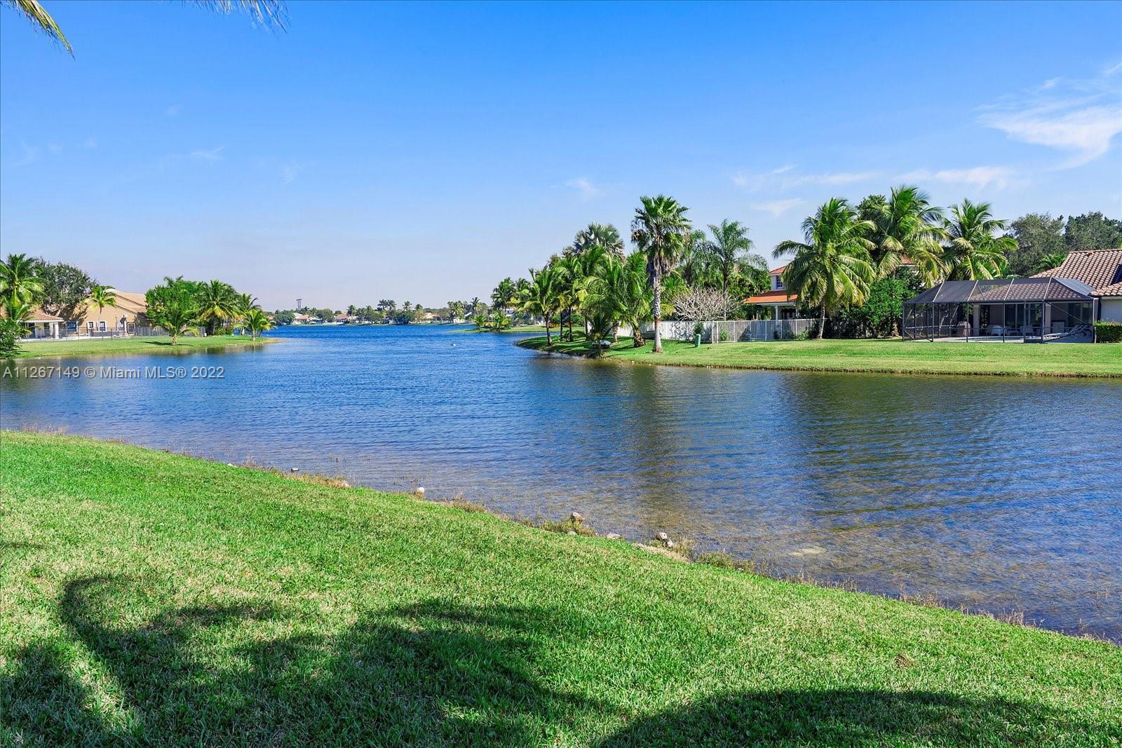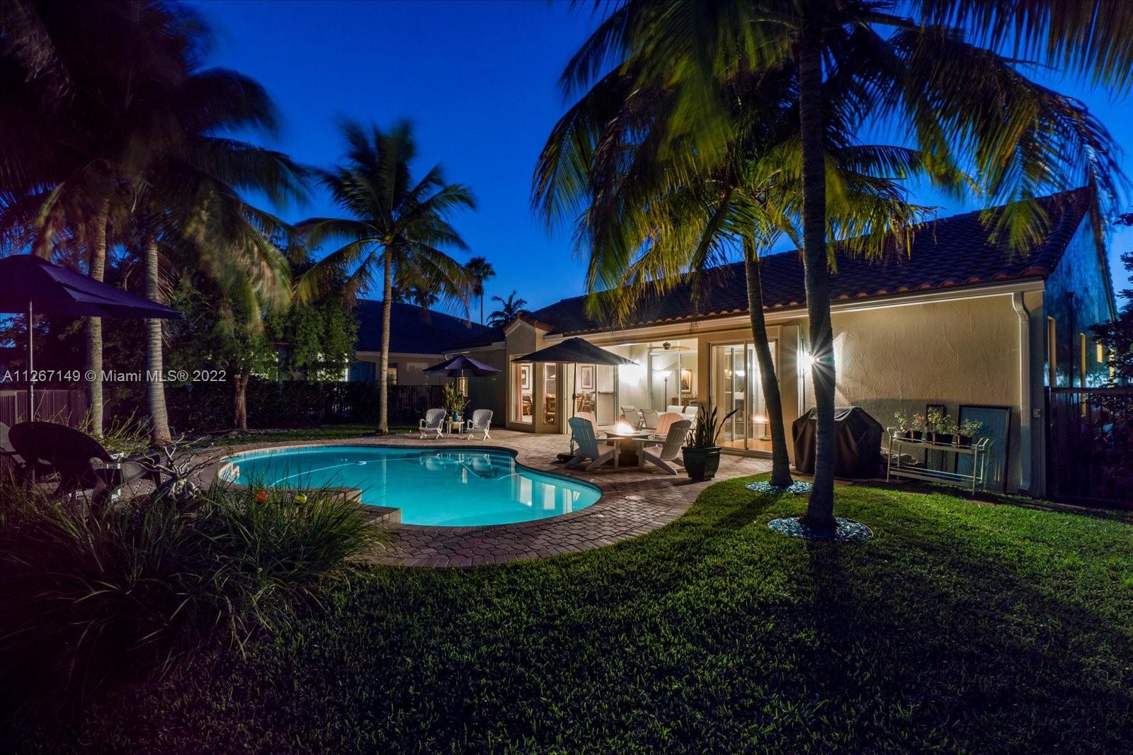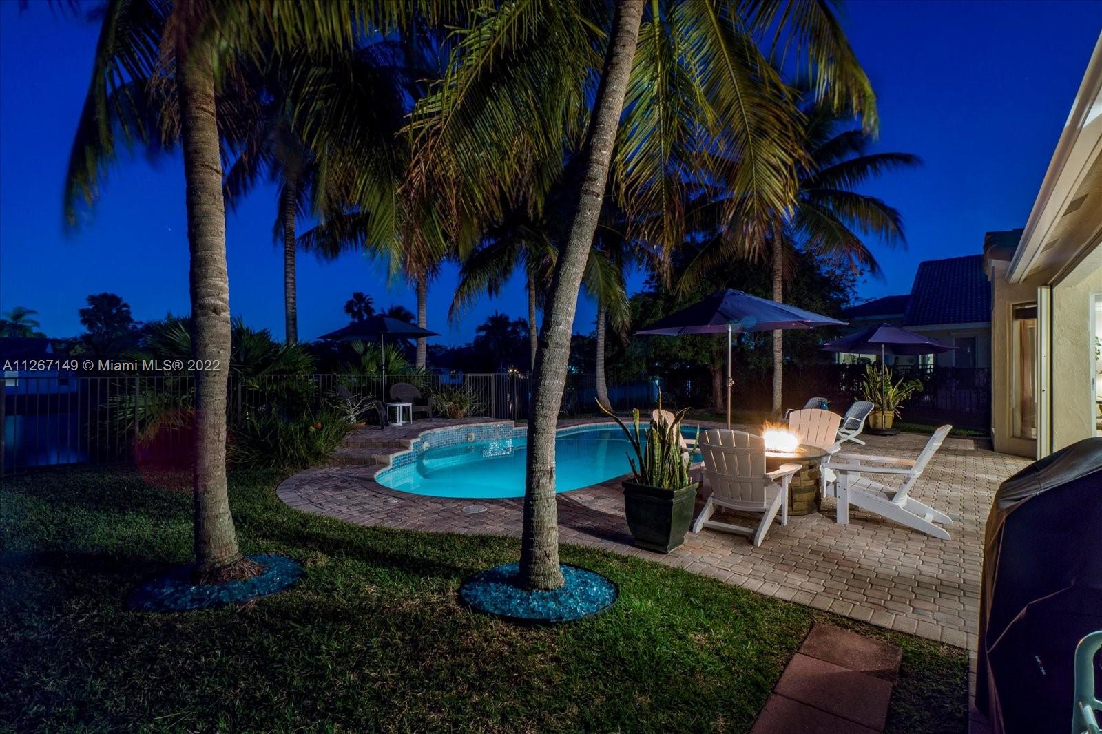 Enjoy the stunning view from this 4 bedroom 2.5 bath home in The Lakes! This home features a split floor plan with a HUGE primary bedroom and tons of closet space. Sliders from the bedroom showcase the newer diamond brite pool with waterfall and the shaded park-like sitting area. There is an open kitchen/family room with formal living and dining rooms. The roof is less than a year old and so is the new AC. Bamboo flooring is only 3 years old!