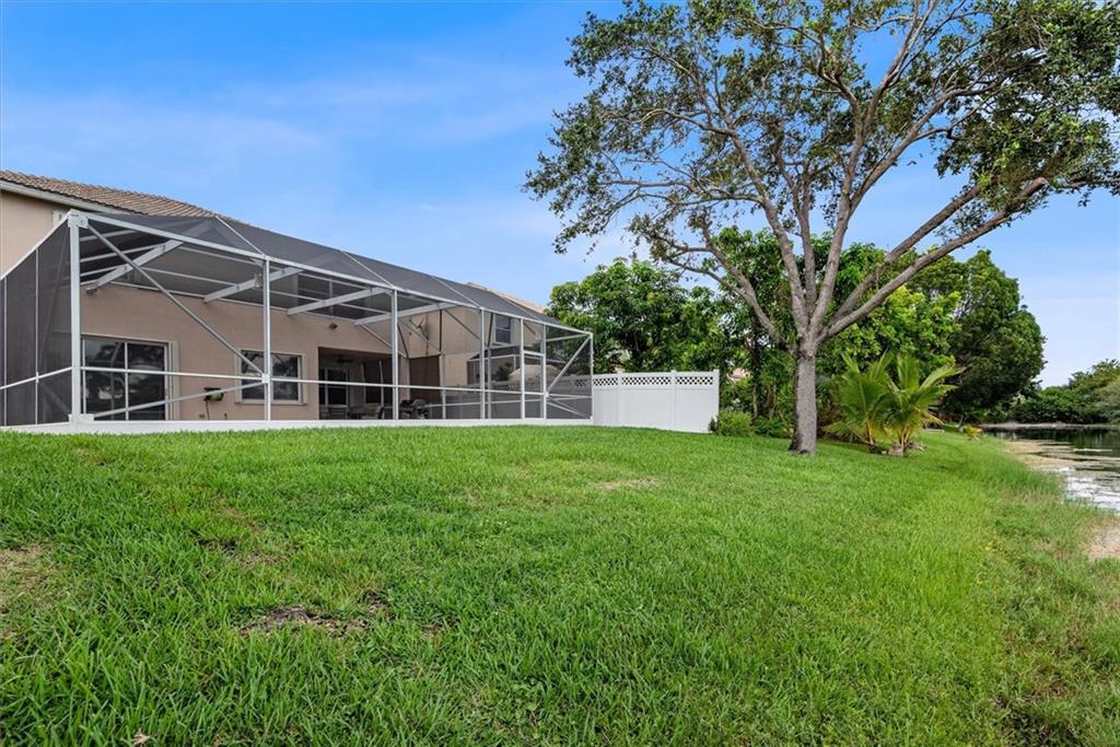 One look and you will fall in love with this stunning waterfront home. Spacious and open interior with wood plank porcelain tile floors & plenty of natural light. The designer kitchen features white cabinets with under and upper cabinet lighting, granite counters, glass tile backsplash and new s/s appliances, double oven & induction cooktop. Also on the first floor is a custom-built in-home office with ensuite bathroom. Walk upstairs to the open loft area, secondary bedrooms & updated bathroom. The expansive Owners suite offers a perfect place to unwind and enjoy the water view. Upgrades include accordion hurricane shutters, crown molding, custom closets, oversized shower & soaking tub. The backyard boasts breathtaking water views, screened in heated pool with salt system & covered lanai.