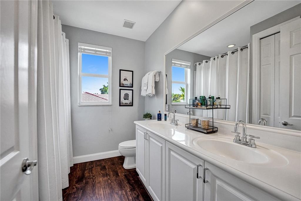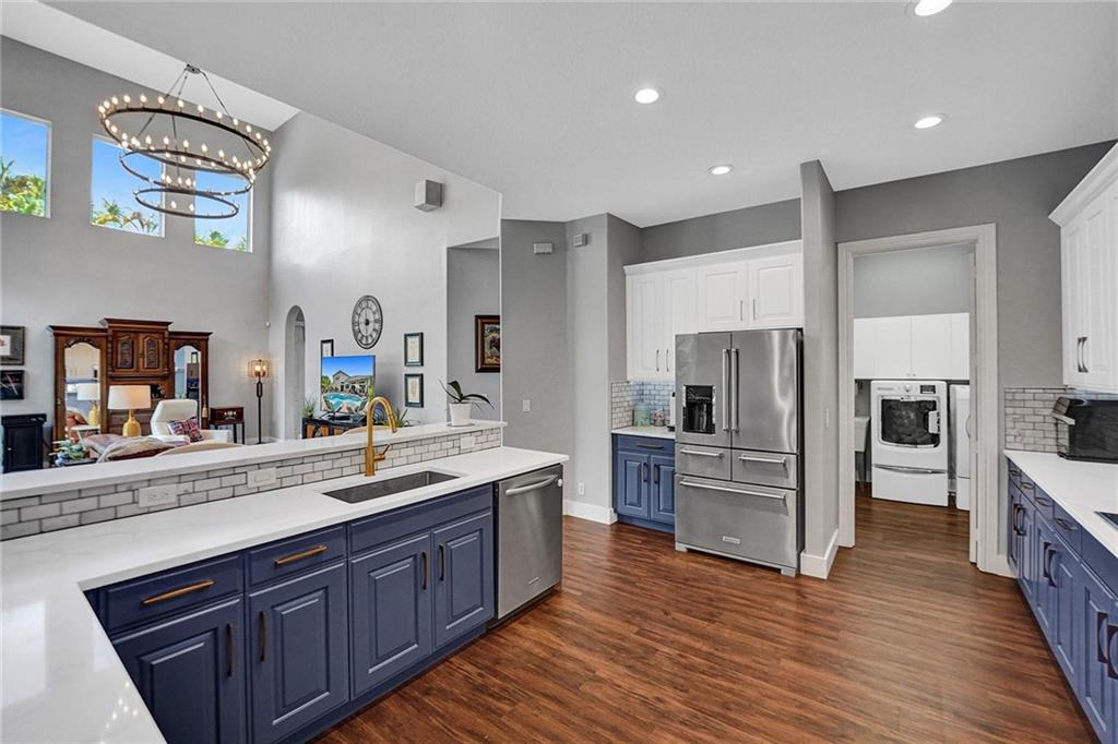 Desirable FOX RIDGE 5BD 4BA w/3 car garage Pool Home. Your Gorgeous home in a prestigious 24-Hour guard gated community. Modern NEW ROOF with Double door entry that opens to a spacious high ceiling living space with FULL IMPACT WINDOWS & DOORS. 1st floor primary BR suite w/luxury wood floors & 2 ample walk-in closets, double vanity sinks, large walk-in shower & a separate roman tub. Brand new kitchen w/quarts counters, kitchen-aid appliances, double oven & induction stove. Laundry room has wash sink & LARGE pantry. New light fixtures & ceiling fans. Upstairs additional 3BD & 2BA. Freshly painted interior/exterior. Oversized waterfall pool w/new tile surrounds & Diamond-Brite. Low HOA & A-rated schools & park at w/distance. Fox Ridge offers tennis courts, Beach volleyball & playground.