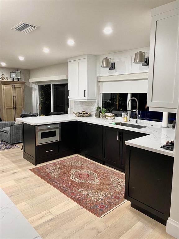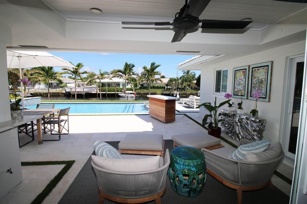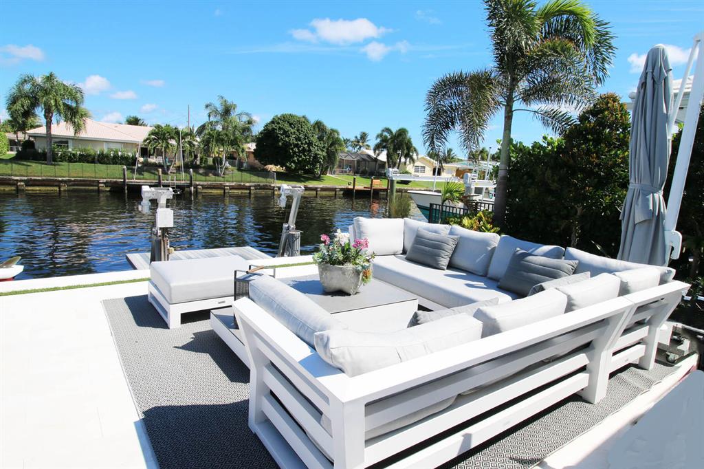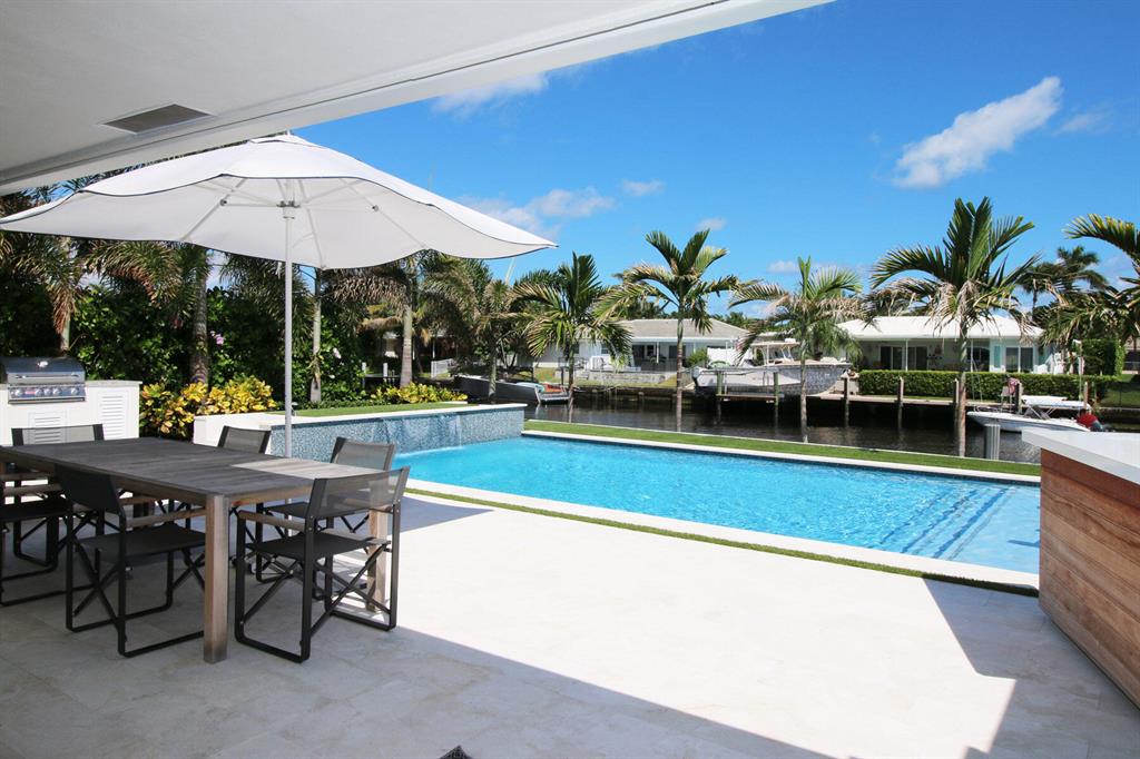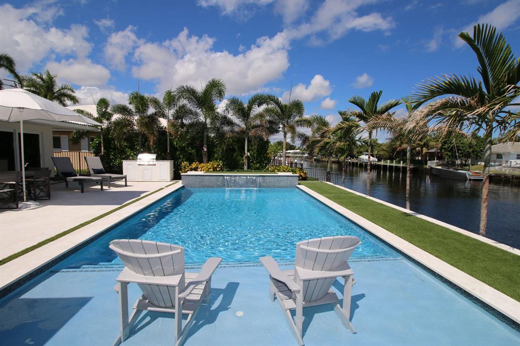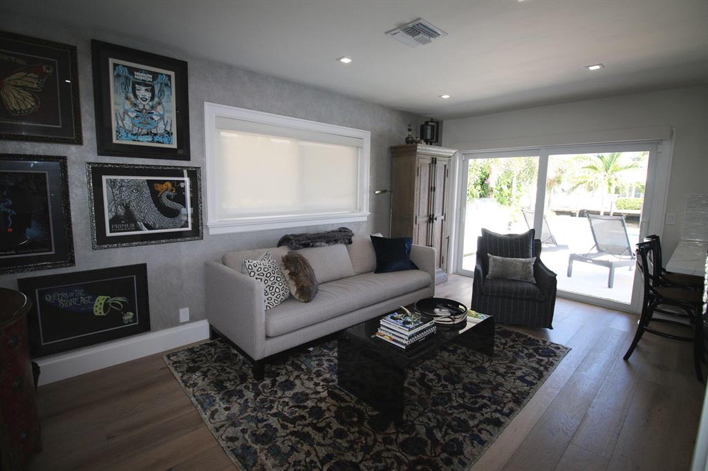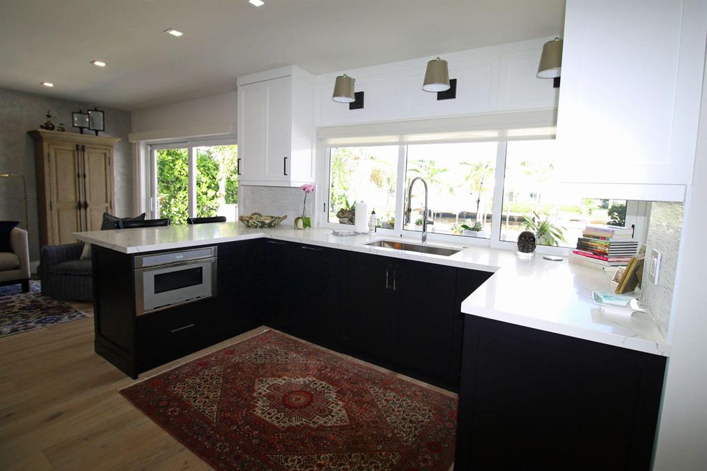 Camino Gardens Waterfront home! Renovation done in past year inside and out. New AC and air ducts, new drywall,base boards and mouldings, raised ceiling in living room,custom white oak flooring, wood inlay and new solid wood interior doors. Impact windows and doors, new electric panel & wiring and tankless hot water heater, inside laundry. All new expended kitchen with Thermador appliances, induction cook top, marble and quartz counter tops in kitchen and baths. New marble and turf patio,new landscaping with large rectangular custom beach end pool. Dock with water and electric and jet ski/Kayak 4000lb lift. New circular paver driveway with Premier One flooring system in garage. East/Southeast exposure to patio/pool! Excellent school district!