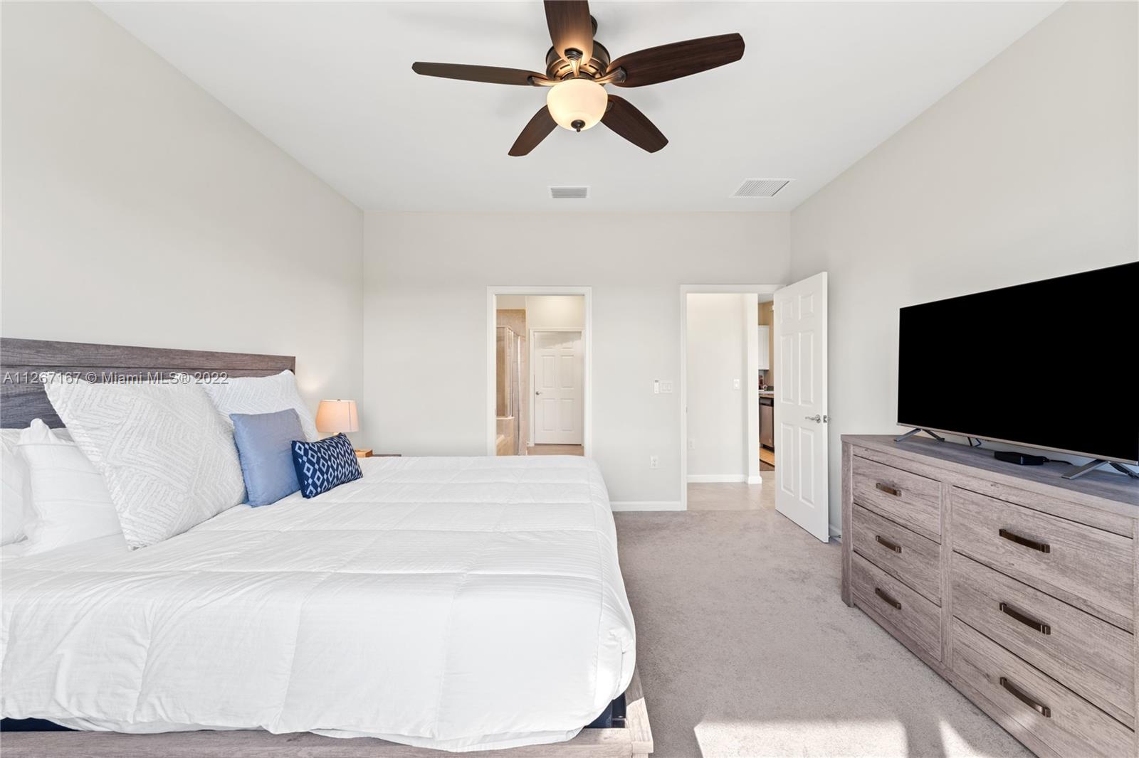 Welcome to Bridgetown & your new home! This 2 bed/2bath plus den home has a pool & lovely lake views. The home features impact windows & doors, smart automation, electronic blinds in every room, & an open floor plan. Walk in & see the beautiful main living area featuring a spacious kitchen with 42" cabinets, large island, granite counters, SS appliances, walk-in pantry, tile throughout the main area, & the zero-corner sliders. The main suite offers a soaking tub & separate shower, dual vanities, linen closet, & walk-in closet. The 3-car "tandem style" garage, with epoxy floor, offers many possibilities (workshop, etc.). Amenities including a resort-style pool, state of the art fitness center, outdoor grill, fire pit, bocce & tennis courts, pickleball, & amenity center.
