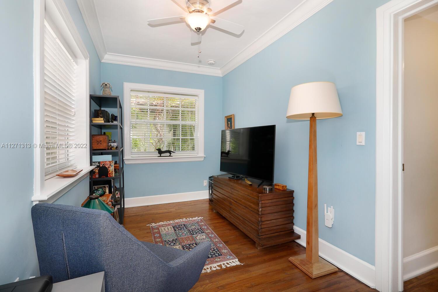 Cozy and charming remodeled Old Spanish 3/2 (main house) in impeccable condition and located within walking distance to Miracle Mile shops, restaurants and Gables business district! Impact windows and doors, plantation shutters throughout, working wood burning fireplace, beautiful wood floors, remodeled galley kitchen, remodeled bathrooms, covered front porch and tropical garden paved patio in the back. A/C only 5 years old and brand new electrical panel. Underground electrical power lines were recently done, all work has been done with proper permits. Detached garage for one car with adjoining laundry room, extra fridge and full bath. Plenty of parking on driveway (easily accommodates 4-5 cars).
