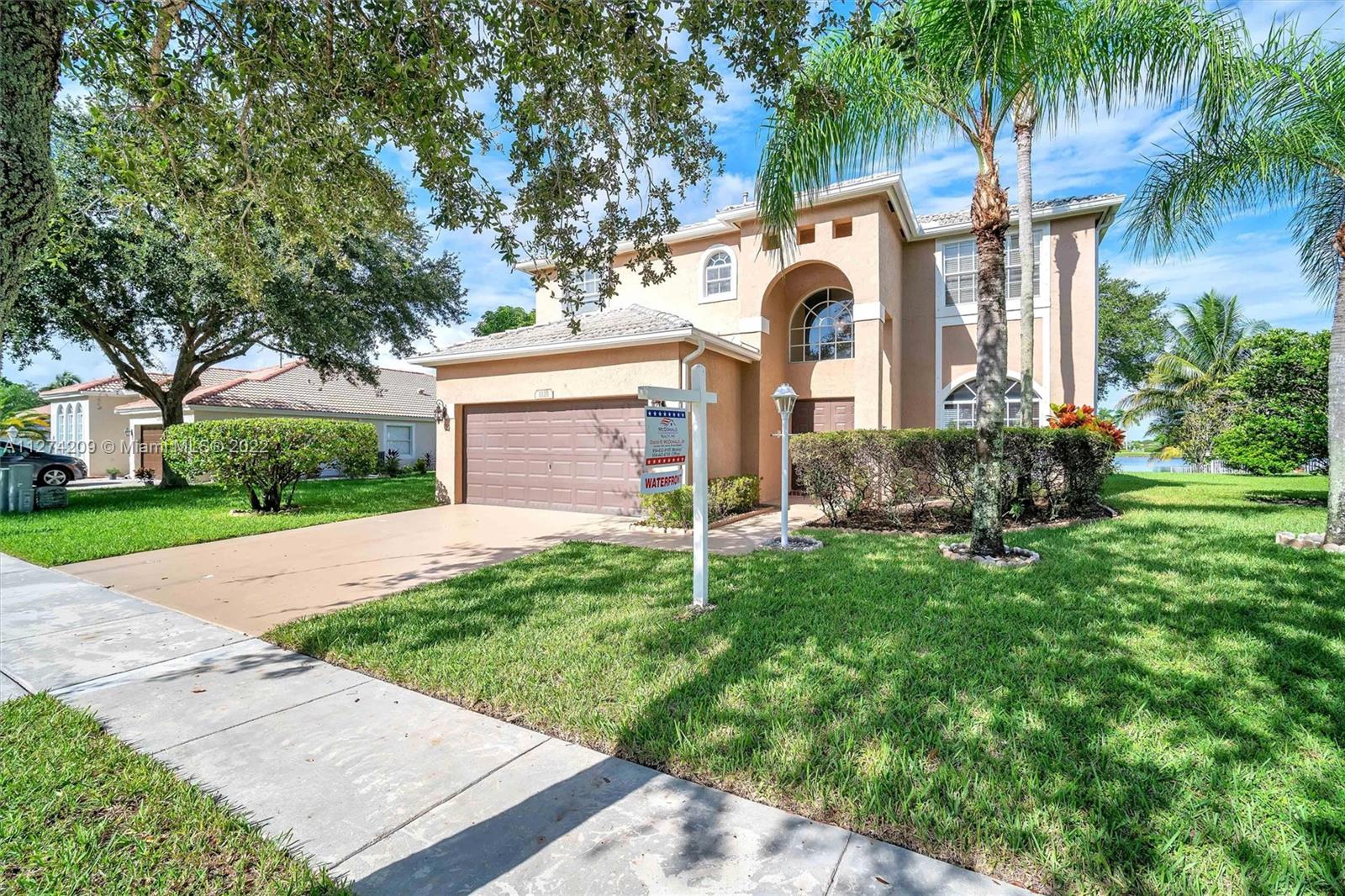 Awesome tropical paradise: 4 Bedrm, 2.5 bath home, amazing lake views in gated resort community of Pembroke Falls. Spacious living area w/ family rm, formal dining, living rm. Gourmet water view eat-in kitchen, new stainless steel appliances incl gas range, wood floors throughout most of home. Huge primary suite w/ large walk-in closets, big bath, roman tub, dual sinks. Superb over-sized waterfront lot, mango, avocado trees, covered patio. Resort-level community amenities: spectacular clubhouse, community pool, fitness center, tennis complex, basketball, much more. HOA dues include: cable, internet, alarm monitoring, 4 manned gates. Great location, super Pembroke Pines Schools. Walk to Grade A Lakeside Elementary. Close to shopping, dining, parks, I-75, easy commutes in every direction.