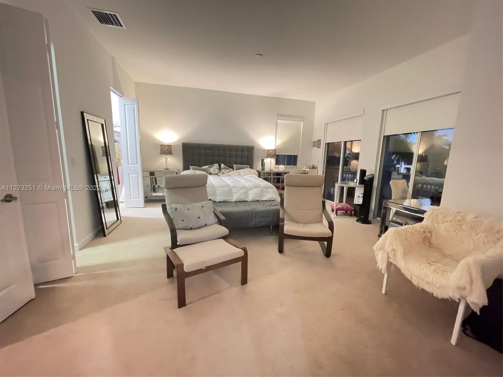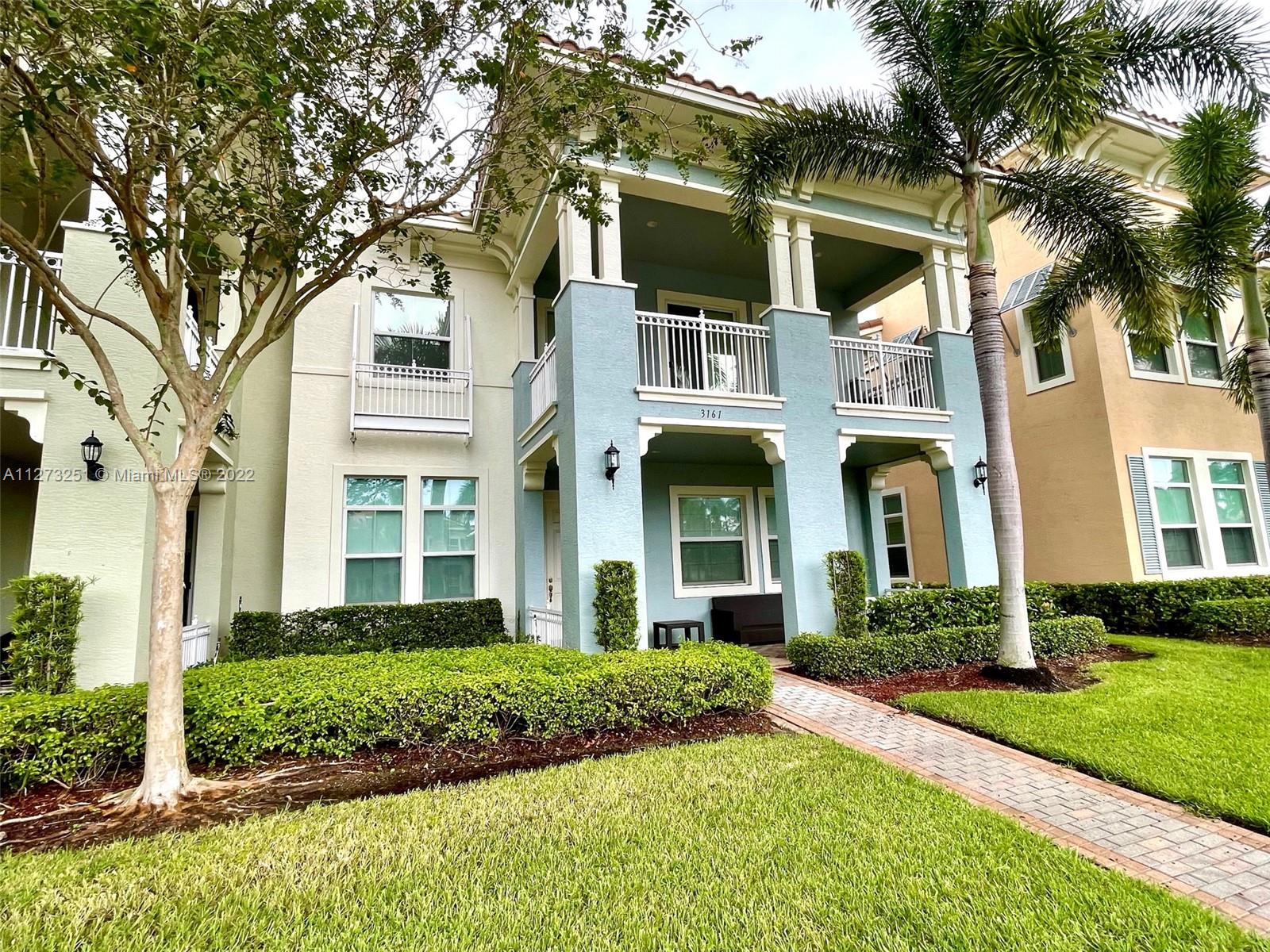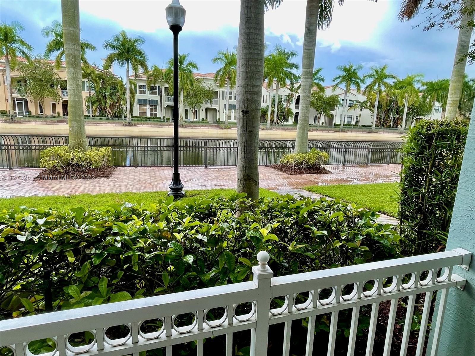 Vacation is everyday in this resort style community. Home has been part time residence & furnished with designer touches. This rarely available waterfront villa has front porch & covered balcony with water view. First floor bedroom with full bath is perfect for guest or home office. Open kitchen to living room/dining has stainless appliances with GAS range, island, pantry and opens to back private patio. Tile floors downstairs and beautiful carpet upstairs. Master suite has 2 walk in closets, sitting area and opens to the balcony. What a view! Convenient full laundry room upstairs. All the bedrooms are a generous size and have tasteful furnishings. Easy access to Sawgrass Expressway. Close to Panthers arena for games and entertainment, Sawgrass Outlet Mall with fine dining and more.