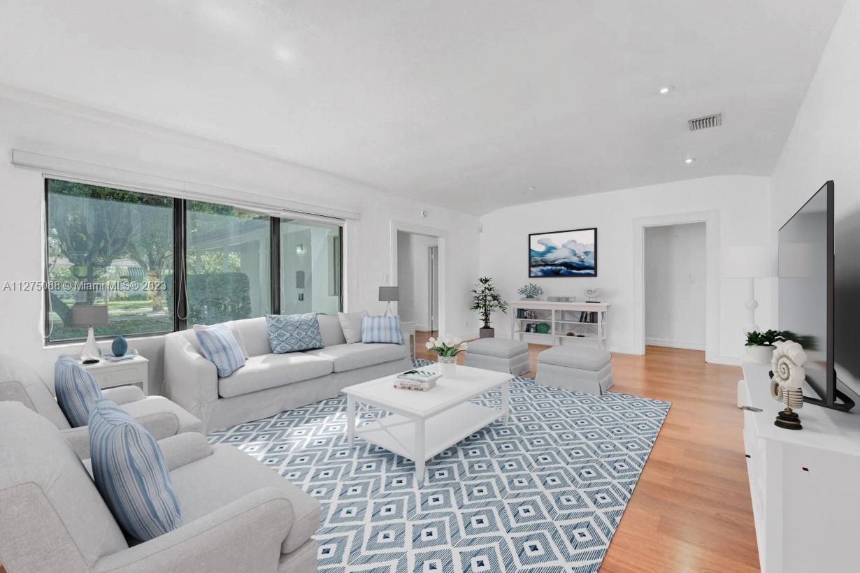 Finally on the market!! here's where your Miami Shores search stops, come seize this gem rarely available. 3 bedrooms, 2 bathrooms, 1 car garage, extra-large back yard, new pool/patio area, magnificent pool view with beautiful fruit trees. Recently renovated 2019-2021, upgraded kitchen with SS appliances and wood cabinets, 10-year new roof, all new impact windows and impact garage door, upgraded bathrooms, upgraded water and sewer pipes with PVC40, newer 2020 A/C, custom made walking closet in master bedroom, additional refrigerator, new sprinklers system, updated electrical system with newer panel and breakers, and much more. This house has all for accommodating all your needs and for the full fun and entertaining for you and your family, great location in the most desirable Miami Shores.