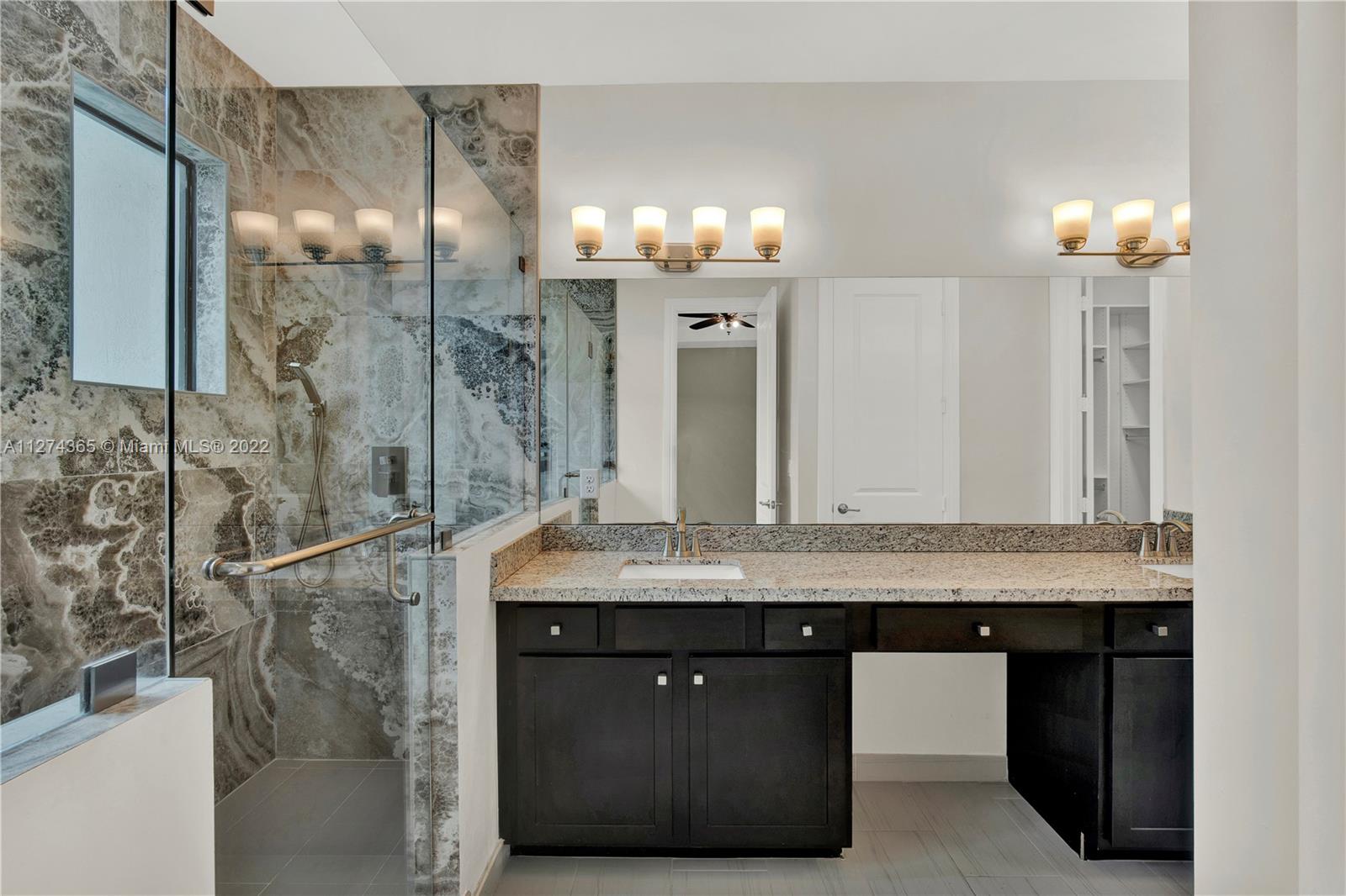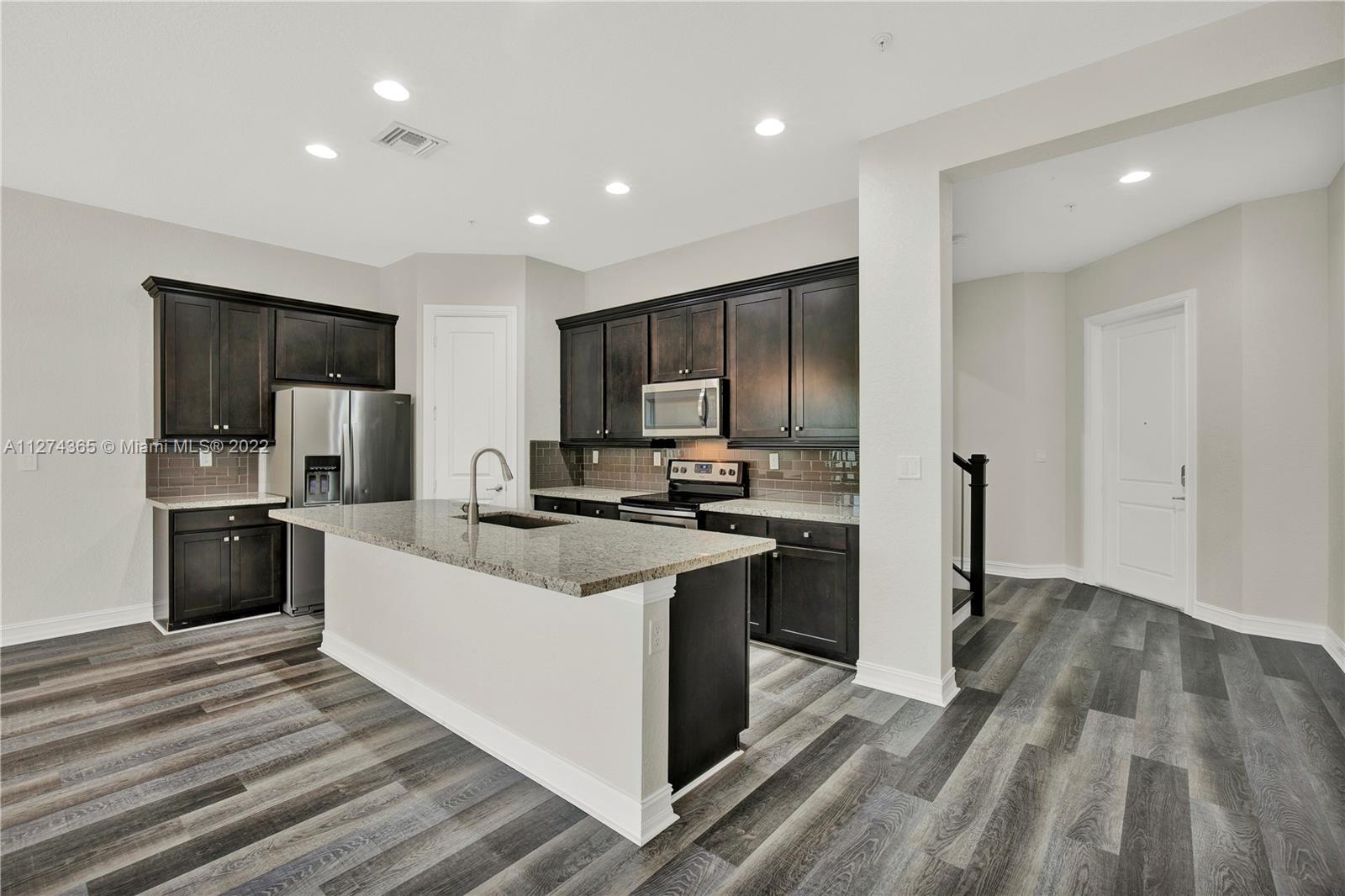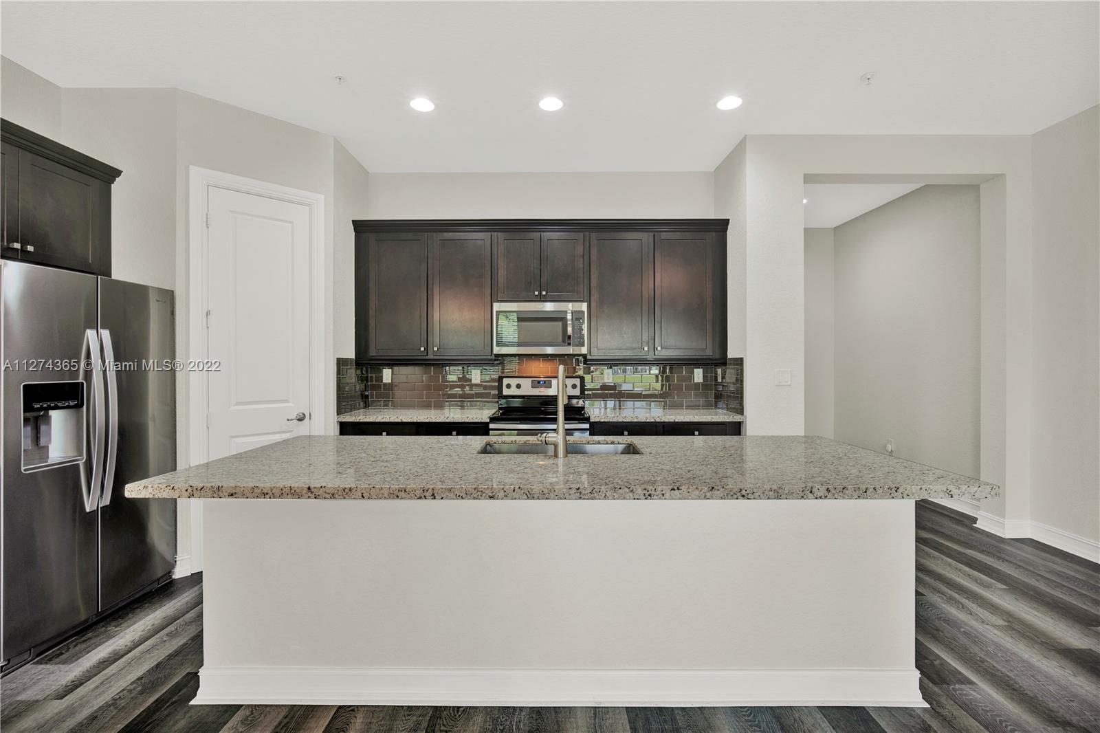 This beautiful lakefront, two-level townhome with two car garage features 3 bedrooms, 2.5 bathrooms and is located in the desirable Raintree community. Kitchen features Espresso Shaker Cabinetry, Granite Countertops, Grey Subway tile backsplash and Stainless-Steel Appliances. Upgraded iron stair rail, and vinyl wood flooring throughout first level that continues up the stairs to the primary bedroom. Primary bedroom has balcony overlooking water and two separate primary closets with custom built in cabinetry in both. Primary bathroom features dual vanities and upgraded shower with double rainfall shower heads with handhelds. Raintree is a gated community with Clubhouse, Fitness Center and Heated Pool. Townhome is vacant and was professionally cleaned and is ready for the next owner.