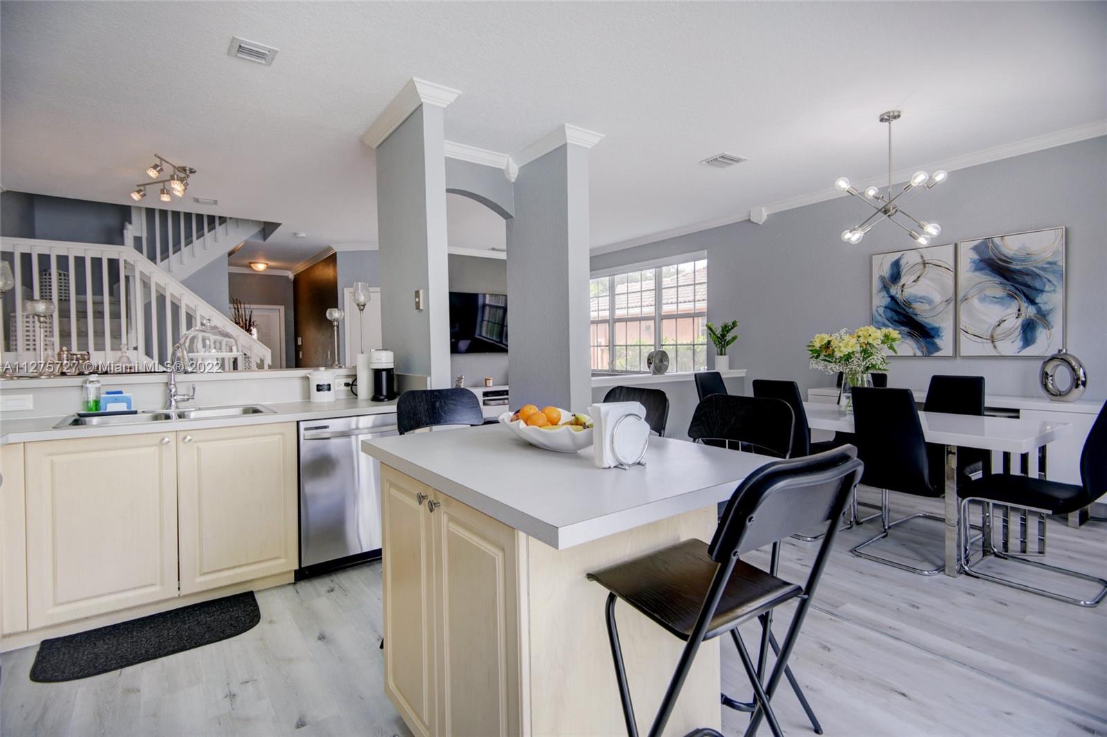 This is the one you have been waiting for. Move in ready 4/2.5 with a 1 car garage in fabulous gated Southwind Cove. Corner unit featuring an open and spacious floor plan with just under 1900 sqft of living space and new modern vinyl flooring in all main living areas and bedrooms. Expansive livings paces which is perfect for those who like to entertain. Nice size bedrooms including large master suite with walk-in closet. All bedrooms are upstairs. Big fenced in backyard with plenty of room to roam. A/C less than 3 years old. Minutes from Franklin Academy, low HOA which includes security, and lawn care. 2 dogs are allowed with a max of 25lbs. Home is located between 2 parks and not far from the highway and Sawgrass Mills Mall.