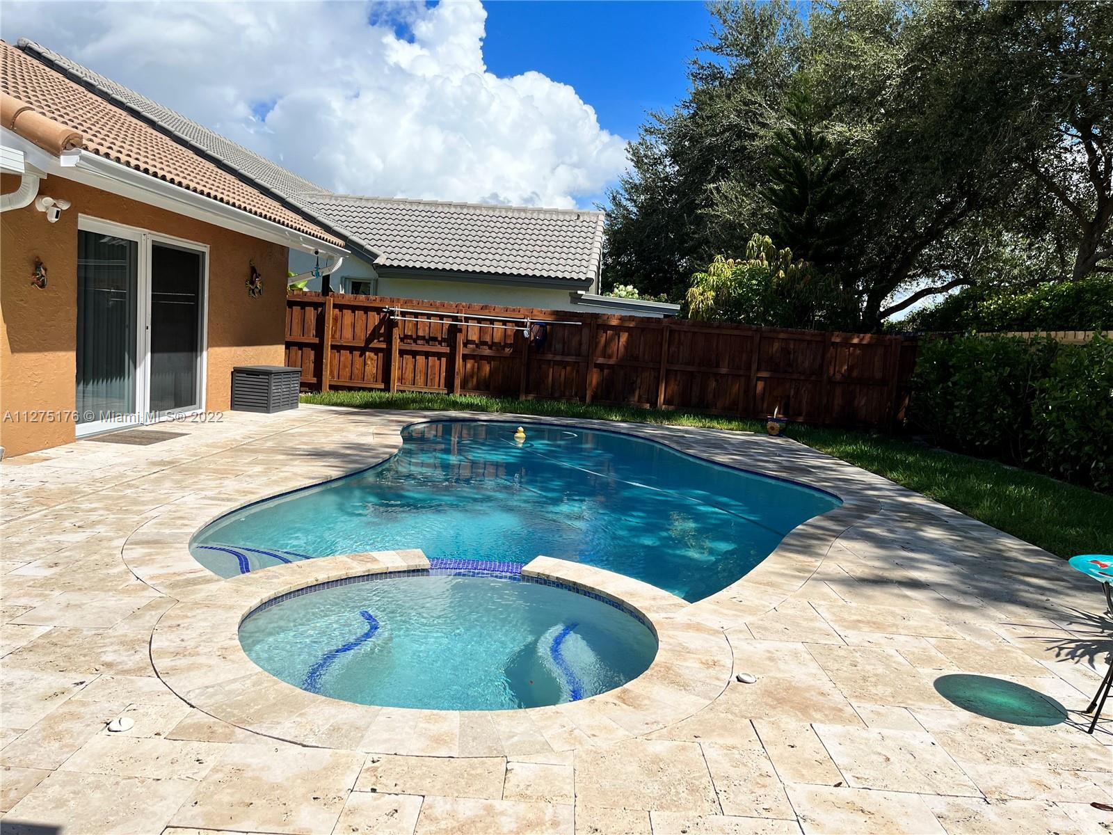 Beautiful Pool Home in desirable Spring Valley community with 4 Bedrooms 2.5 Bathrooms and a 2 Car Garage. Interiror Finishes include: Kitchen with Quartz Countertops and Waterproof Vinyl Flooring. All interior doors have been remodeled to paneled doors. Bathrooms have been recently remodeled and Master Bathroom has a freestanding Tub and Shower. Custom closets in all bedroom closets and pantry. New Titan Water heater and new Washer/Dryer. Exterior Features: Pool includes Heater and Saltwater System with a large pool deck and new Pergola with LED lighting which is a great space for entertaining. All window and doors are hurricane impact, alarm system and security cameras included. Low HOA only $77 month. Home is ready for you to move in and call home.