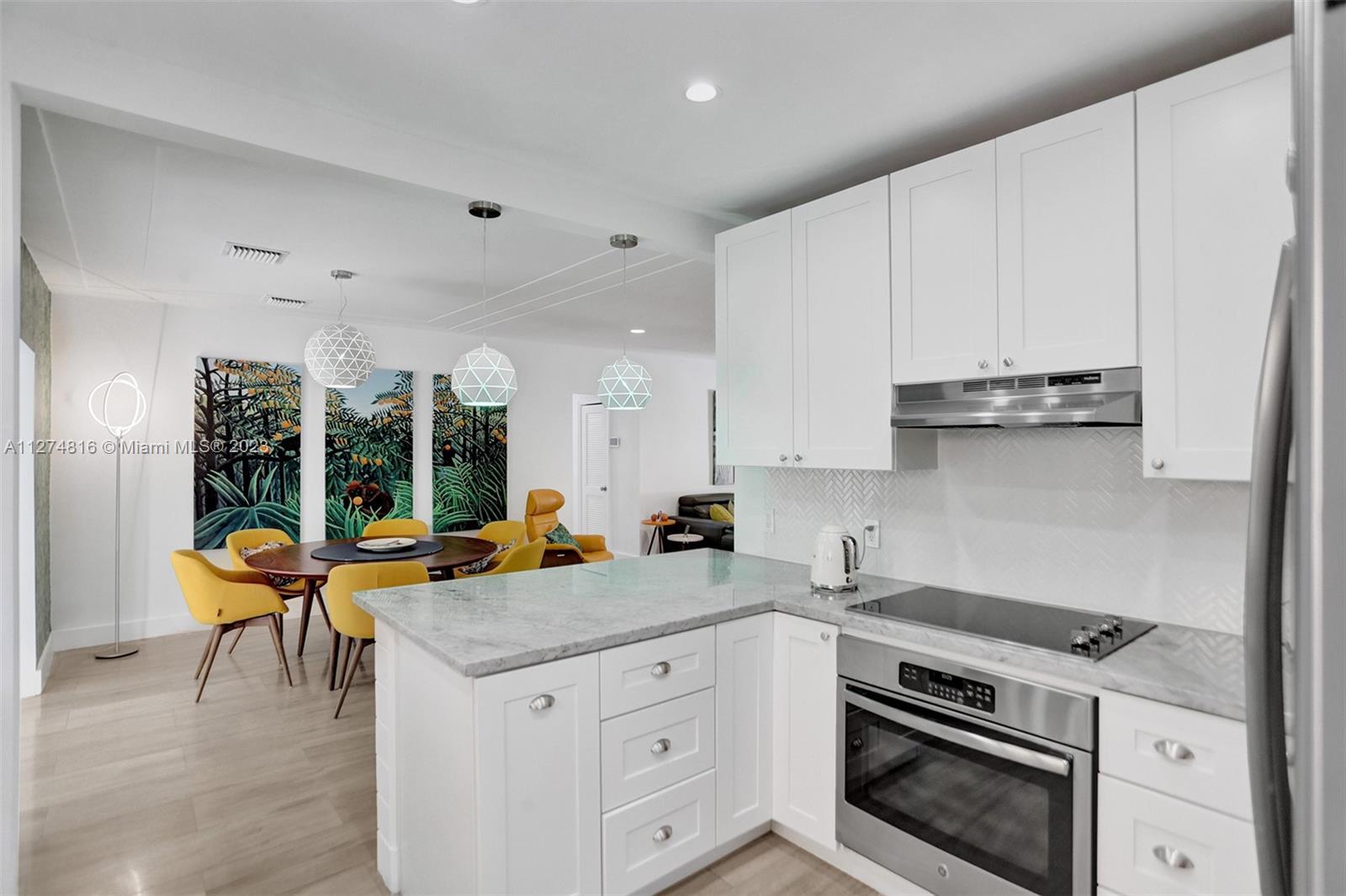 Stylish Beach House is fully renovated and artistically redesigned with high-end fashionable materials. Lovely Living /Dining area, Modern kitchen, 4 Bedrooms with closets, 3 Bathrooms, Veranda. Ready to move in! An Ideal Location! Only two blocks from the beach! Steps from to Bal Harbour Shopping Center, restaurants, and Place of Worship. Tropical private backyard with its "Artesia" Californian SPA for 6 persons, a shower, a solarium, and a spacious covered dining /living area. The private backyard is perfectly designed and equipped for a relaxing time outside with friends and family. Modern gas water heater, washer/dryer, self-cleaning oven, SPA, garden shower, sink, sprinkler system, and more. Driveway for 2 cars and 3 parking spaces on the street.