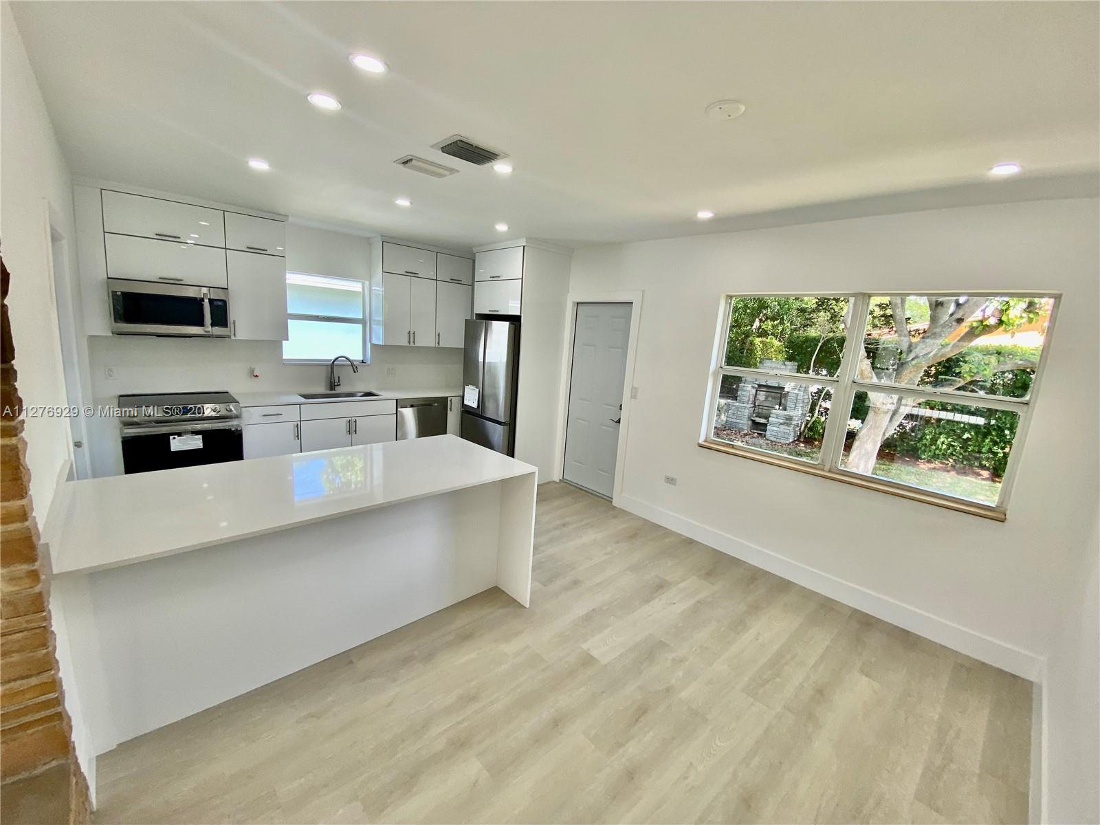 Situated in an amazing Gables location this Beautifully remodeled 2/2 Coral Gables home features a custom kitchen, custom cabinets, stainless steel appliances, new flooring, hurricane impact windows and doors, central AC, recessed lighting, and level 5 finished interior walls. All-new PVC plumbing, all-new electrical wiring and brand new electrical panel are also included. Everything has been done with permits in 2022! House is on sewer(rare for Coral Gables) 2 mango trees in the backyard. Some say it's the best mango they have ever tried.