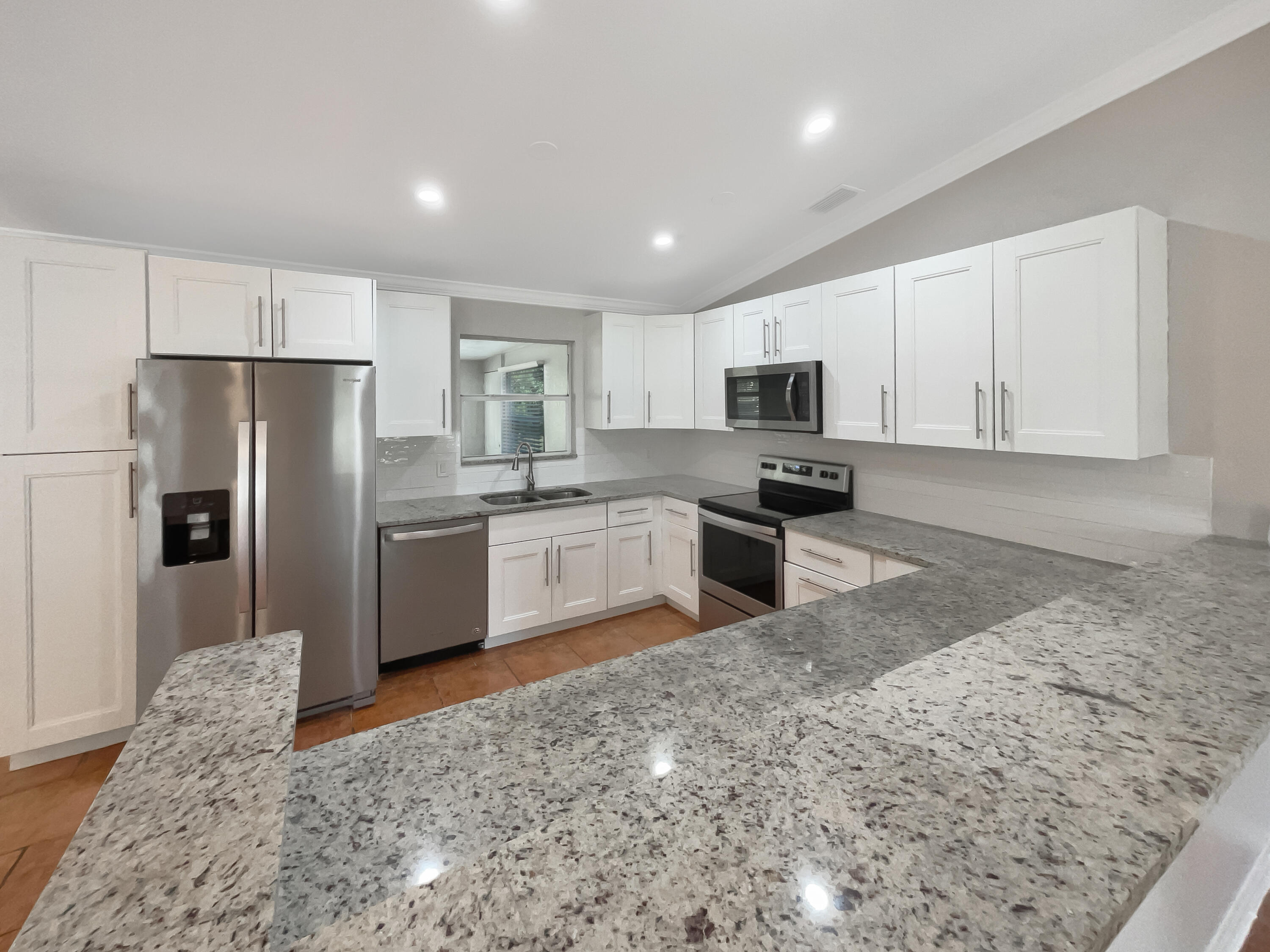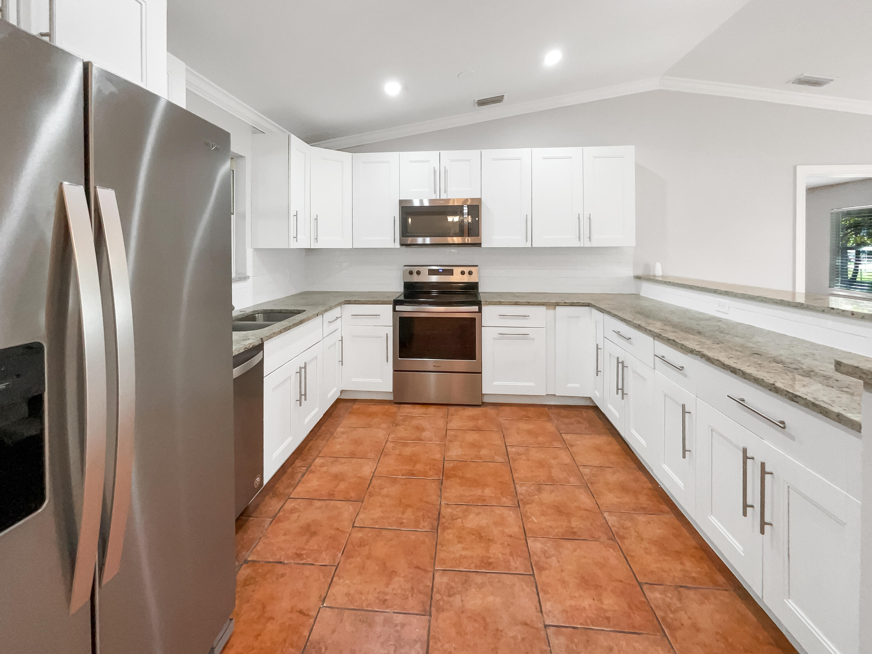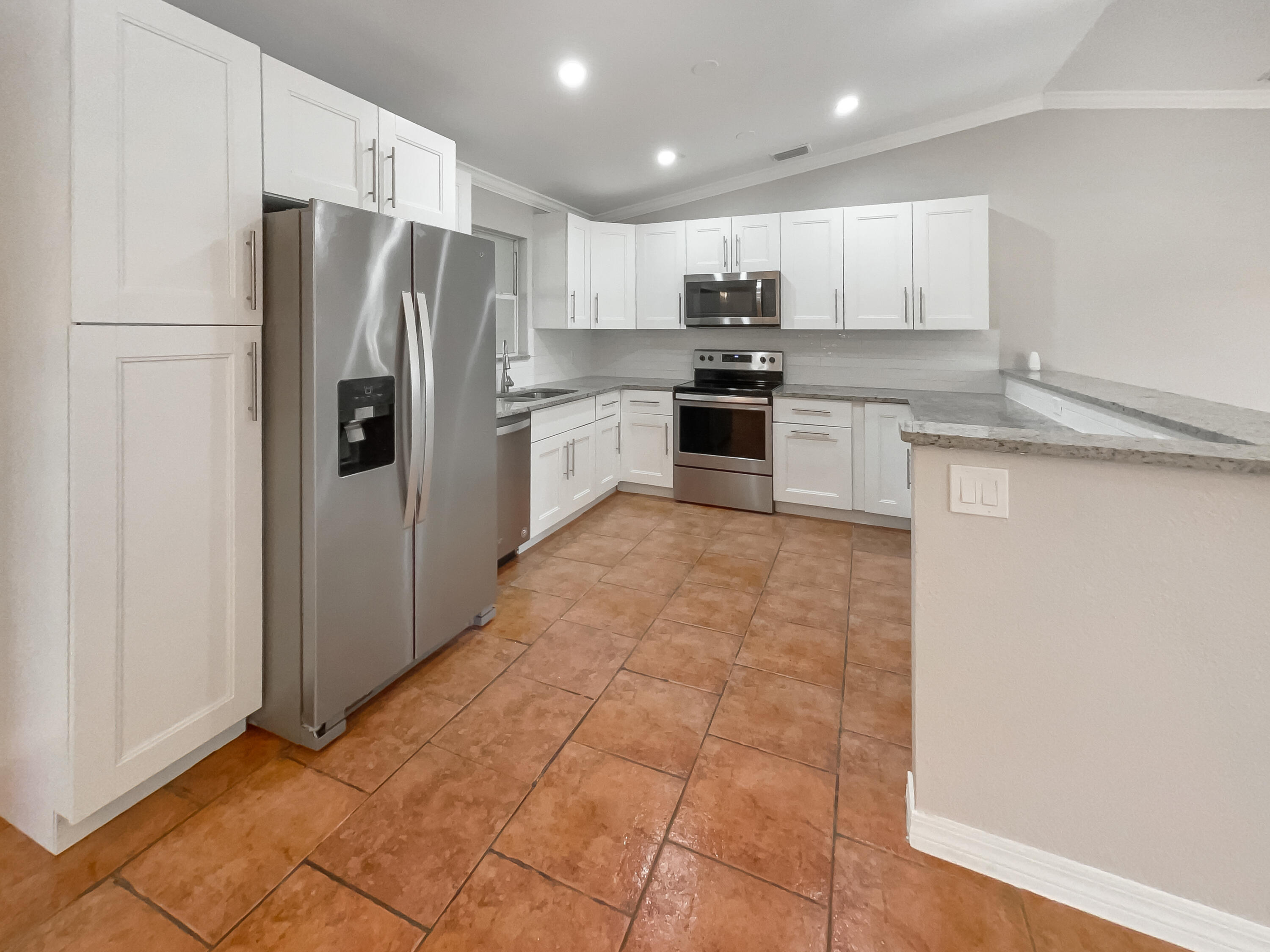 Your dream home is waiting just for you! Recent updates to the kitchen and baths were completed in February 2023. This kitchen is ready for cooking with newly painted cabinets, modern hardware, ample sleek countertops, and stainless steel appliances. Flow into the main living area, featuring Natural lighting. Bathroom updates include new vanities and resurfaced baths and showers. The main bedroom features a spacious layout and has an ensuite bathroom. Other bedrooms provide additional flexible living space. Refreshed paint and updated lighting and fans can be found throughout this open floor plan home. Through the enclosed patio, head to the backyard for the perfect private area to enjoy the outdoors. Don't miss this incredible opportunity.