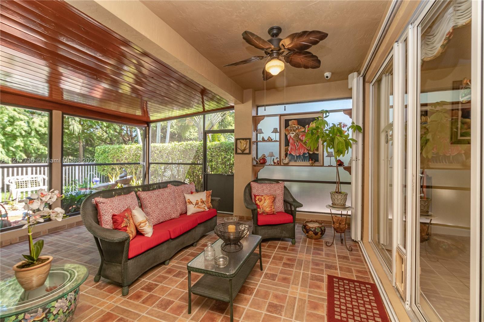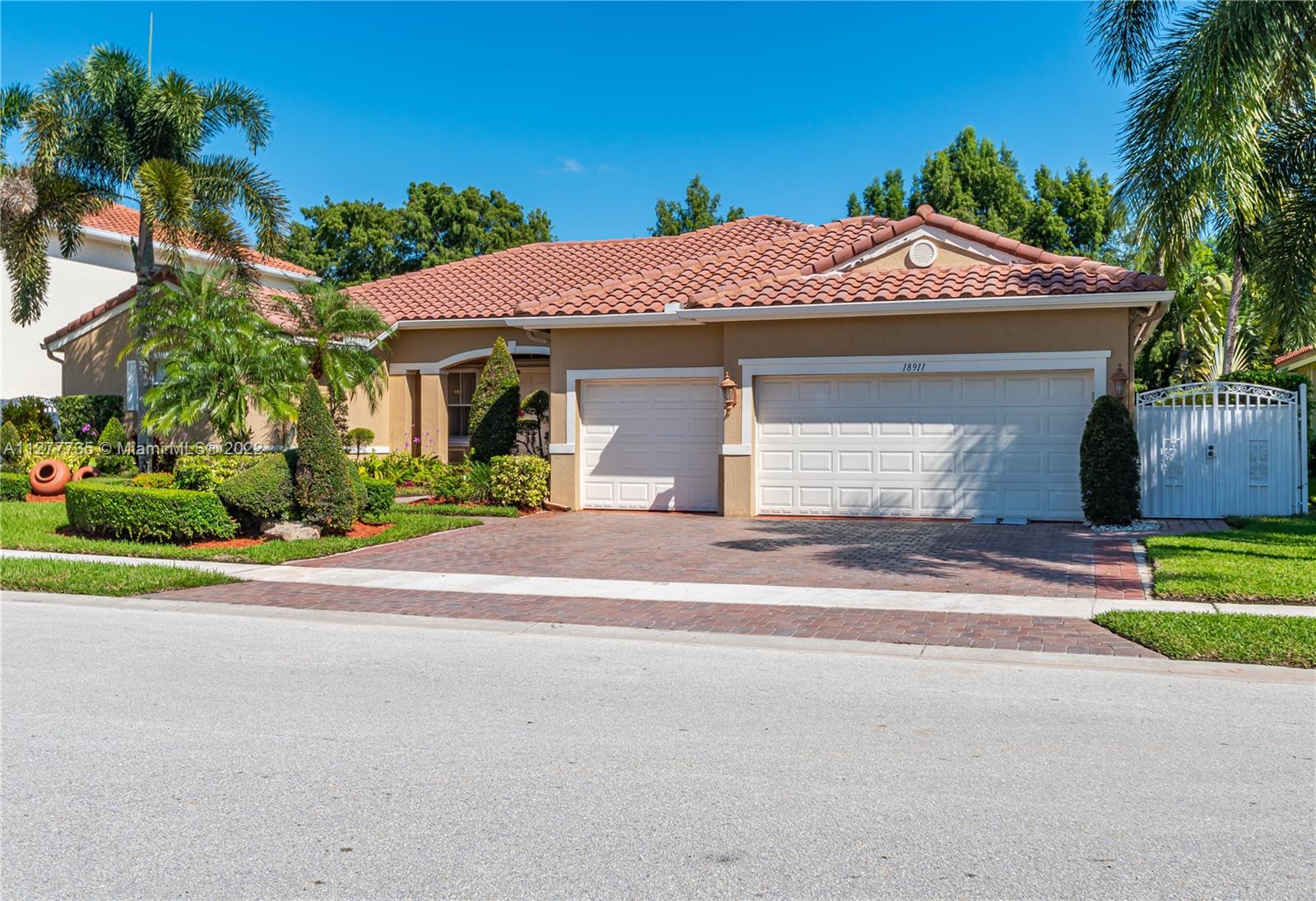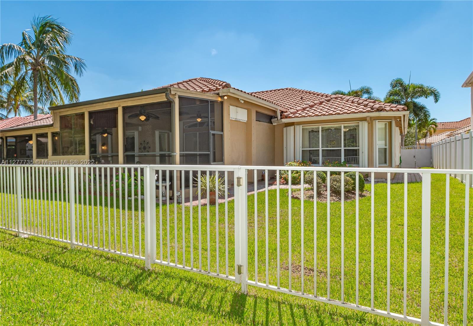 HURRY UNDER MKT VALUE!!! RARELY AVAILABLE IN THE SOUGHT AFTER ENCANTADA NEIGHBORHOOD ESTATE SIDE HOMES. THIS IMMACULATELY KEPT 4 BD/3BA/3 CAR GARAGE ONE STORY CORNICHE MODEL WAS ORIGINALLY EXPANDED BY DEVELOPER PROVIDING EVEN LARGER LIVING AREAS. THIS HOME HAS PROFESSIONAL LUSH LANDSCAPING, DOUBLE DOOR ENTRY, 11" CEILINGS, NEWER DUAL CENTRAL A/C, NEWER WATER HTR, ACCORDIAN SHUTTERS, UPGRADED KITCHEN CABINTERY W/GRANITE COUNTER TOPS, DOUBLE OVEN, LG KITCHEN PANTRY, MORNING RM. LARGE FAMILY RM OVERLOOKING A 48' WIDE COVERED PATIO AREA W/BUILT IN KITCHEN. THIS IMPRESSIVE HOME'S MASTER BEDROOM HAS A SITING ROOM, HIS & HERS WALK IN CLOSETS & EN-SUITE MASTER BATH, ON OVERSIZE PRIVATE LOT W/NO BACK NEIGHBORS & ROOM FOR A SIDE POOL. GATED COMM W/TENNIS CTS, OLYMPIC SIZE POOL, GYM & CLUBHOUSE.