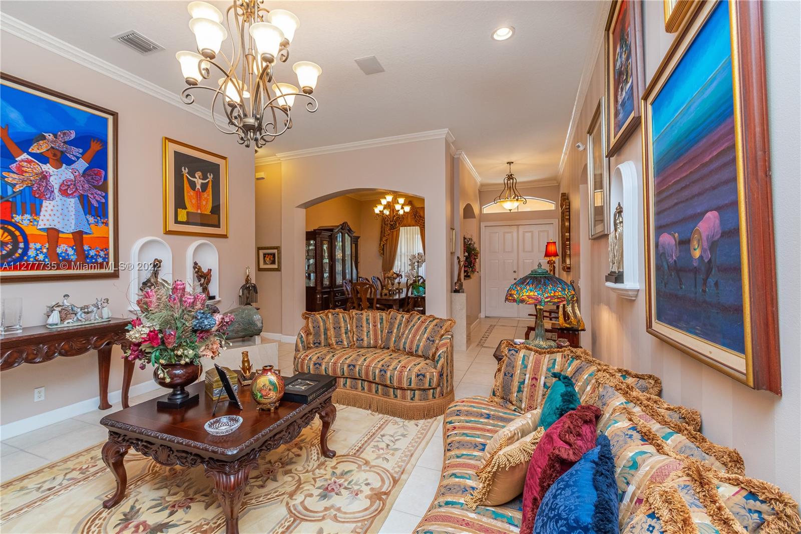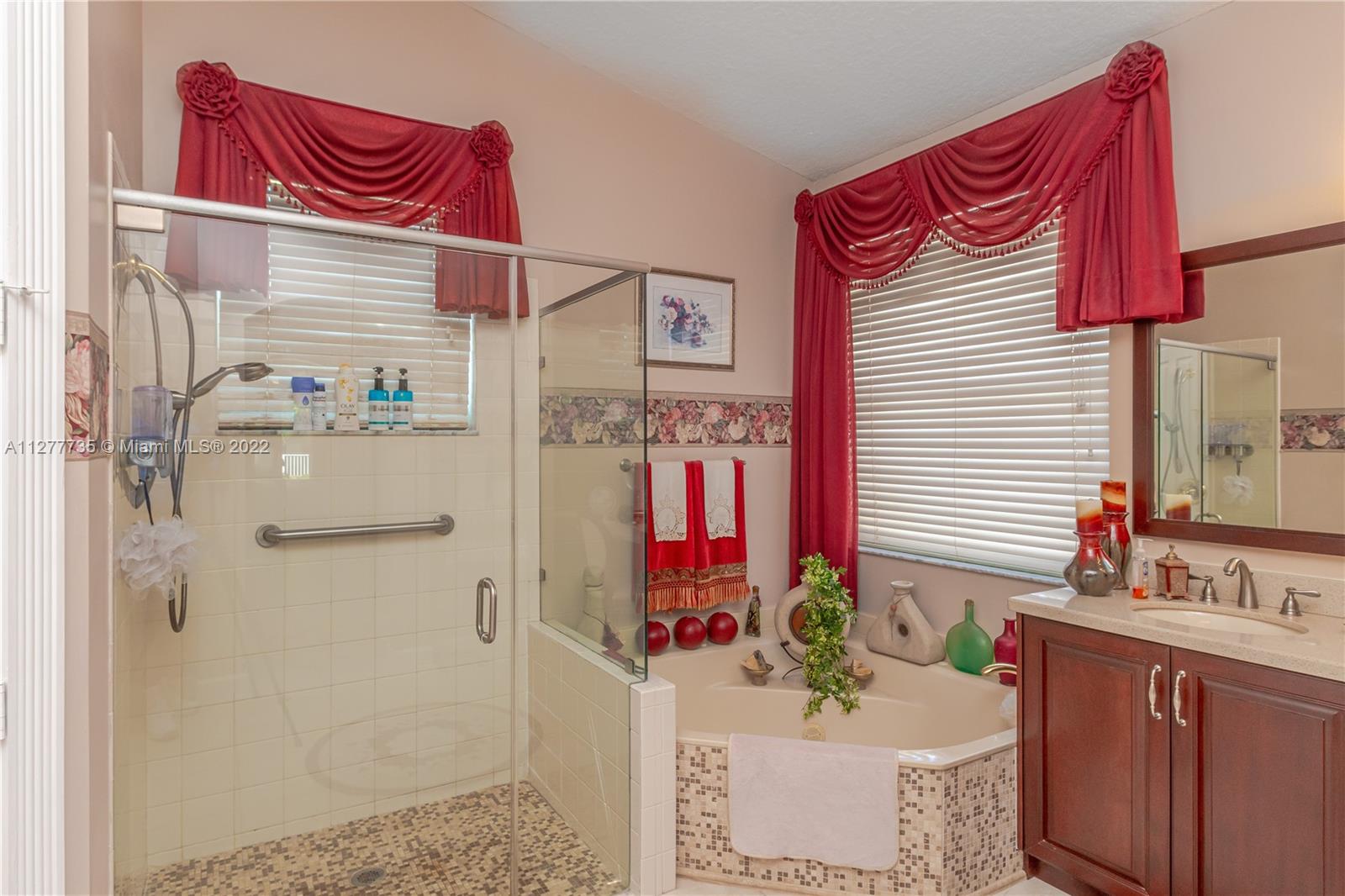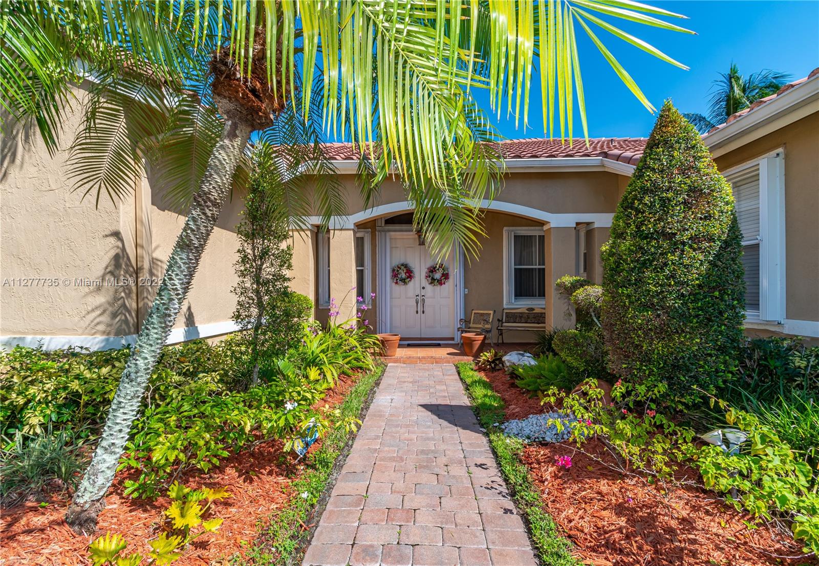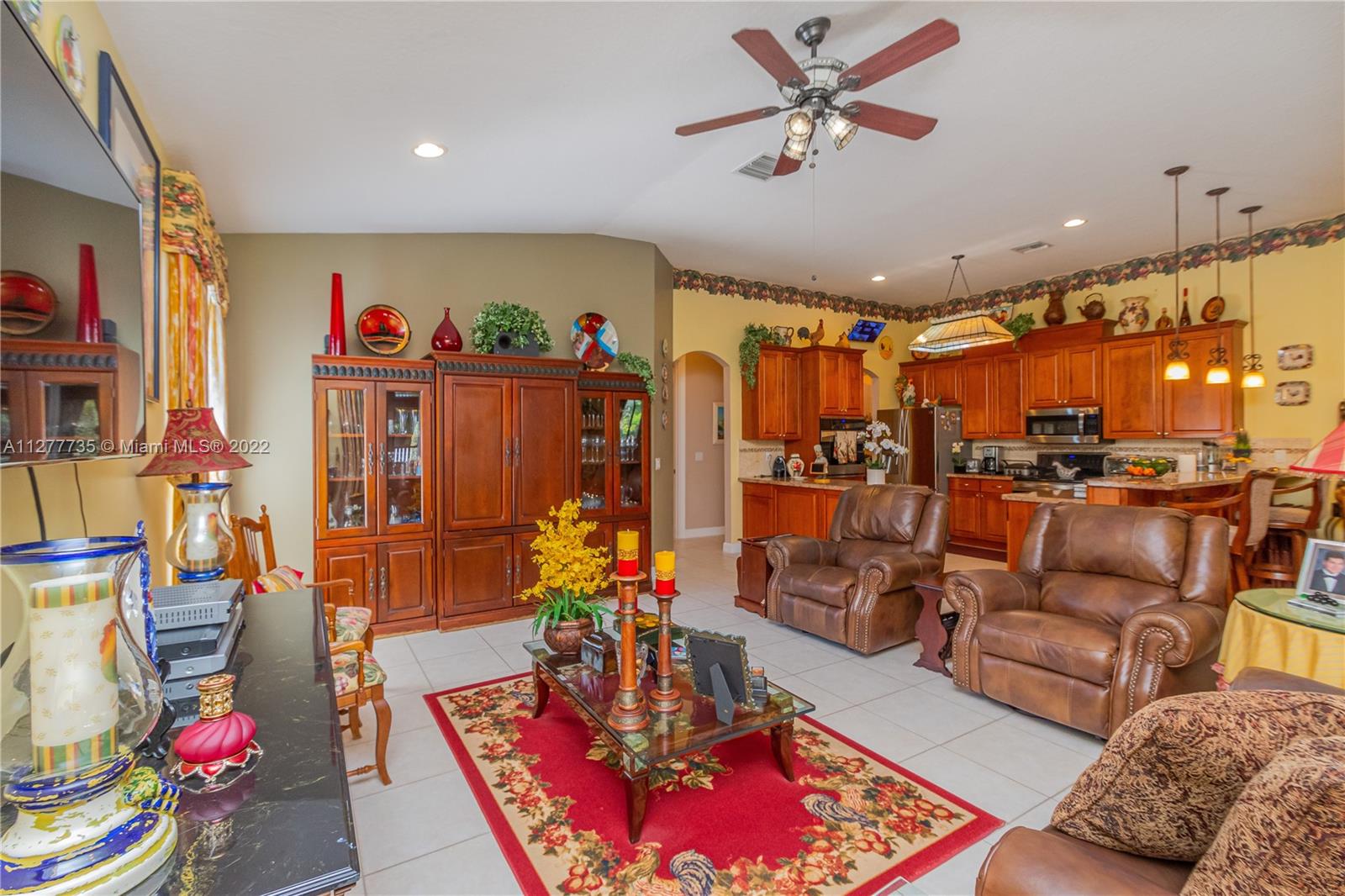 HURRY UNDER MKT VALUE!!! RARELY AVAILABLE IN THE SOUGHT AFTER ENCANTADA NEIGHBORHOOD ESTATE SIDE HOMES. THIS IMMACULATELY KEPT 4 BD/3BA/3 CAR GARAGE ONE STORY CORNICHE MODEL WAS ORIGINALLY EXPANDED BY DEVELOPER PROVIDING EVEN LARGER LIVING AREAS. THIS HOME HAS PROFESSIONAL LUSH LANDSCAPING, DOUBLE DOOR ENTRY, 11" CEILINGS, NEWER DUAL CENTRAL A/C, NEWER WATER HTR, ACCORDIAN SHUTTERS, UPGRADED KITCHEN CABINTERY W/GRANITE COUNTER TOPS, DOUBLE OVEN, LG KITCHEN PANTRY, MORNING RM. LARGE FAMILY RM OVERLOOKING A 48' WIDE COVERED PATIO AREA W/BUILT IN KITCHEN. THIS IMPRESSIVE HOME'S MASTER BEDROOM HAS A SITING ROOM, HIS & HERS WALK IN CLOSETS & EN-SUITE MASTER BATH, ON OVERSIZE PRIVATE LOT W/NO BACK NEIGHBORS & ROOM FOR A SIDE POOL. GATED COMM W/TENNIS CTS, OLYMPIC SIZE POOL, GYM & CLUBHOUSE.