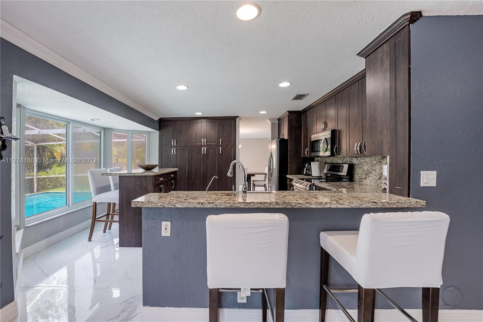 Stunning 4/3 home in the desirable, gated community with a security guard at the gate. Enjoy the open and spacious design of this recently upgraded two-story home with 2-story entryway, granite countertops, stainless steel appliances, water softener system, and a beautiful screen-enclosed pool. Close to popular shopping and dining areas. Primary bath boasts a shower and a separate jetted tub, perfect for your self-care routine