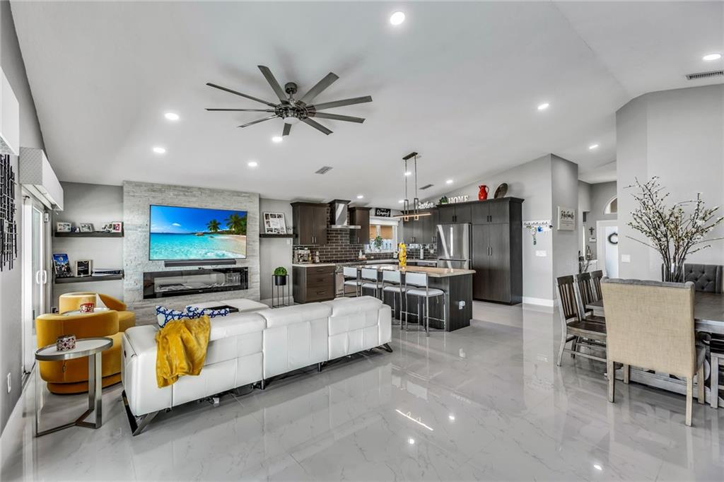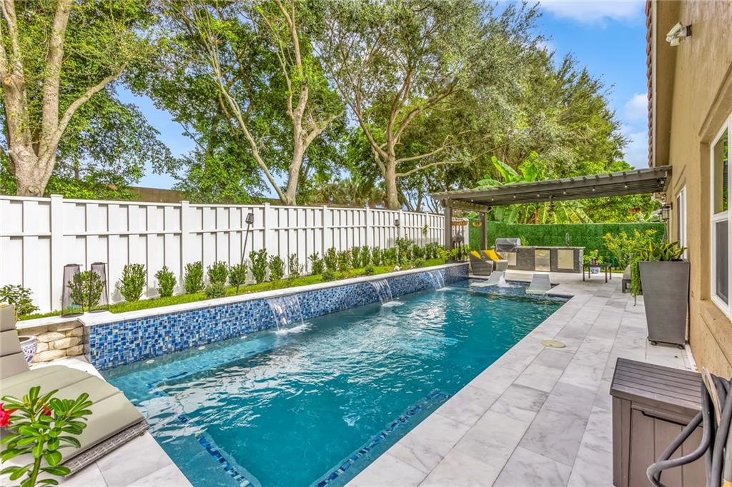 MODERN, ELEGANT, & COZY, THIS HOME HAS IT ALL, BOASTING COMPLETE INTERIOR UPGRADED REMODEL SITUATED IN PRIME LOCATION WITH NEARBY HIGHWAYS, SHOPPING, & ENTERTAINMENT. HOME'S INTERIOR FEATURES OPEN QUARTZITE KITCHEN, HUGE CENTER ISLAND, SS APPLIANCES, PROFESSIONAL GAS STOVE, 32 INCH PORCELINE TILE THROUGHOUT, CUSTOM SPA-LIKE BATHROOMS, LIVING ROOM ELECTRIC BLINDS, CUSTOM DOORS & CABINETRY THOUGHOUT, AND MANY MORE. OUTSIDE AWAITS YOUR TRANQUIL OASIS FEATURING LUXURY MODERN SMART POOL WITH 3 WATERFALLS & 12 PERSON IN-POOL SPA WITH GLASS TILED SUN DECK, COVERED PERGOLA, BRAND NEW OUTDOOR KITCHEN, & NEW LANDSCAPING & LIGHTING. COMPLETE IMPACT WINDOWS, SLIDERS, & FRONT DOORS ADD PROTECTION & SECURITY. NEW SPRINKLER SYSTEM, GUTTERS THROUGHOUT, & PVC PRIVACY FENCE ALSO ADDED. TRULY MOVE-IN READY