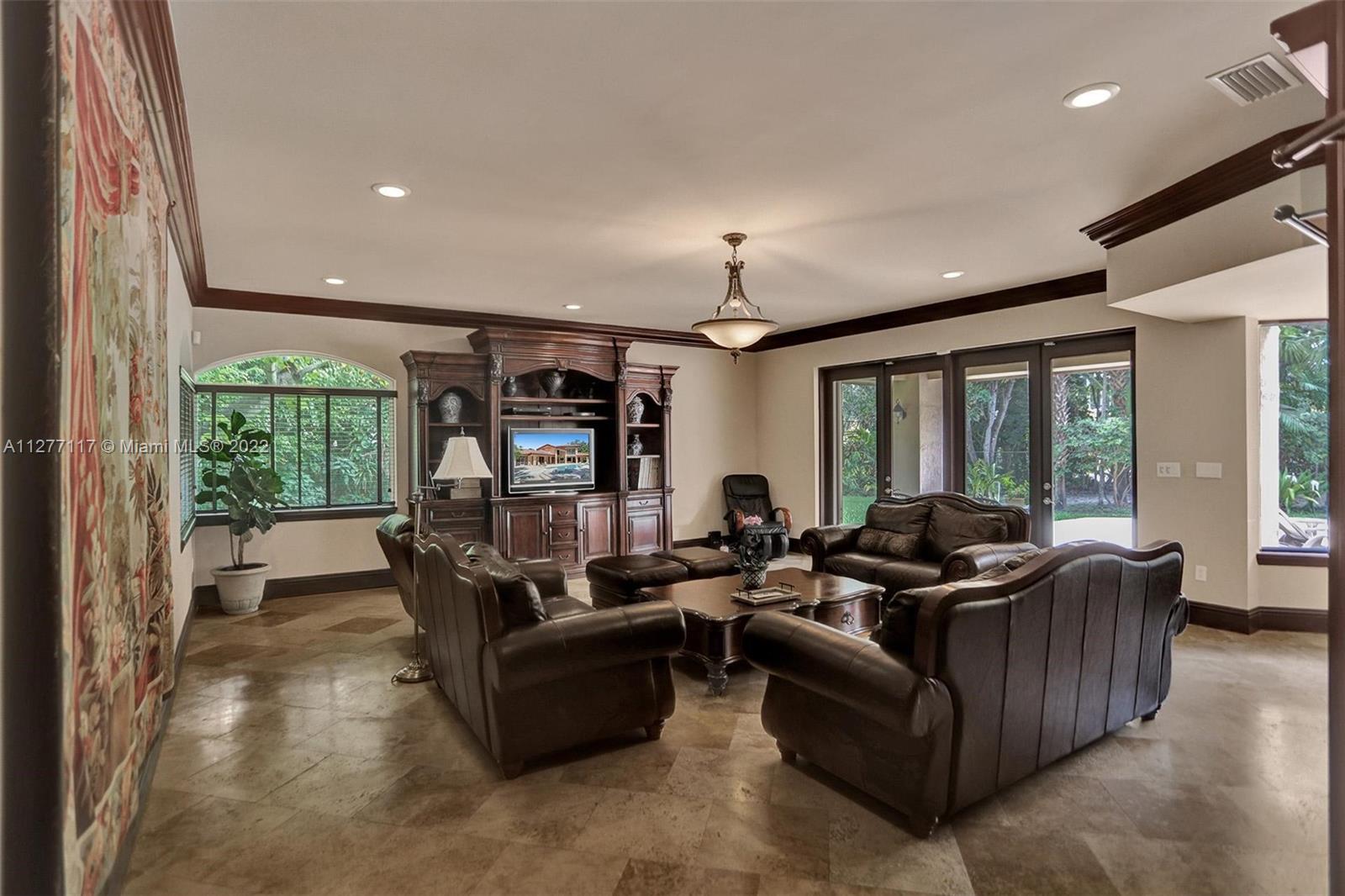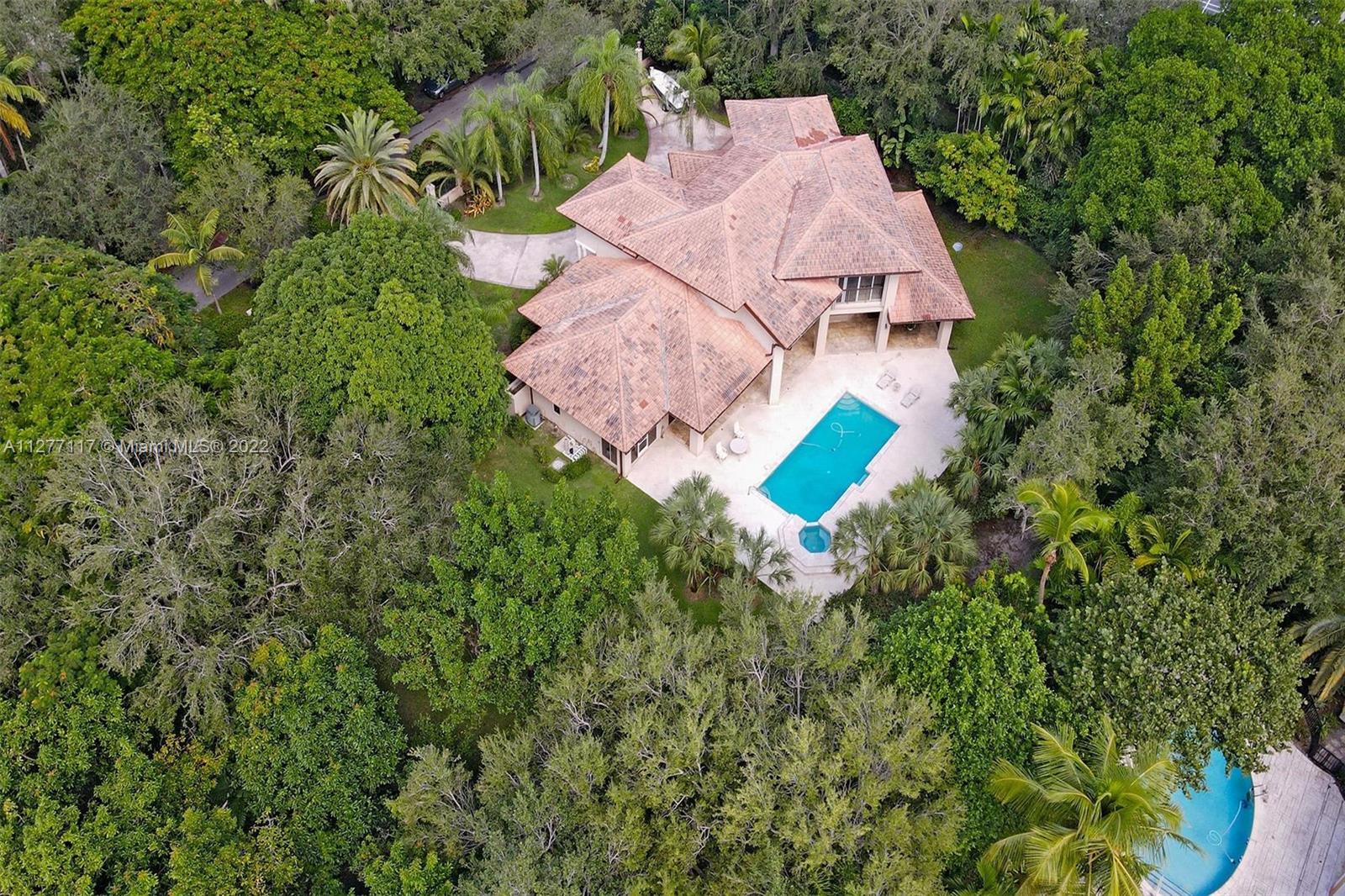 Welcome to this secluded split level home in prestigious N Pinecrest. 6BR, 5B 3 car garage on an almost acr lot! Spacious foyer leads to a dramatic 2-stry open living rm w/high vol ceilings & marble flrs. Ease along to the formal dining rm w/beautiful garden view. The gourmet kitchen features an island w/wood cabinetry, granite countertops, sub zero refrigerator/stainless appliances. The open concept breakfast nook flows into generously spaced-family rm w/pool view & tropical landscaped backyard. A lg primary suite sits on the 2nd flr w/walk-in closet & marble bath w/soaking tub. Walk on to covered terrace that overlooks the pool & tropical oasis below. There are additional 4/BR 3B on the 1st flr for family & guests. Property is walled-gated for security and privacy.