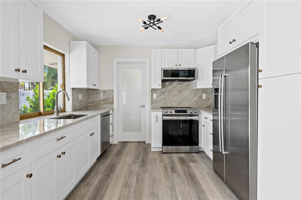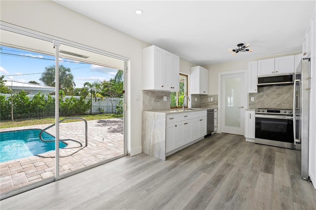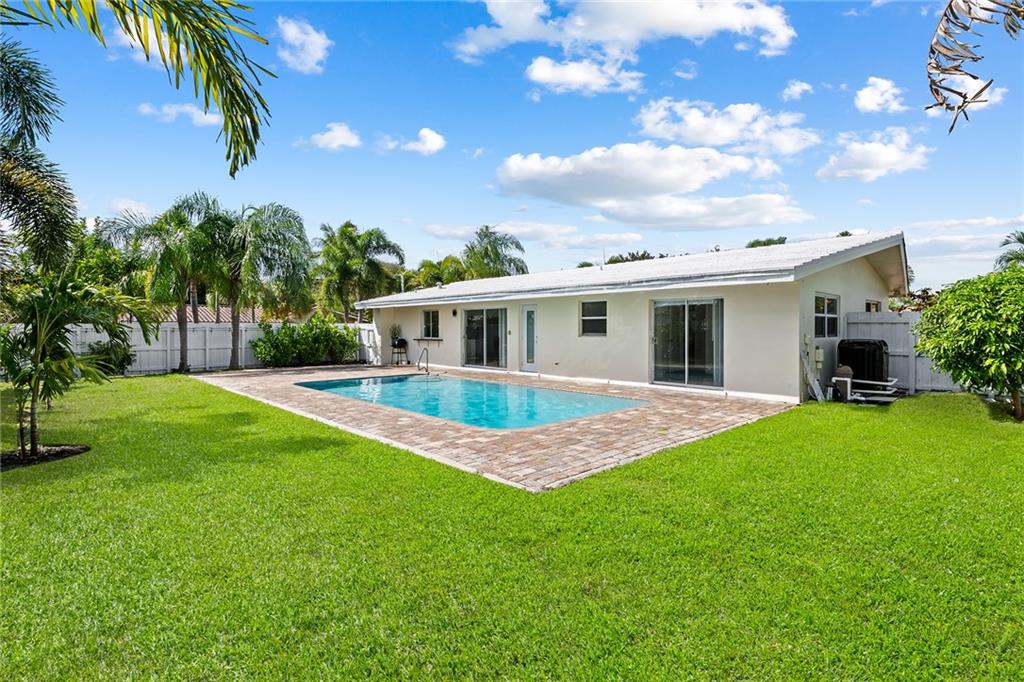 IMPERIAL POINT - This 3-bedroom 2 bath packs a punch. BEAUTIFUL CORNER LOT tucked away on a very quiet street. This may be the best lot in the neighborhood. Newly remodeled open floor plan lets in tons of natural light. New kitchen cabinets covered in quartz and new stainless appliances. Brand new floors, doors and hardware. Frameless showers w/ gorgeous ceramic tiles. Master bedroom overlooks oversized pool and lush landscape. Separate laundry. PERFECTLY LOCATED. 5 minutes to beach, 95, shopping, restaurants and amazing schools. looking to invest in your personal CASH MACHINE, this is it! Looking for long term appreciation? HELLO!! Tear downs have already started with new builds pushing $2m. Make an offer today or somebody else will.