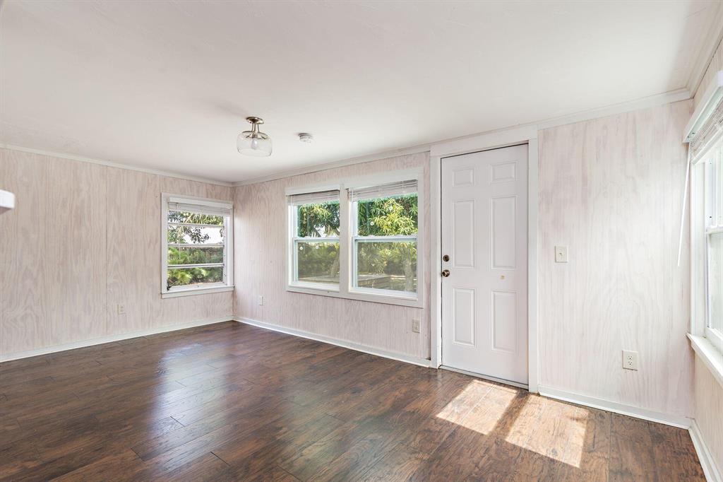 This charming two bedroom one bathroom plus den home is located in the desirable Southend neighborhood. The home features an open floor plan with ample natural light within. The Florida room/den has been redone with impact windows. The home features hardwood flooring throughout and tile in the bathroom. The expansive backyard has plenty of room for a pool with fruit trees and garden beds. Whether your having a party or enjoying a quiet day in your garden, this yard has ample space to do so. Located within minutes to restaurants, shops, PBIA airport, and so much more.