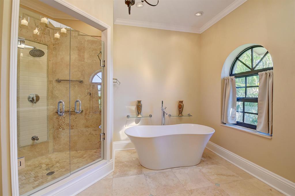 ONE OF THE BEST VALUES IN BOCA POINTE. Custom updated 2700+ sq ft 3/3 townhome with brand-new impact glass. Replaced windows, front door, sky lights and garage door. Natural light flows in from double story windows in living room. Kitchen and baths redone. Long driveway. Private backyard with covered area and extended brick patio. Western exposure has sunset and golf course views. Upstairs has 2 master bedrooms with private baths and walk in closets plus bedroom and full bath down. Smooth ceilings, 2 wine coolers, new frig, washer and dryer and both A/C's replaced, gutters replaced, 1 flat roof and tile roof replaced 2012 and 2nd flat roof replaced 2020, wood floors on stairs and upper level. Master bedroom TV included. 65'' 4K Panasonic TV with Bose sound system and kitchen TV negotiable.