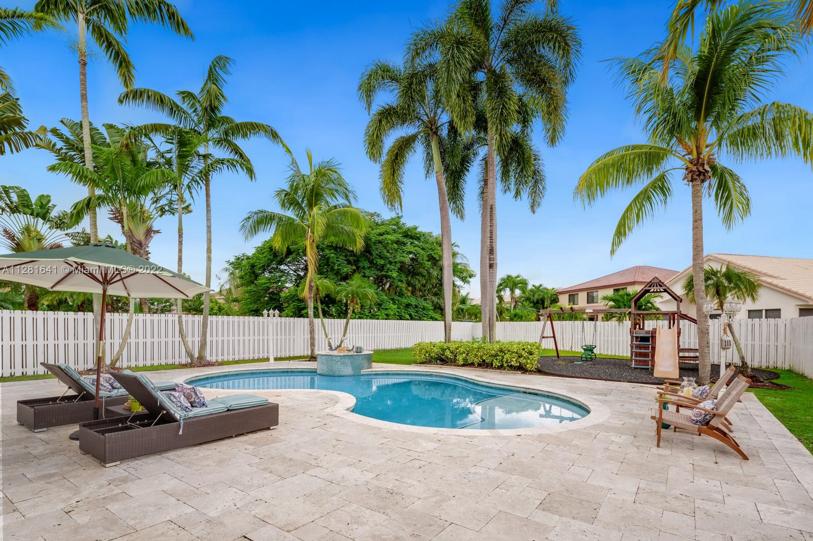 Beautiful and charming home in the gated community of Pelican Cove in Silver Lakes. This is the dream home for your family! Set on an enviably oversized lot with an amazing private backyard, gorgeous free form pool and kids playground. This 2-Story Single family home features Split floor plan and spacious bedrooms. Large open kitchen with stainless steel appliances, granite tops, and breakfast nook. Formal living, dining room, and family room. Upstairs the 3 bedrooms plus den have wood floors. Oversized master bedroom with sitting area and balcony. 2 walking closets. Marble floors throughout, and the convenience of 2 bedrooms and 1 full bathroom on the first floor. Plantation-shuttered windows. Great schools, supermarkets and restaurants and just a few minutes from I-75. Come take a tour