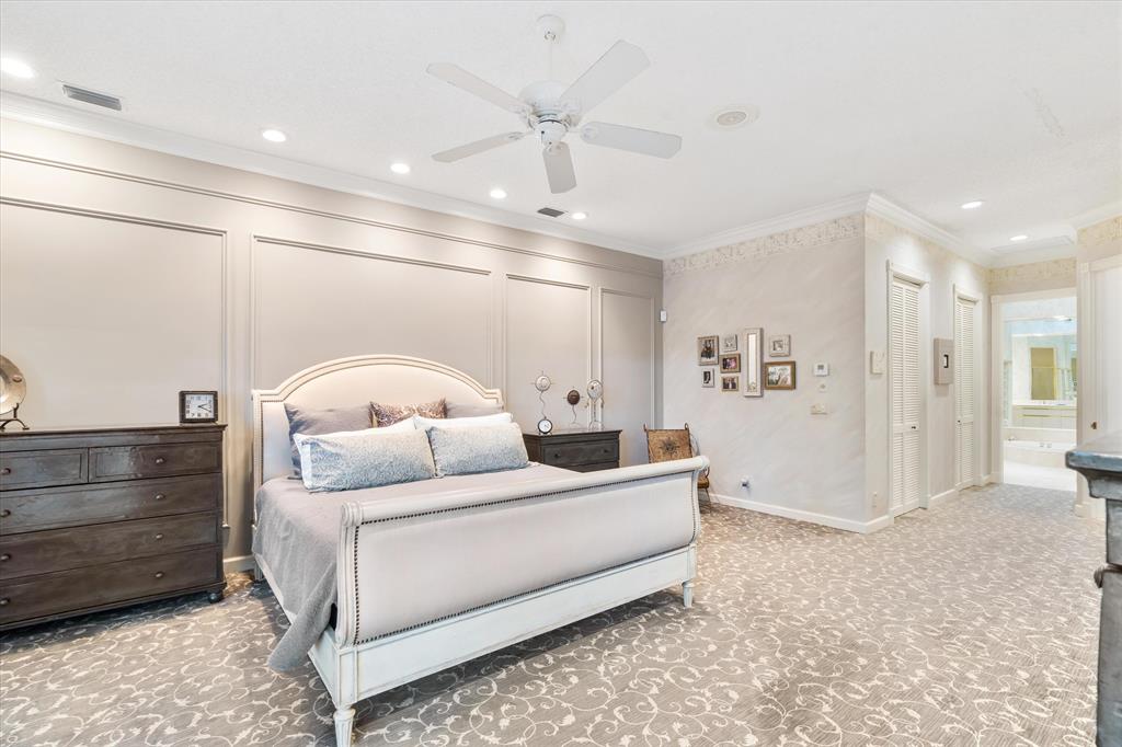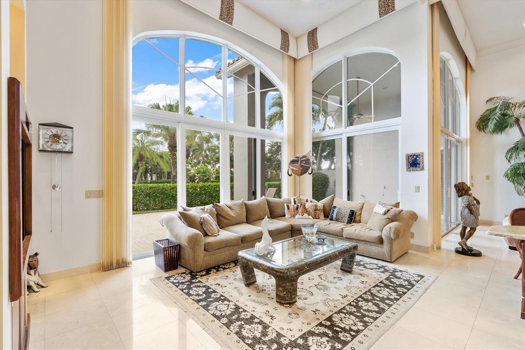 This fabulous Dorchester model boasts 3,275 square feet under air with 3 bedrooms, 4 baths, and a 2 car garage. The impressive foyer leads to the grand formal living room with volume ceilings and an abundance of windows that showcase the gorgeous GOLF and LAKE views! Bright kitchen with breakfast area is adjacent to the formal dining room. Spacious primary suite with his and hers baths and generous closet space. Marble flooring in main living areas, HURRICANE IMPACT WINDOWS throughout! Roof replaced in 2008 and a generator installed in 2018. Enjoy the beautiful Florida weather from the large covered patio and paved pool deck. Situated on an oversized pie shaped lot.