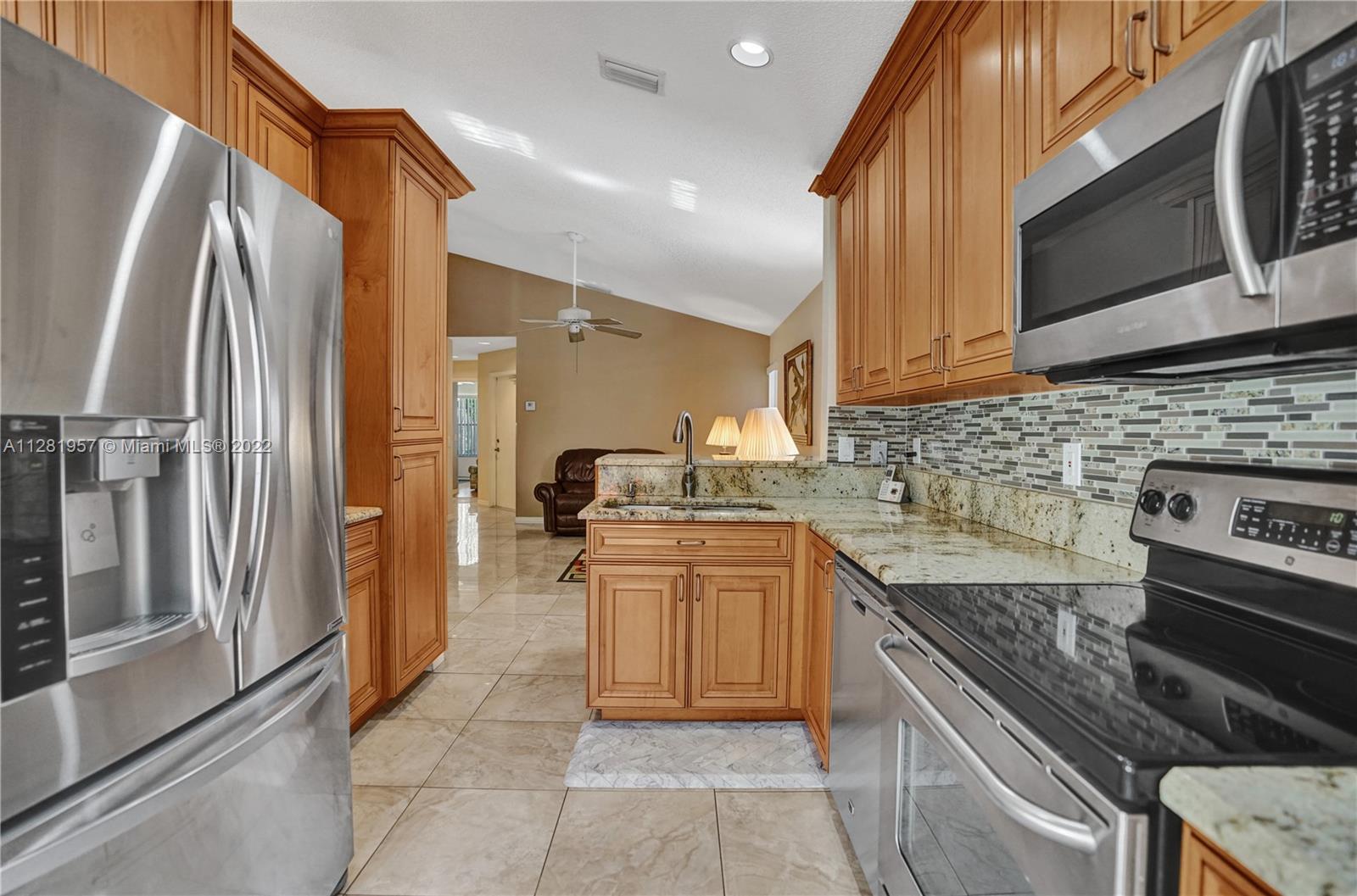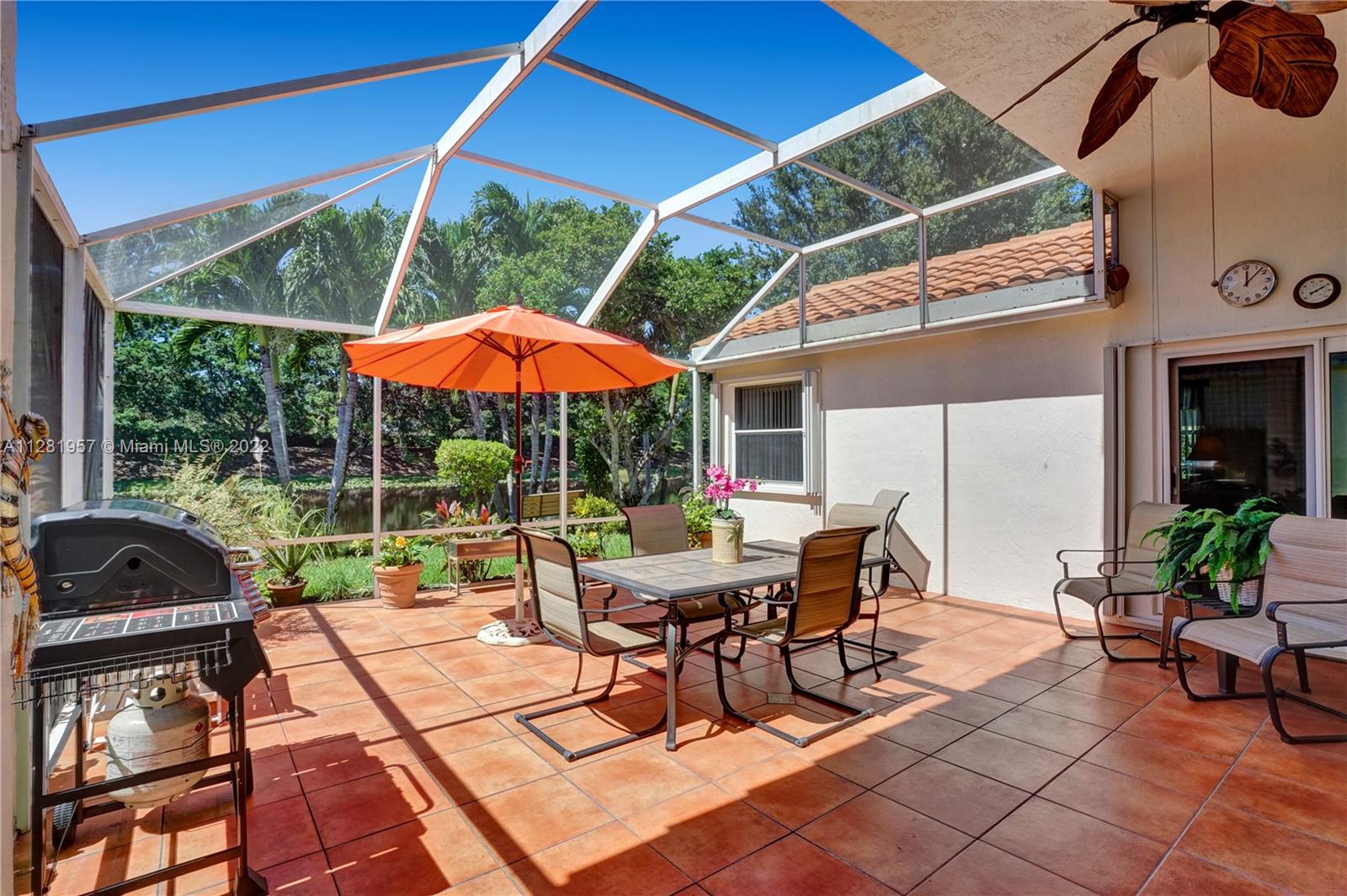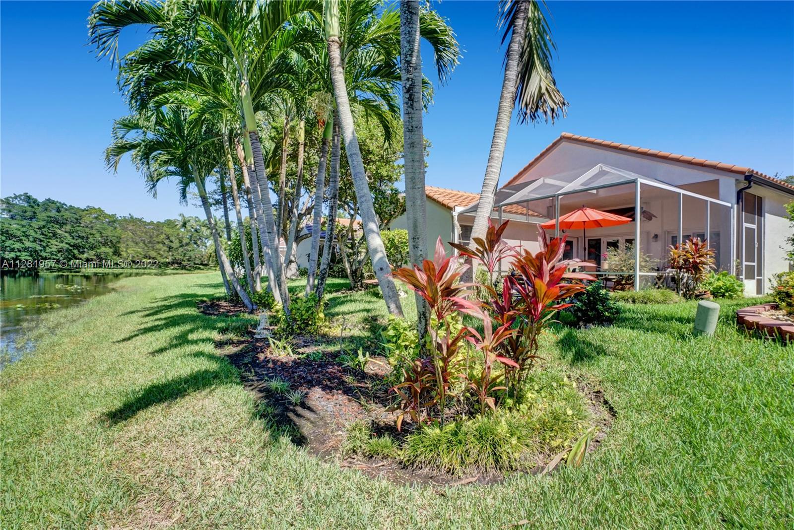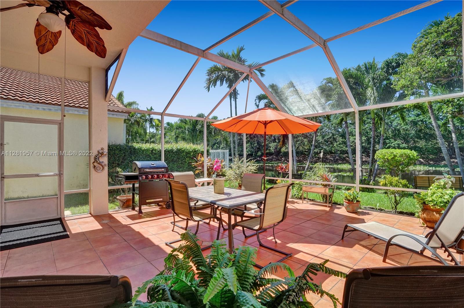 This comfortable waterfront home features a New Roof, New high grade Impact Doors + Remodeled Bathrooms. This home's versatile interior offers a fantastic & spacious split bedroom layout, with high vaulted ceilings, engineered wood & tile flooring + convenient interior full size laundry closet. The custom wood kitchen features storage pull-outs, stone counters & stainless appliance package. Relax in your totally screened and very private patio overlooking a serene lake & lush greenery, the ideal spot for nature gazing. Bonus features: New exterior paint, New Rain Gutters, New blinds, Updated A/C & hybrid water heater, lake-fed irrigation system & accordion shutters. The Lakes is centrally located, offering gated access, pool & play areas, easy access to parks, shopping & A+ Schools.