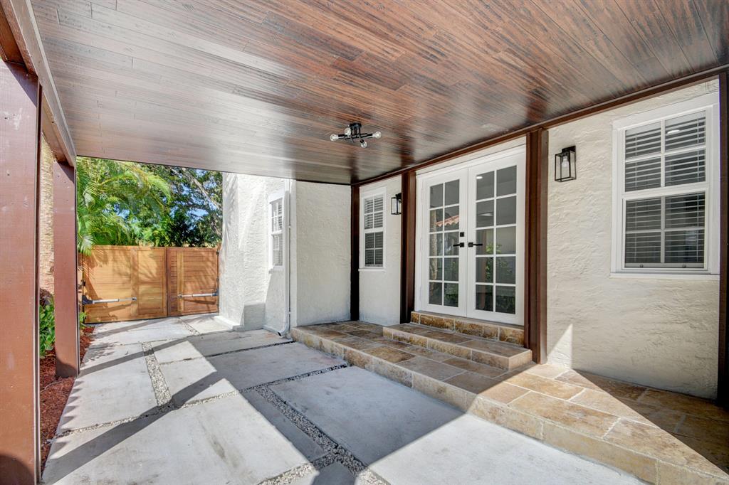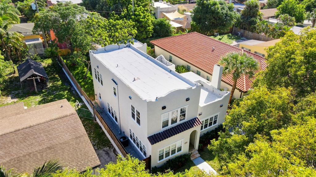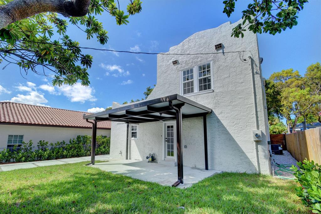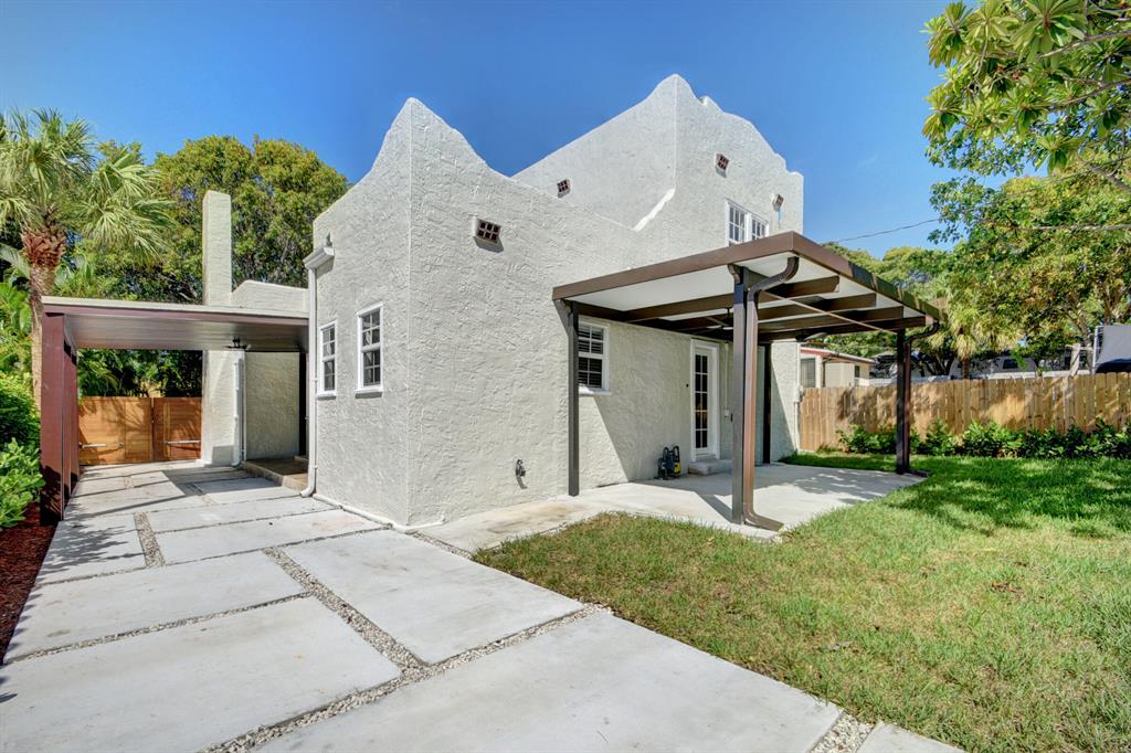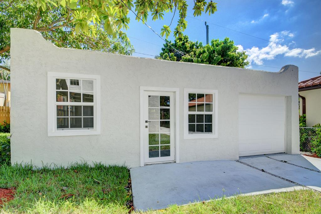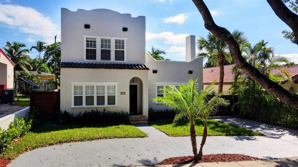 Spanish Mission home,1925, 3 full bedrooms (2 Masters)with one on the first floor. 2.5 baths. Home has been completely renovated with new roof, windows,doors, plumbing, electric, sprinkler system. New driveway with a electric double wood gate, and a Porte Cochere leading into French Doors. Back of home has spacious covered deck which could overlook a pool. Plenty of room. Inside renovations include new kitchen, new appliances , wine cooler, bathrooms, flooring ,lightning. Gas stove with custom range hood.Comes complete with a guest house and 1 car garage, Guest house has all the renovations of the main house, new roof, windows,kitchen and full bath. House sits 1.1 miles from downtown WPB, 1.0 mile from the Intracoastal and 2 miles from PBI airport.FURNITURE HAS BEEN ADDED VIRTUALL