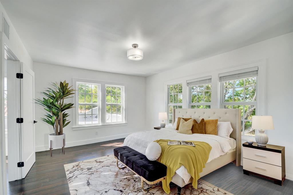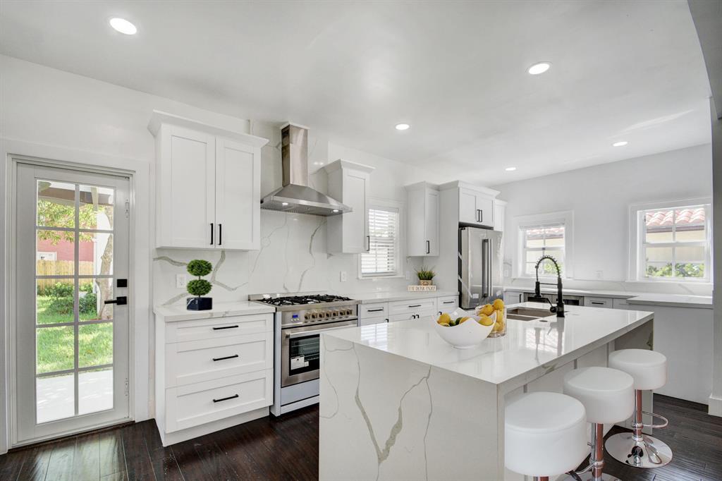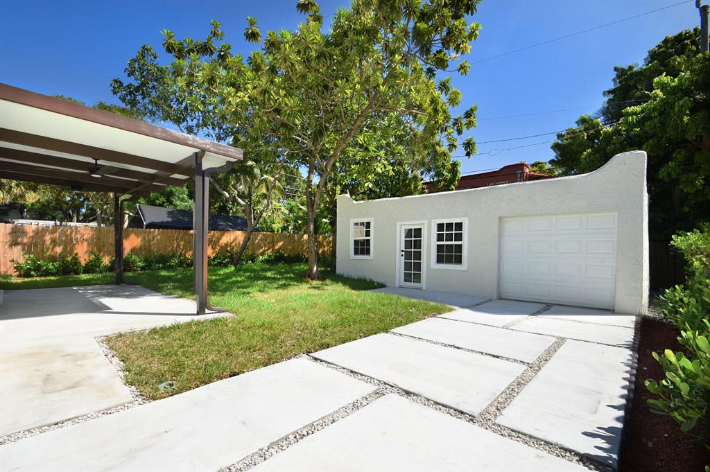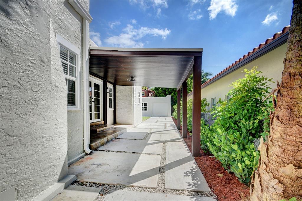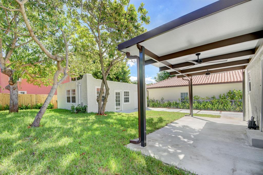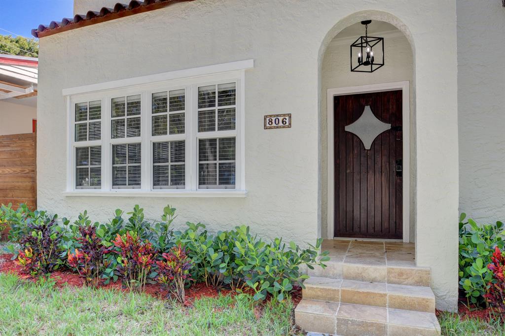 Spanish Mission home,1925, 3 full bedrooms (2 Masters)with one on the first floor. 2.5 baths. Home has been completely renovated with new roof, windows,doors, plumbing, electric, sprinkler system. New driveway with a electric double wood gate, and a Porte Cochere leading into French Doors. Back of home has spacious covered deck which could overlook a pool. Plenty of room. Inside renovations include new kitchen, new appliances , wine cooler, bathrooms, flooring ,lightning. Gas stove with custom range hood.Comes complete with a guest house and 1 car garage, Guest house has all the renovations of the main house, new roof, windows,kitchen and full bath. House sits 1.1 miles from downtown WPB, 1.0 mile from the Intracoastal and 2 miles from PBI airport.FURNITURE HAS BEEN ADDED VIRTUALL