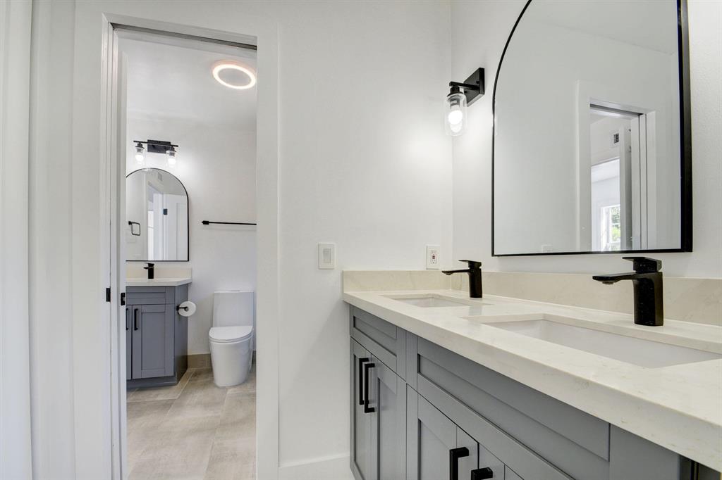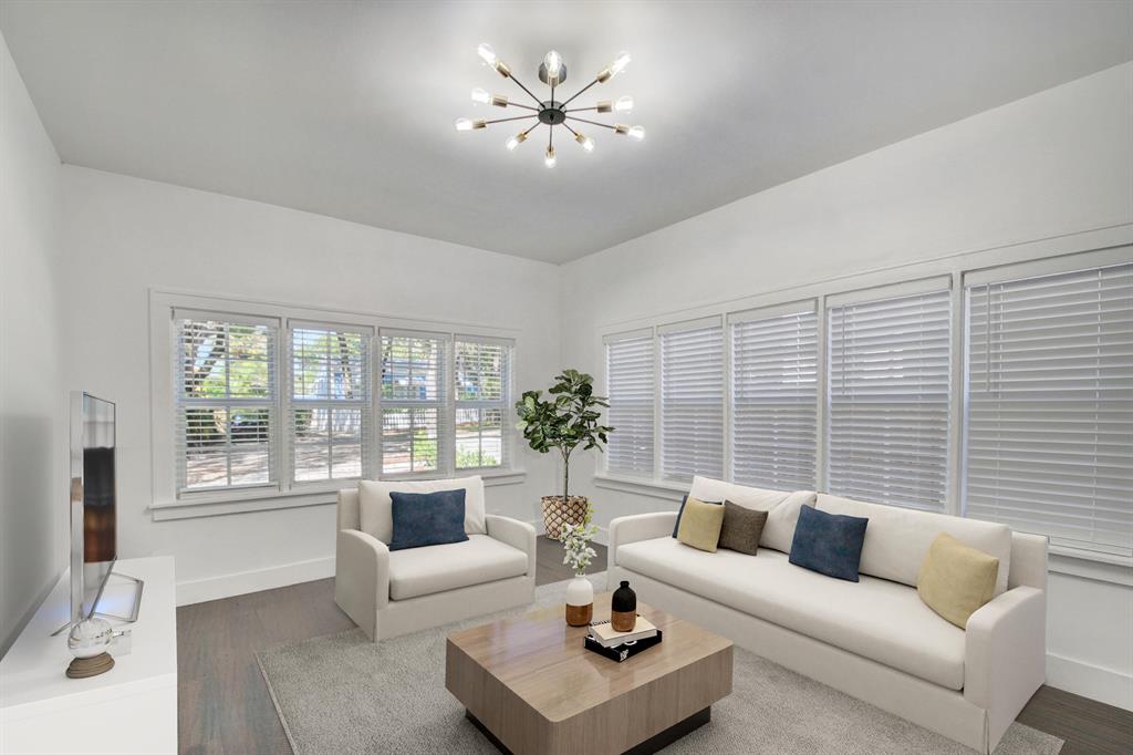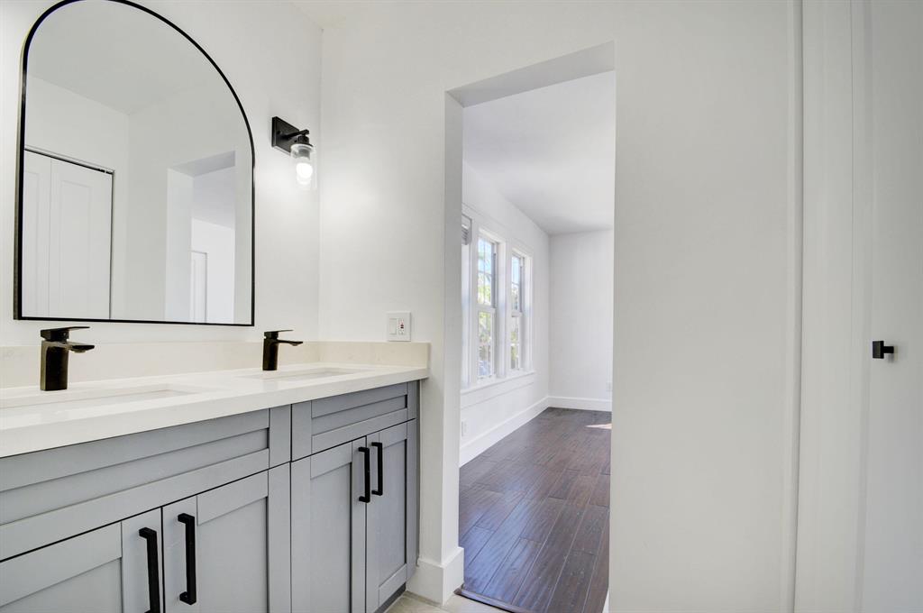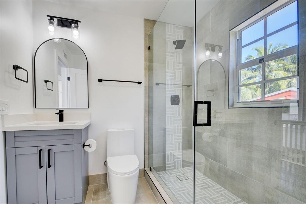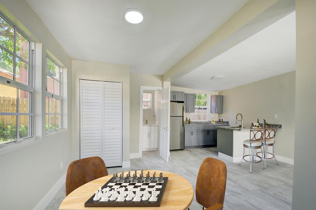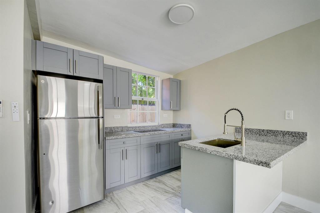 Spanish Mission home,1925, 3 full bedrooms (2 Masters)with one on the first floor. 2.5 baths. Home has been completely renovated with new roof, windows,doors, plumbing, electric, sprinkler system. New driveway with a electric double wood gate, and a Porte Cochere leading into French Doors. Back of home has spacious covered deck which could overlook a pool. Plenty of room. Inside renovations include new kitchen, new appliances , wine cooler, bathrooms, flooring ,lightning. Gas stove with custom range hood.Comes complete with a guest house and 1 car garage, Guest house has all the renovations of the main house, new roof, windows,kitchen and full bath. House sits 1.1 miles from downtown WPB, 1.0 mile from the Intracoastal and 2 miles from PBI airport.FURNITURE HAS BEEN ADDED VIRTUALL