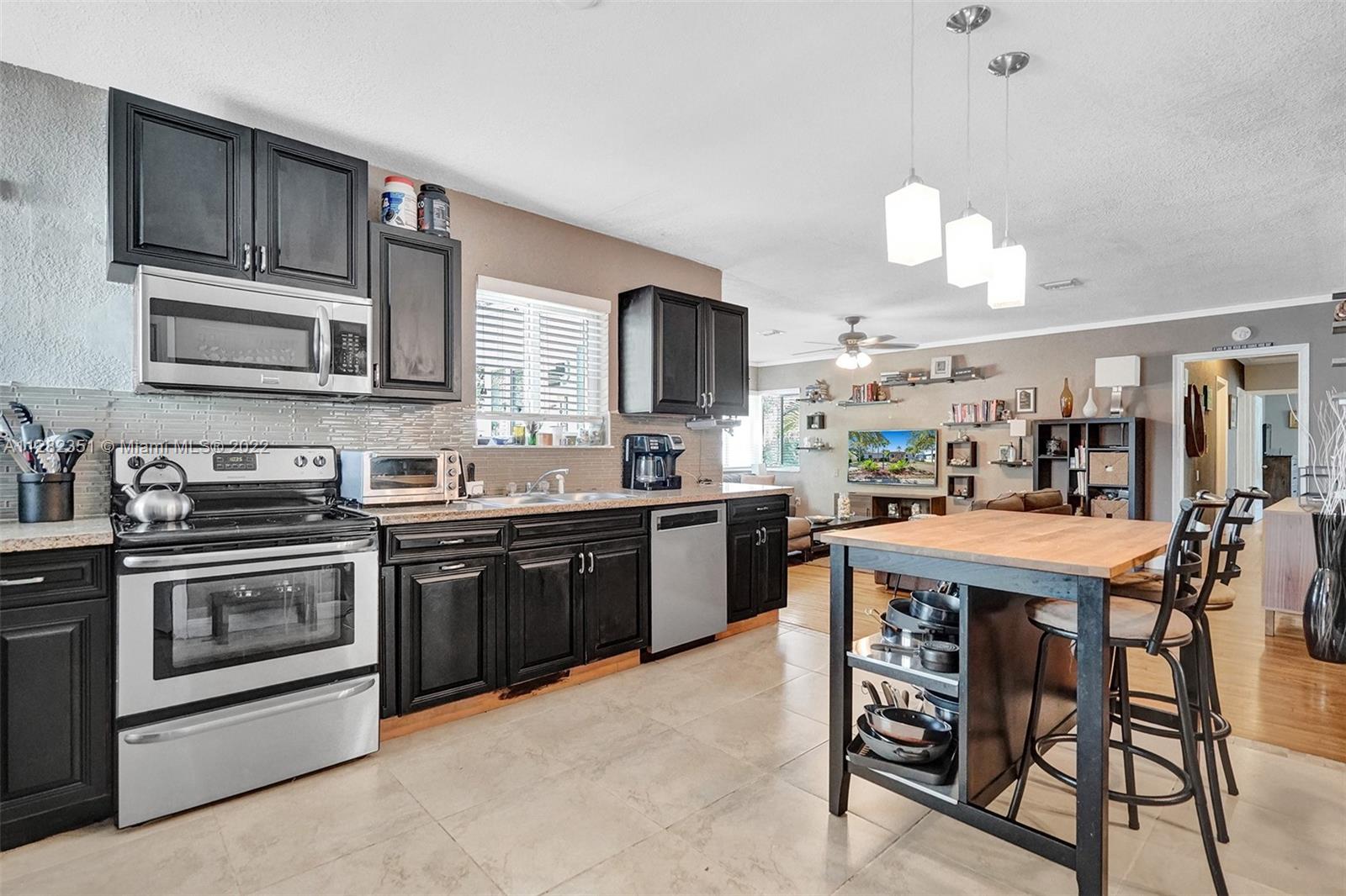 OVERSIZED LOT IN A GREAT LOCATION IN HOLLYWOOD! THIS 4 BEDROOM, 2 BATH HOME OFFERS A CIRCULAR DRIVE FOR AMPLE PARKING, LOTS OF WINDOWS TO CREATE AN OPEN AND BRIGHT FEEL, SPACIOUS OPEN KITCHEN FEATURING DARK BROWN CABINETRY, GRANITE COUNTERTOPS, SS APPLIANCES, AND GLASS TILE BACKSPLASH. THE OVERSIZED FAMILY ROOM FEATURES EXPOSED WOOD BEAMS. THE PRIMARY SUITE FEATURES AN ENSUITE BATHROOM WITH STANDING SHOWER. ADDITIONAL FEATURES INCLUDE IMPACT GLASS, NEW A/C, AN ADDITIONAL ROOM WITH DOUBLE DOORS THAT CAN BE USED FOR STORAGE, LAUNDRY ROOM, ELECTRIC WATER HEATER, ATTIC SPACE, AND A GAZEBO WITH BUILT IN BAR IN THE BACKYARD PERFECT FOR ENTERTAINING. LOCATED JUST MINUTES FROM DOWNTOWN HOLLYWOOD, THE BEACH, FTL AIRPORT, AVENTURA MALL, I95 AND MORE!
