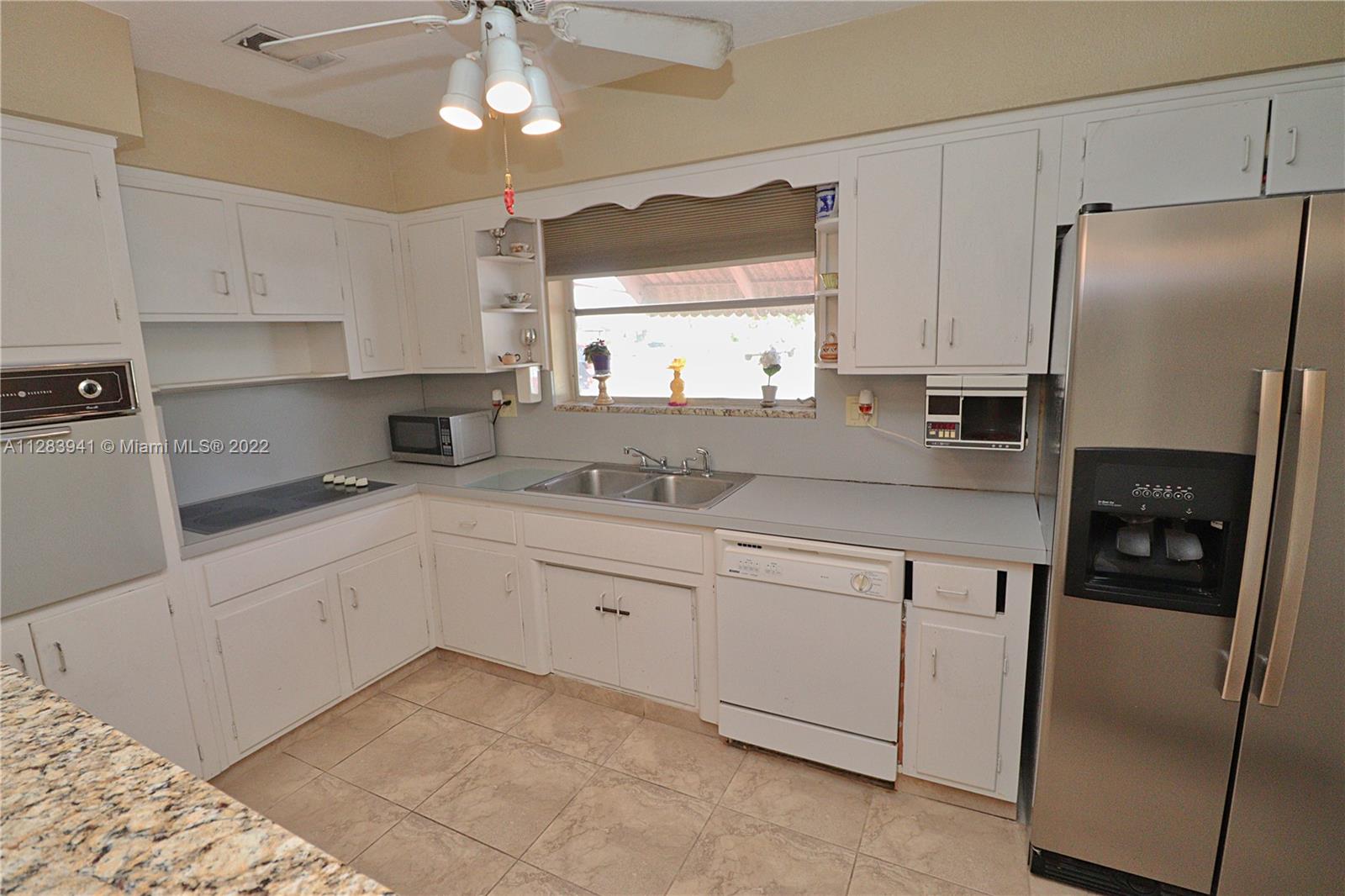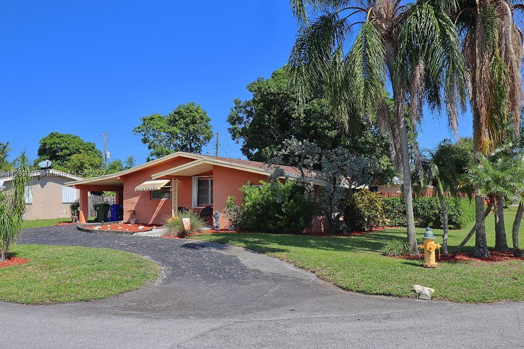 Sunswept neighborhood, Sunbrite model with Florida room, Updated ceramic tile, Updated electrical panel, Granite bar top counter with matching window sill, Updated range and stainless steel refrigerator, Storm panels and/or awnings, OVERSIZED 7,871 sf FENCED CORNER LOT with room for a pool, Circular driveway with extra parking, Sprinkler system with timer, Tropical mango tree