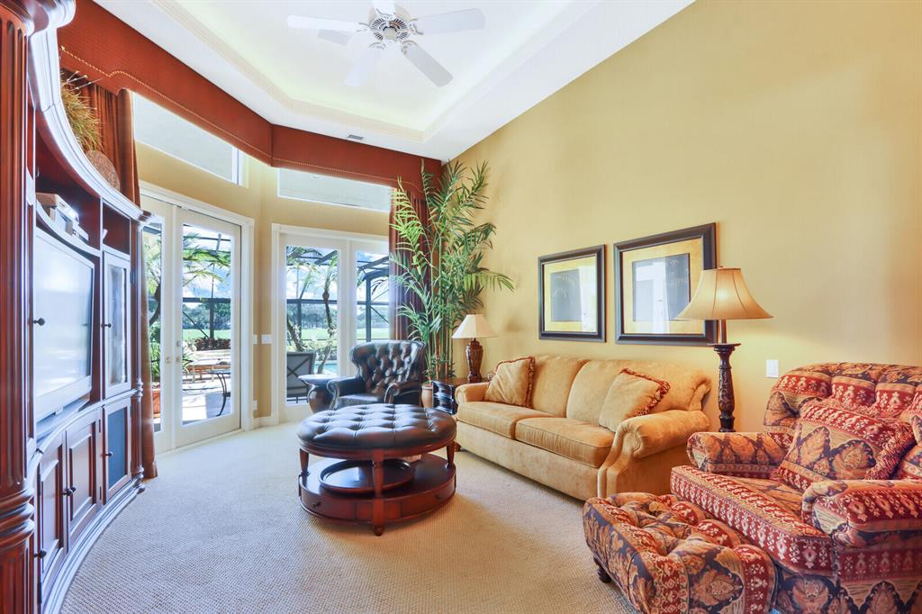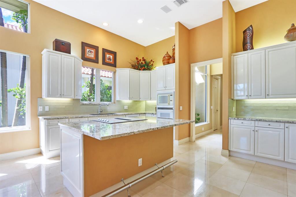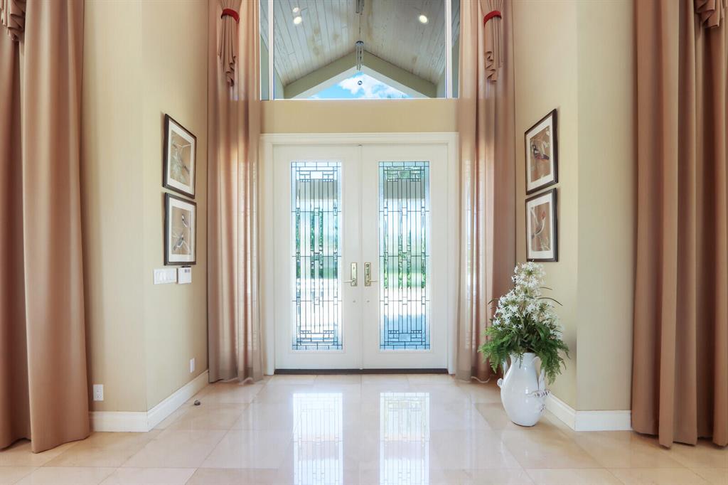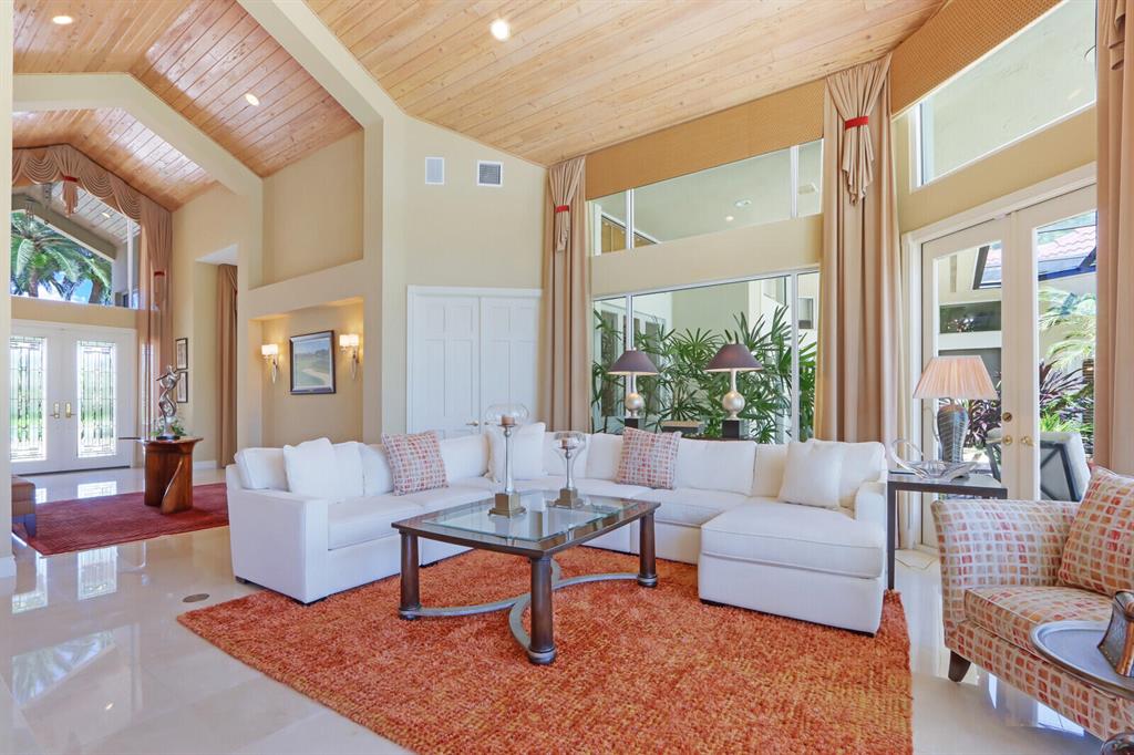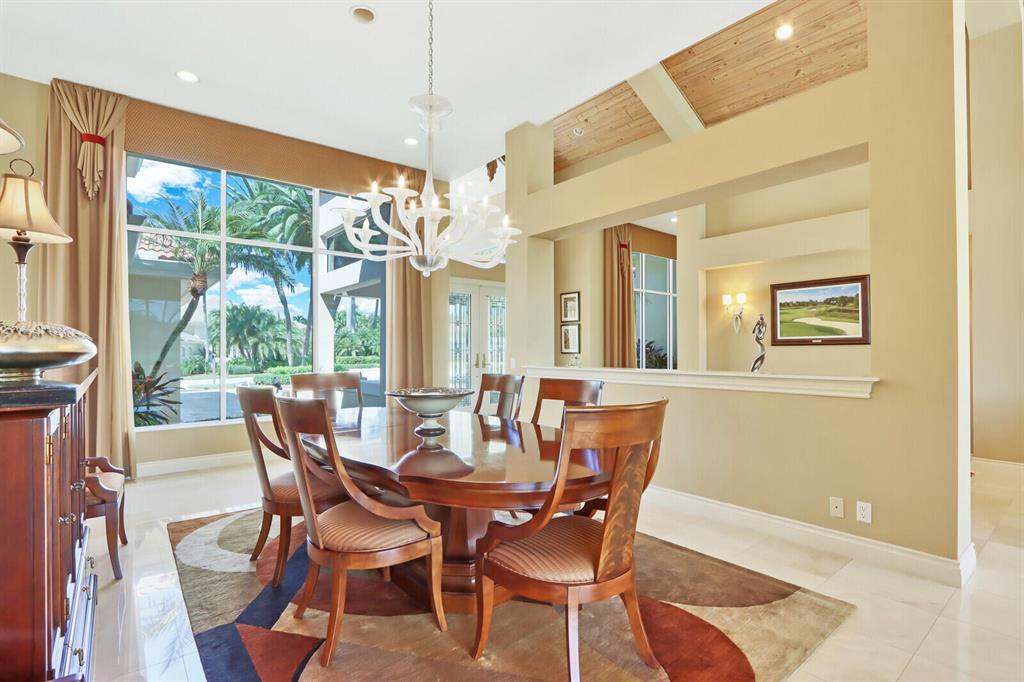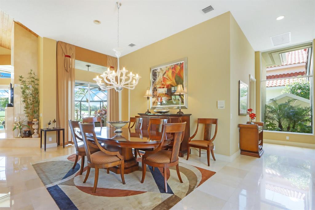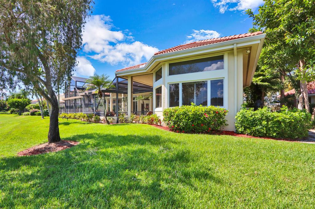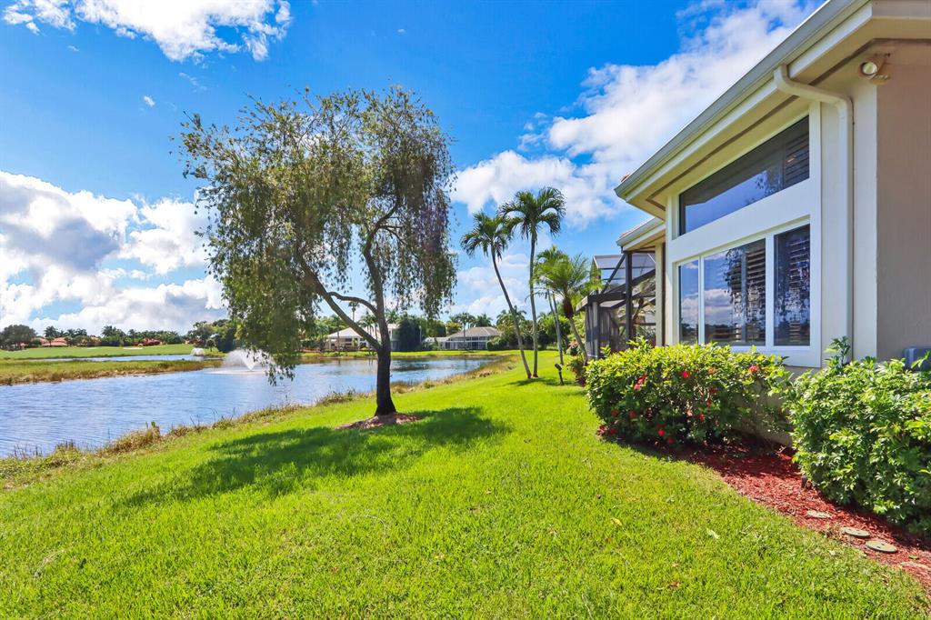Prime CUL-DE-SAC location in desirable Egret Meadow with BREATHTAKING WATER AND GOLF VISTAS of the Jack Nicklaus-designed 8th fairway of the Legend course. This magnificent custom contemporary home is an ARCHITECTURAL MASTERPIECE harmoniously integrating the best of indoor and outdoor Florida living. From the herringbone pattern travertine driveway, you'll appreciate the custom, one-of-a-kind feel of this unique home. A dramatic vaulted front porch ceiling with wood accents welcomes you, and the design feature continues inside, into the WOW-foyer and over-the-top living room that looks like it could be a lobby for a tropical resort.